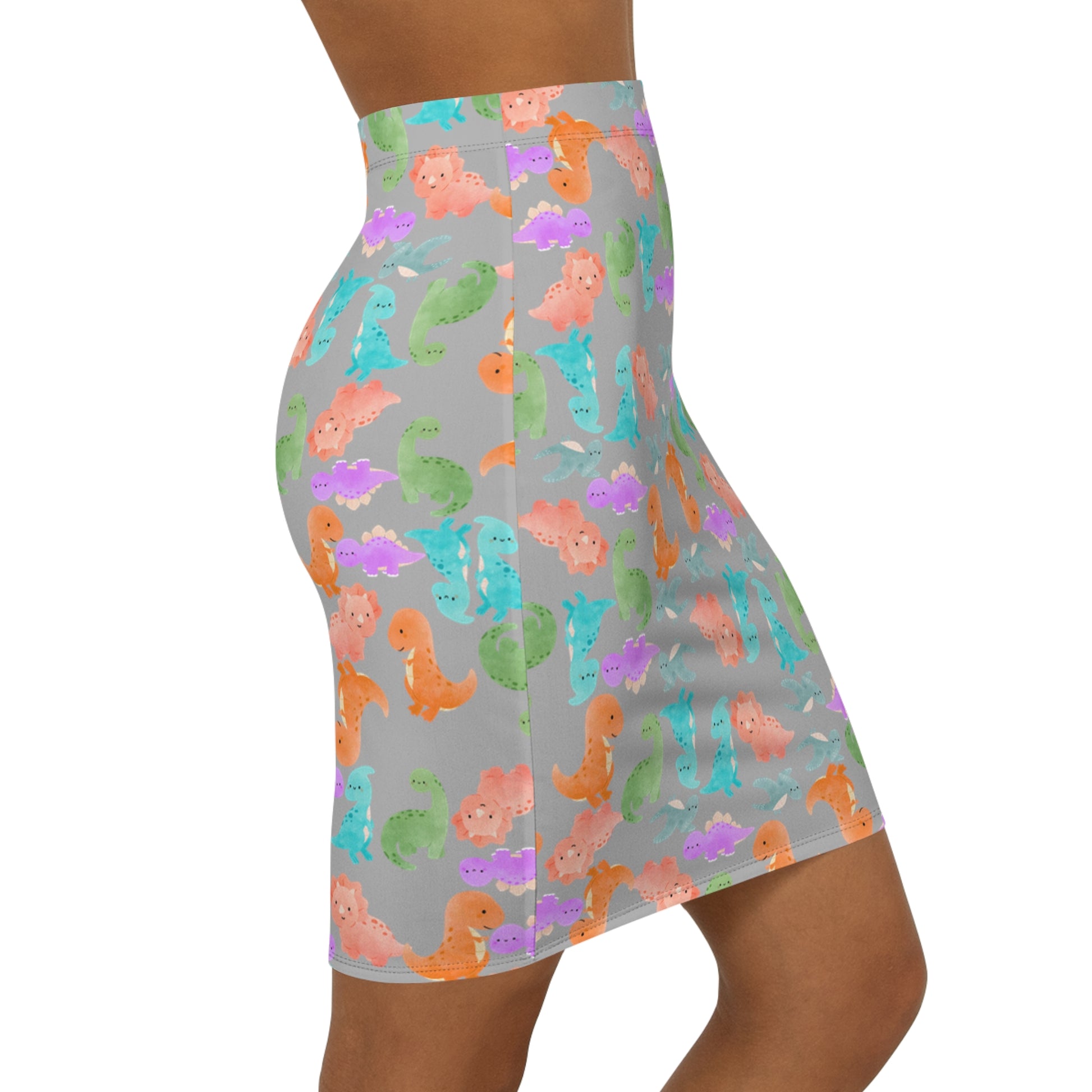 Dinosaur Print MidWaist Pencil Skirt for Fun and Playful Style Womens Skirt Cute Skirt Fashionable Skirt Casual Skirt Gift Idea Rainbow Dinos Light Grey