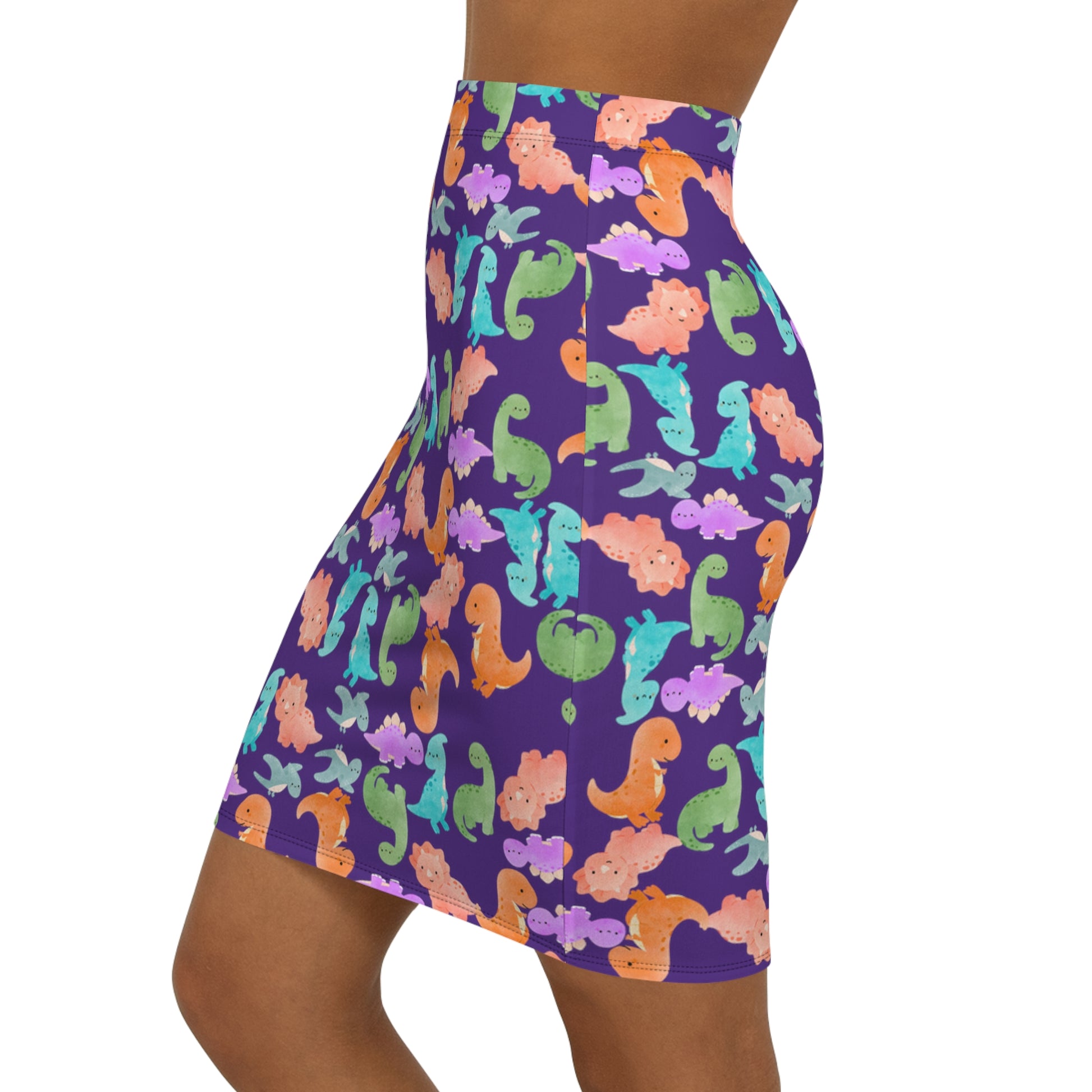 Dinosaur Print MidWaist Pencil Skirt for Fun and Playful Style Womens Skirt Cute Skirt Fashionable Skirt Casual Skirt Gift Idea Rainbow Dinos Purple