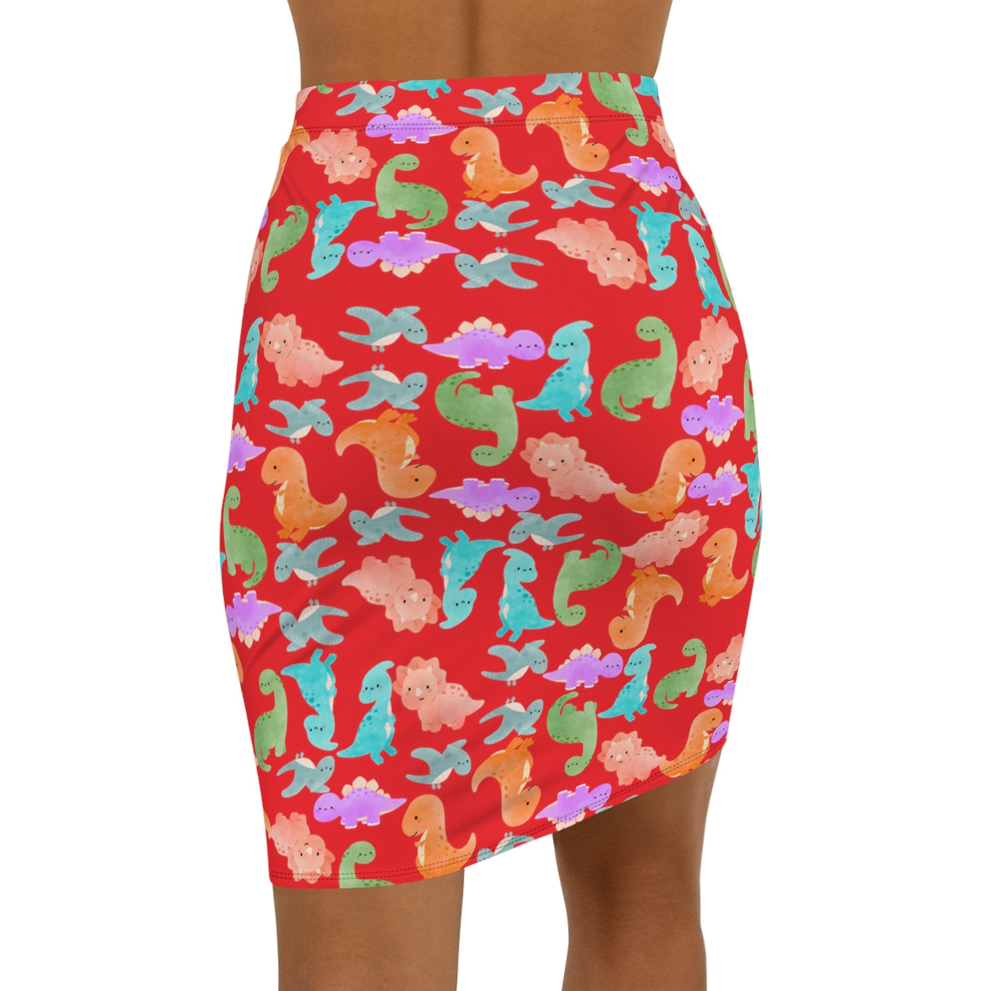 Dinosaur Print MidWaist Pencil Skirt for Fun and Playful Style Womens Skirt Cute Skirt Fashionable Skirt Casual Skirt Gift Idea Rainbow Dinos Red
