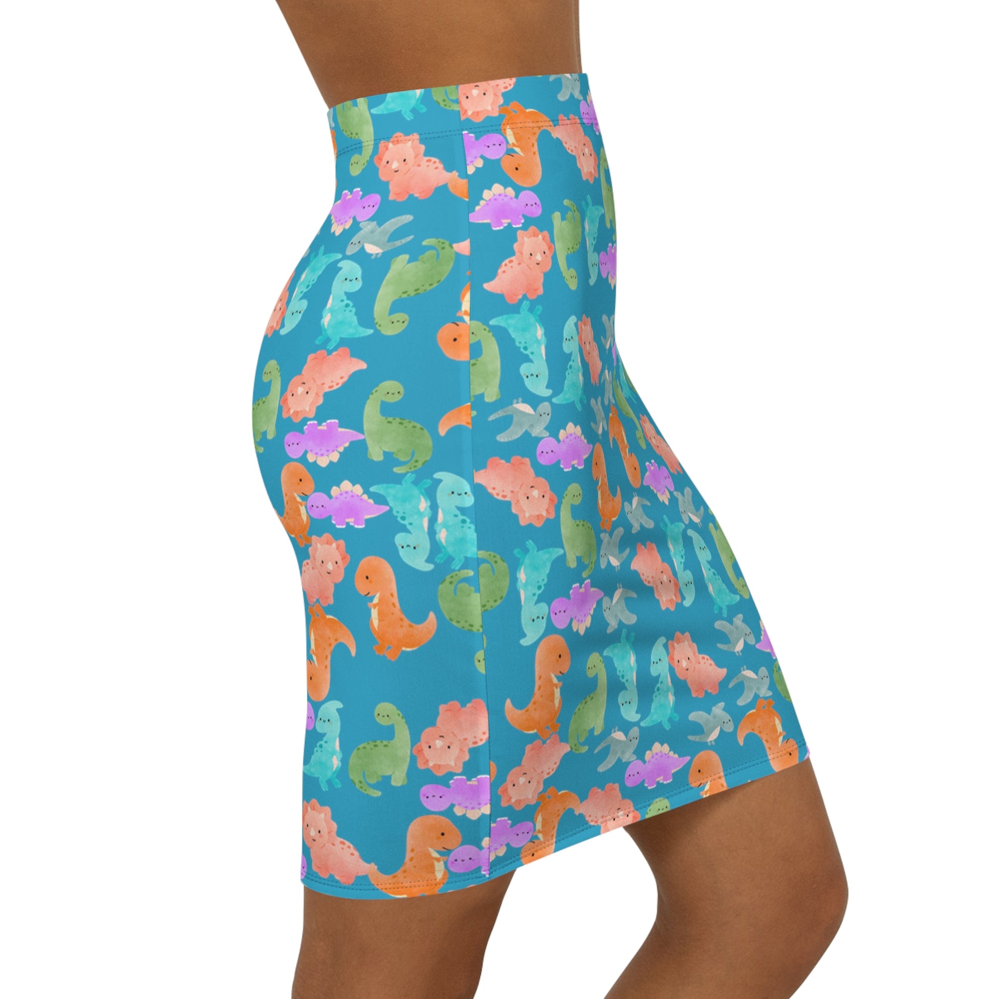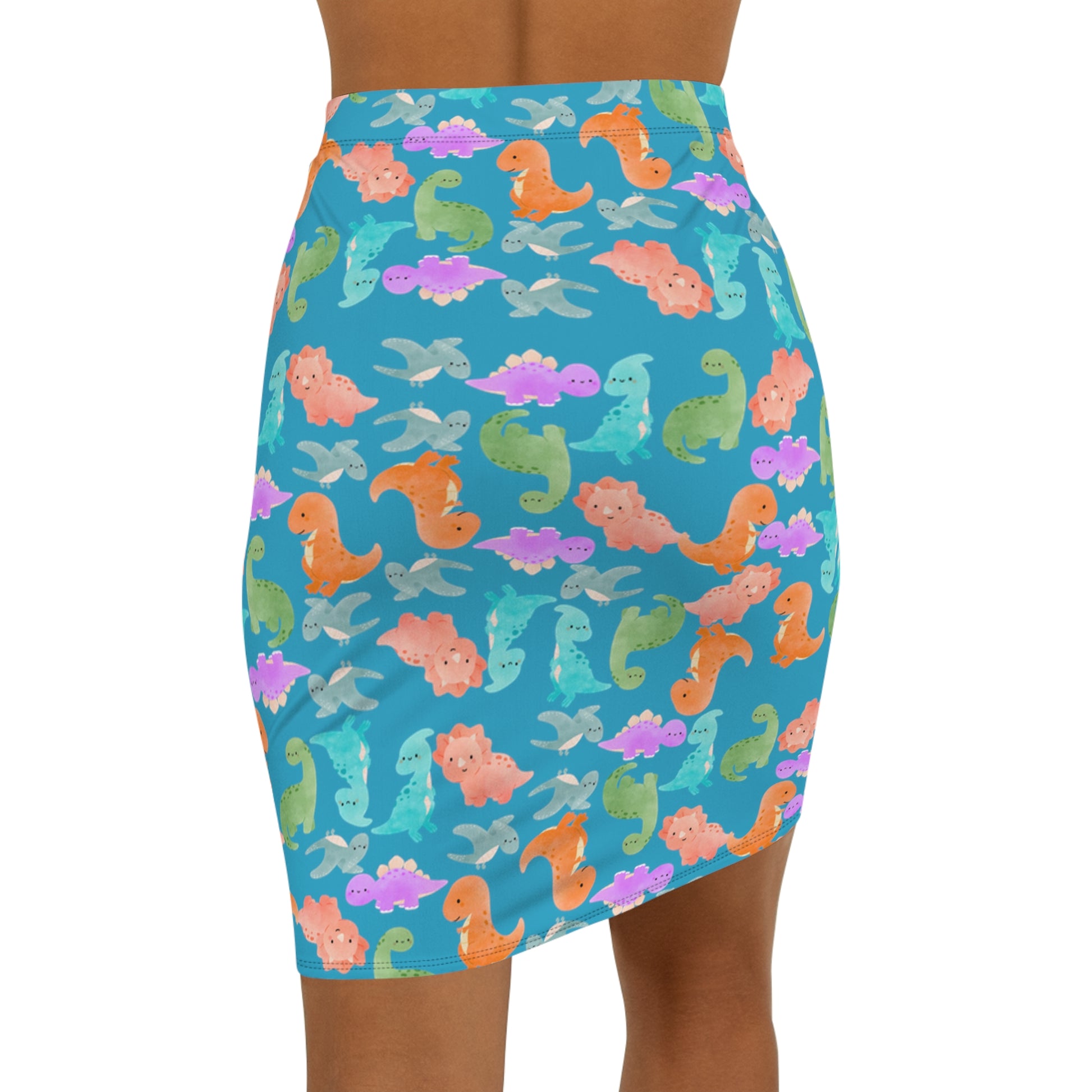Dinosaur Print MidWaist Pencil Skirt for Fun and Playful Style Womens Skirt Cute Skirt Fashionable Skirt Casual Skirt Gift Idea Rainbow Dinos Turquoise