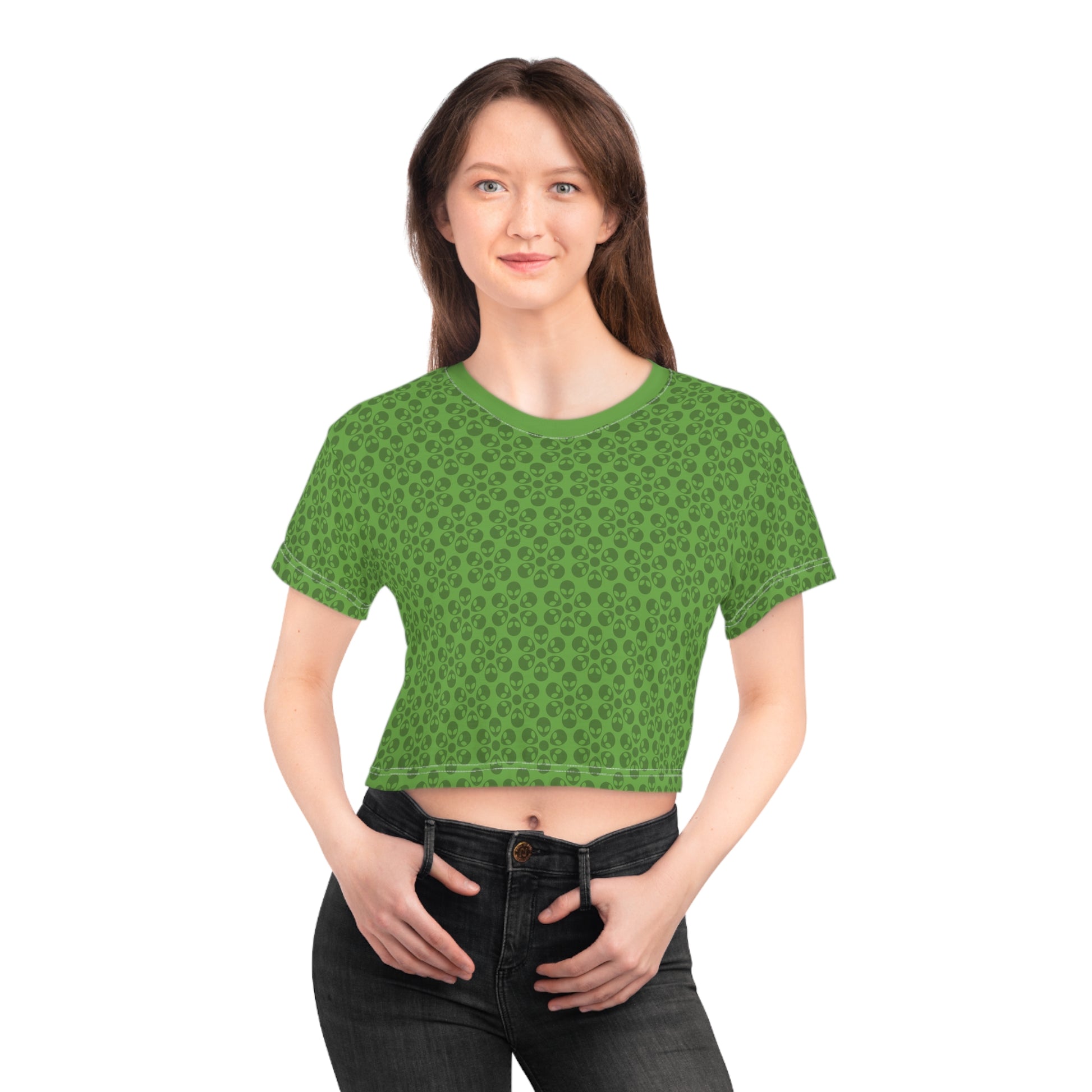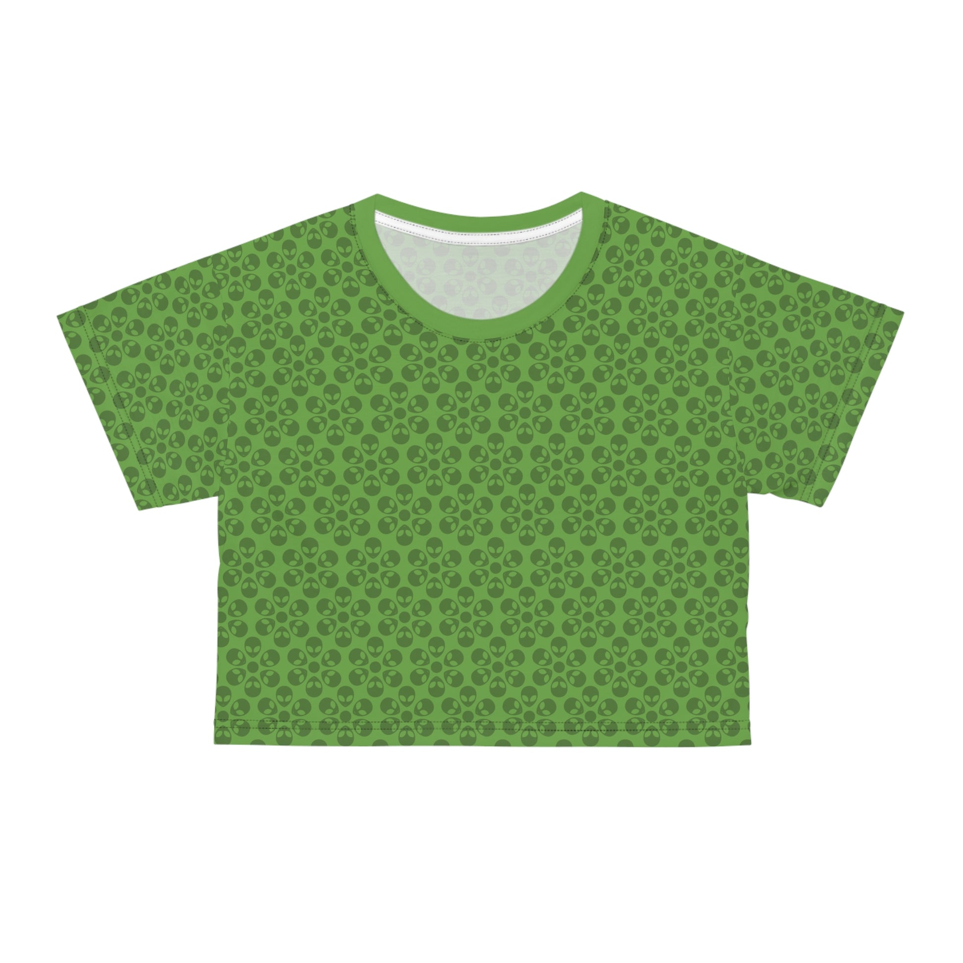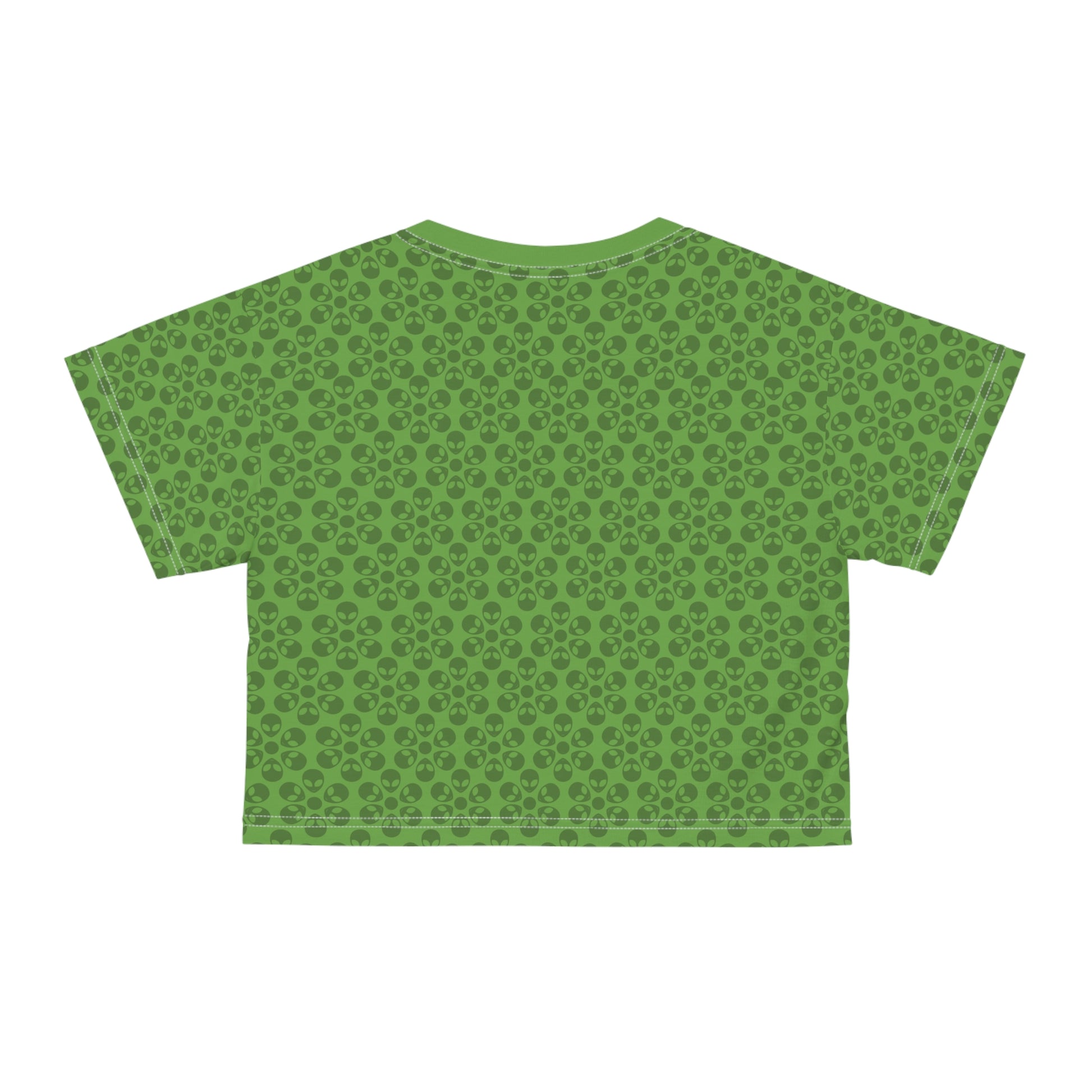 Feminine Floral Crop Tee Trendy Summer Top Aesthetic Graphic Shirt Casual Outfit Unique Gift for Her Vintage Style Tee Alien Flowers Green