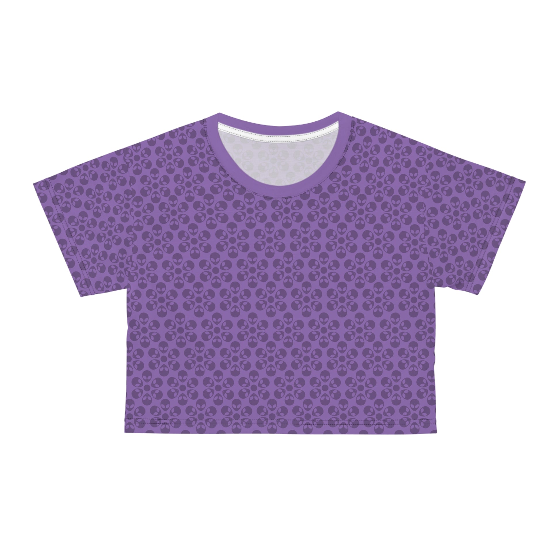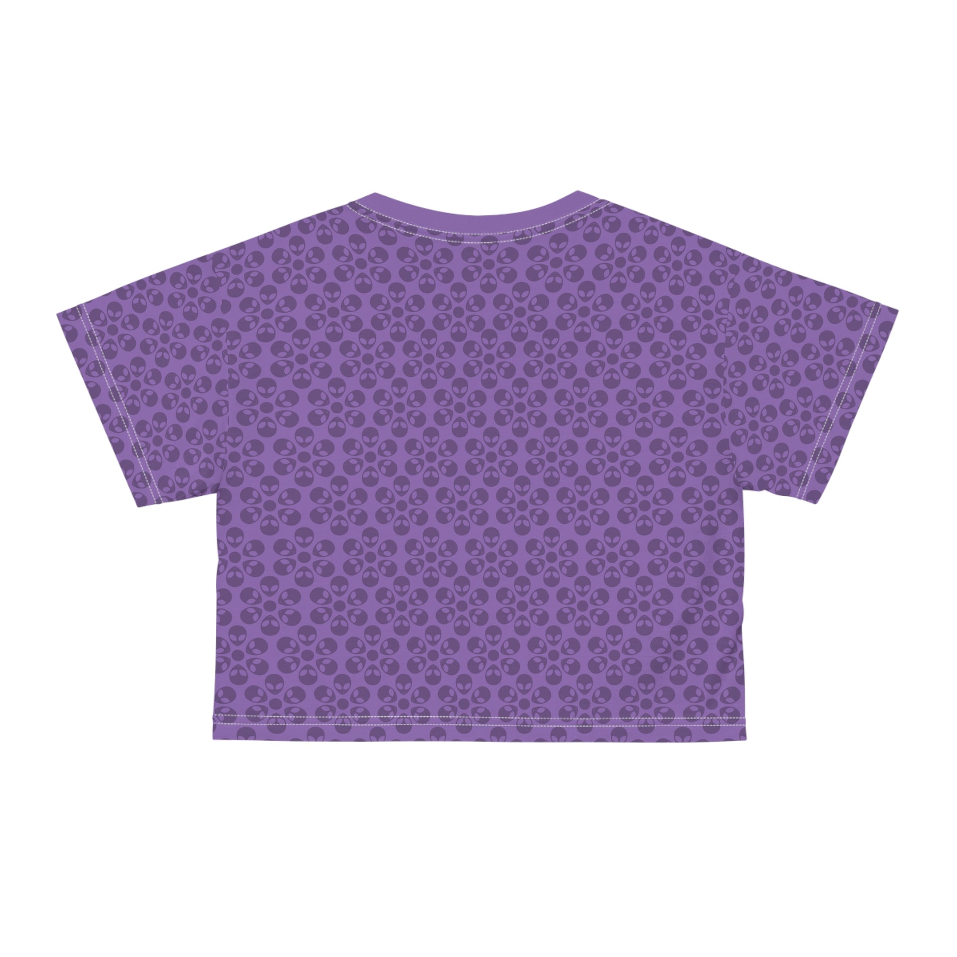 Feminine Floral Crop Tee Trendy Summer Top Aesthetic Graphic Shirt Casual Outfit Unique Gift for Her Vintage Style Tee Alien Flowers Light Purple