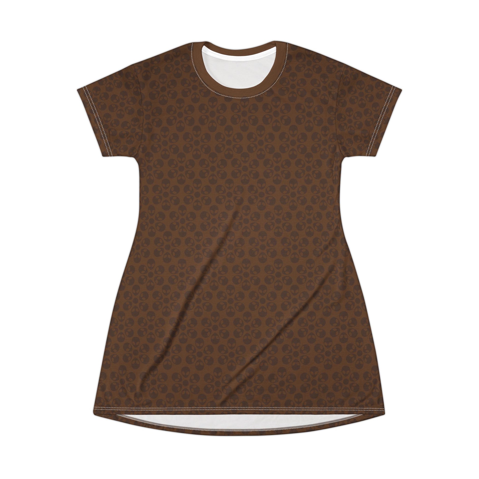 Floral Pattern TShirt Dress Casual Summer Dress Cute Dress for Women Floral Print Dress Trendy Everyday Wear Perfect for Beach Alien Flowers Brown