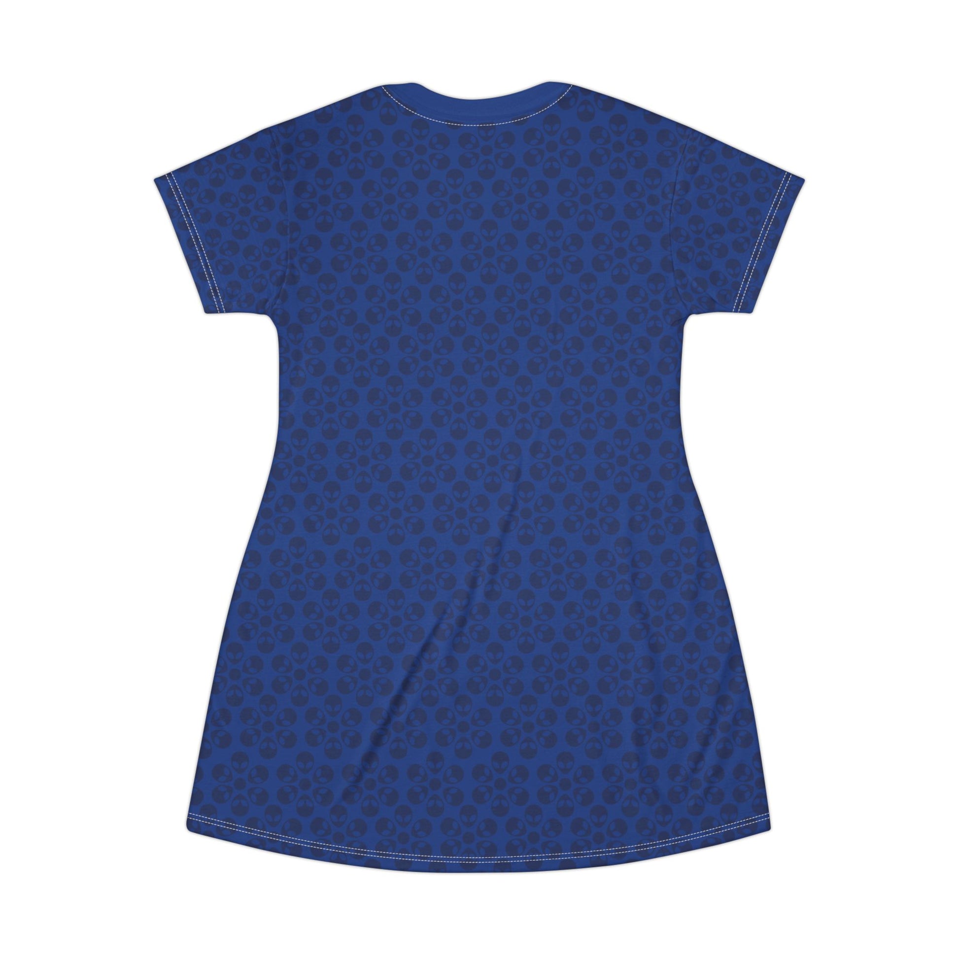 Floral Pattern TShirt Dress Casual Summer Dress Cute Dress for Women Floral Print Dress Trendy Everyday Wear Perfect for Beach Alien Flowers Dark Blue