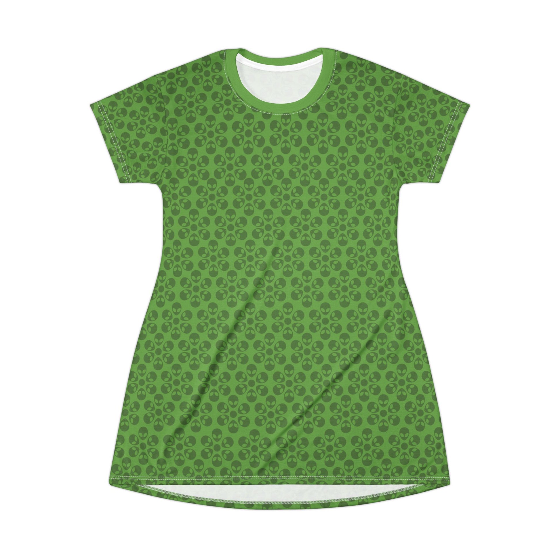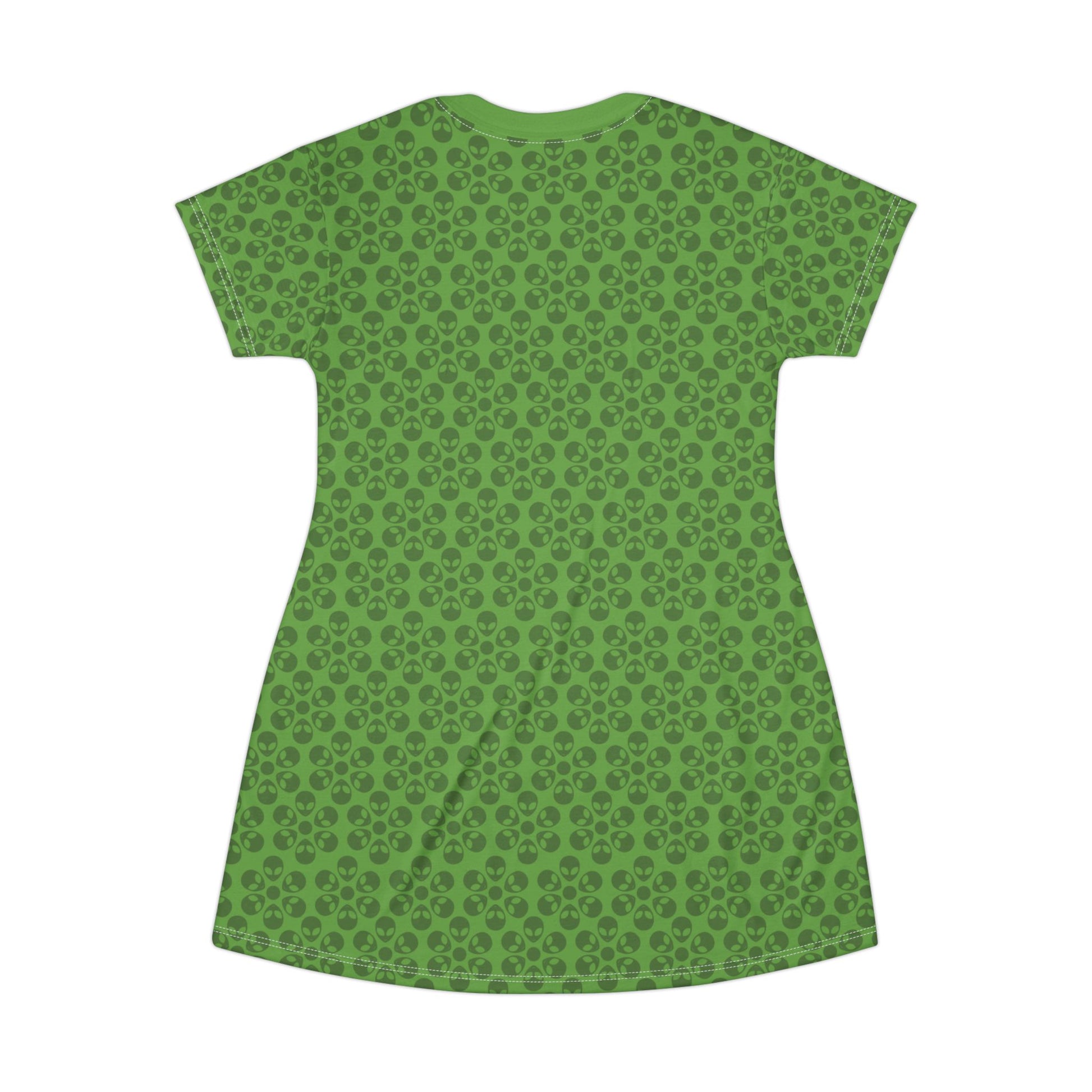 Floral Pattern TShirt Dress Casual Summer Dress Cute Dress for Women Floral Print Dress Trendy Everyday Wear Perfect for Beach Alien Flowers Green