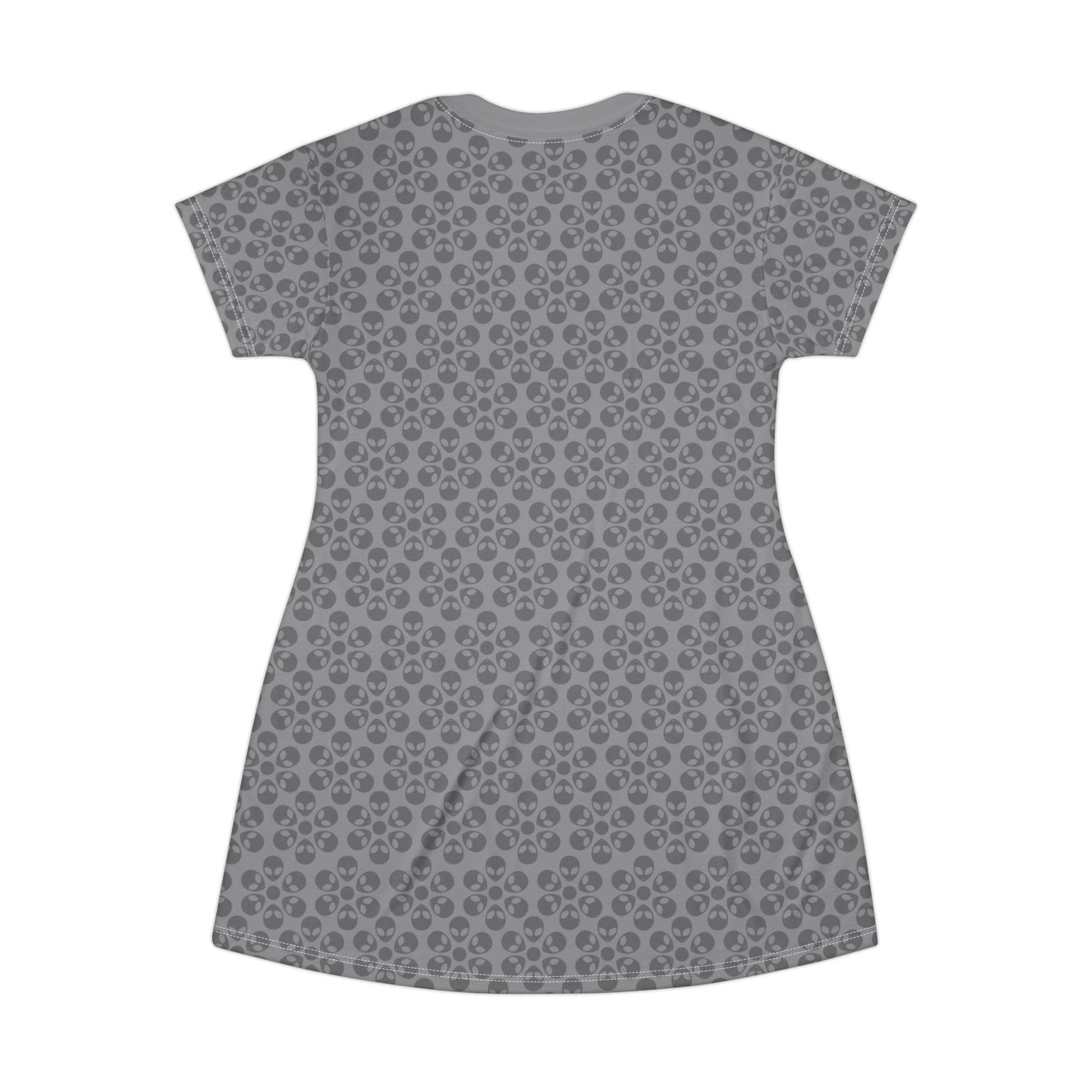 Floral Pattern TShirt Dress Casual Summer Dress Cute Dress for Women Floral Print Dress Trendy Everyday Wear Perfect for Beach Alien Flowers Grey