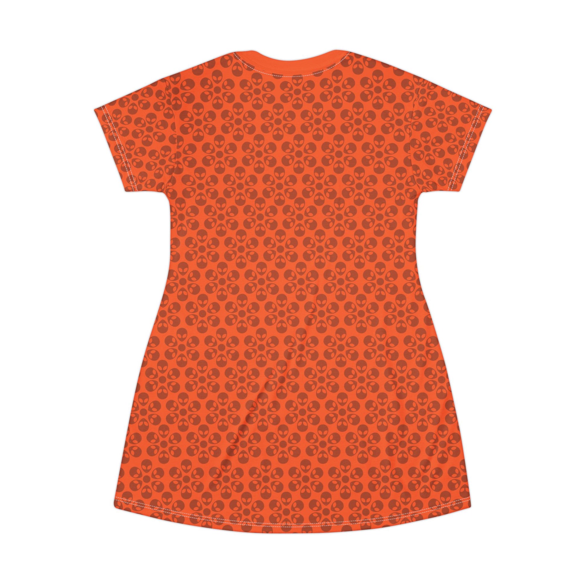 Floral Pattern TShirt Dress Casual Summer Dress Cute Dress for Women Floral Print Dress Trendy Everyday Wear Perfect for Beach Alien Flowers Orange