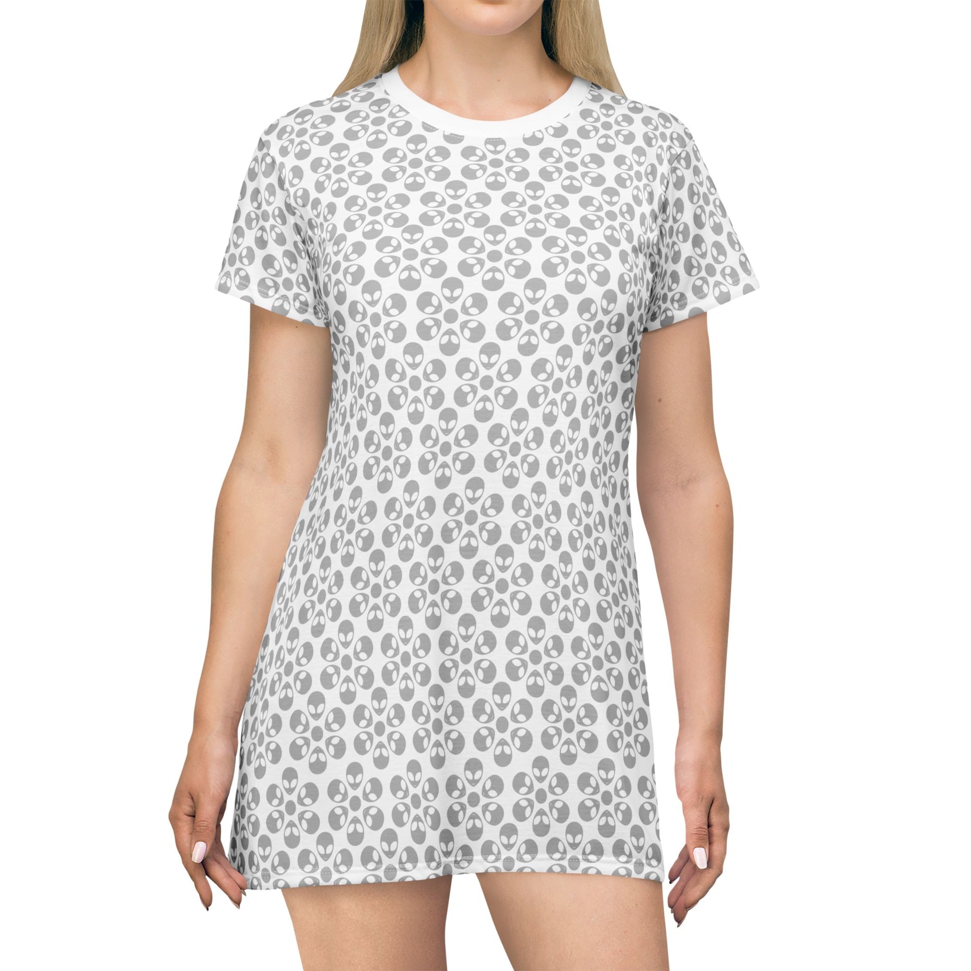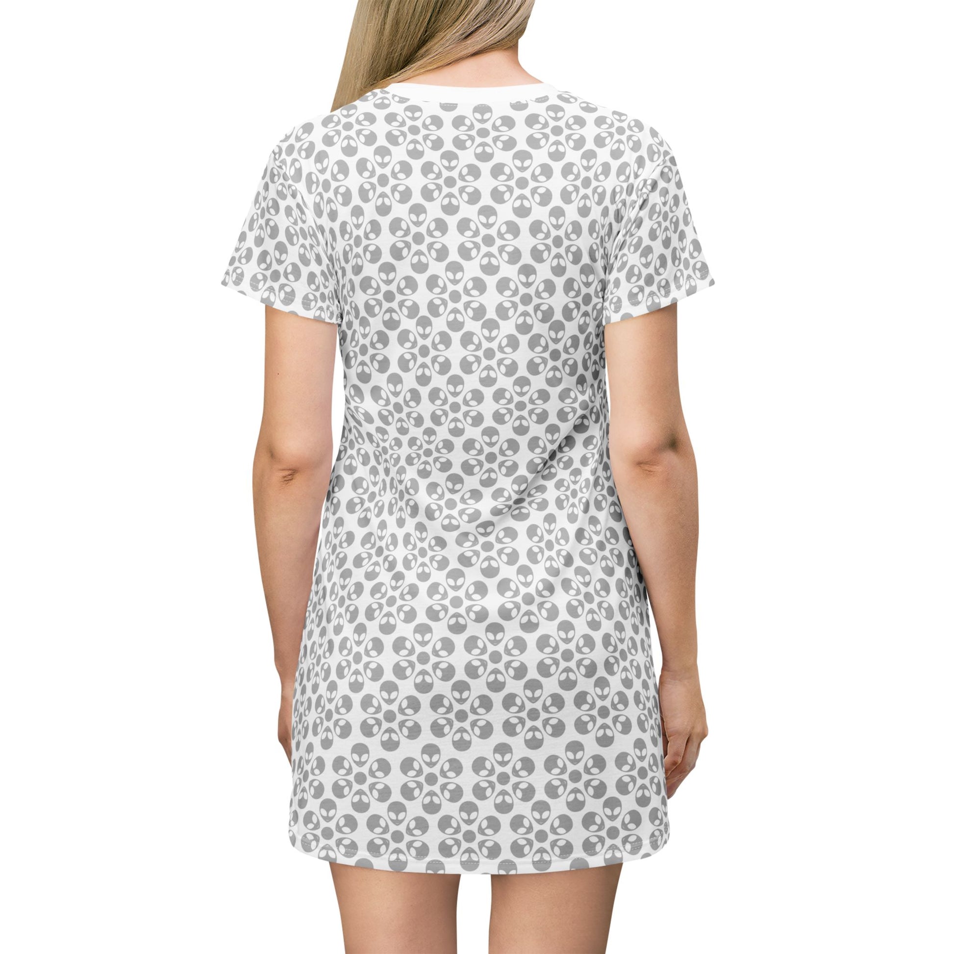 Floral Pattern TShirt Dress Casual Summer Dress Cute Dress for Women Floral Print Dress Trendy Everyday Wear Perfect for Beach Alien Flowers White