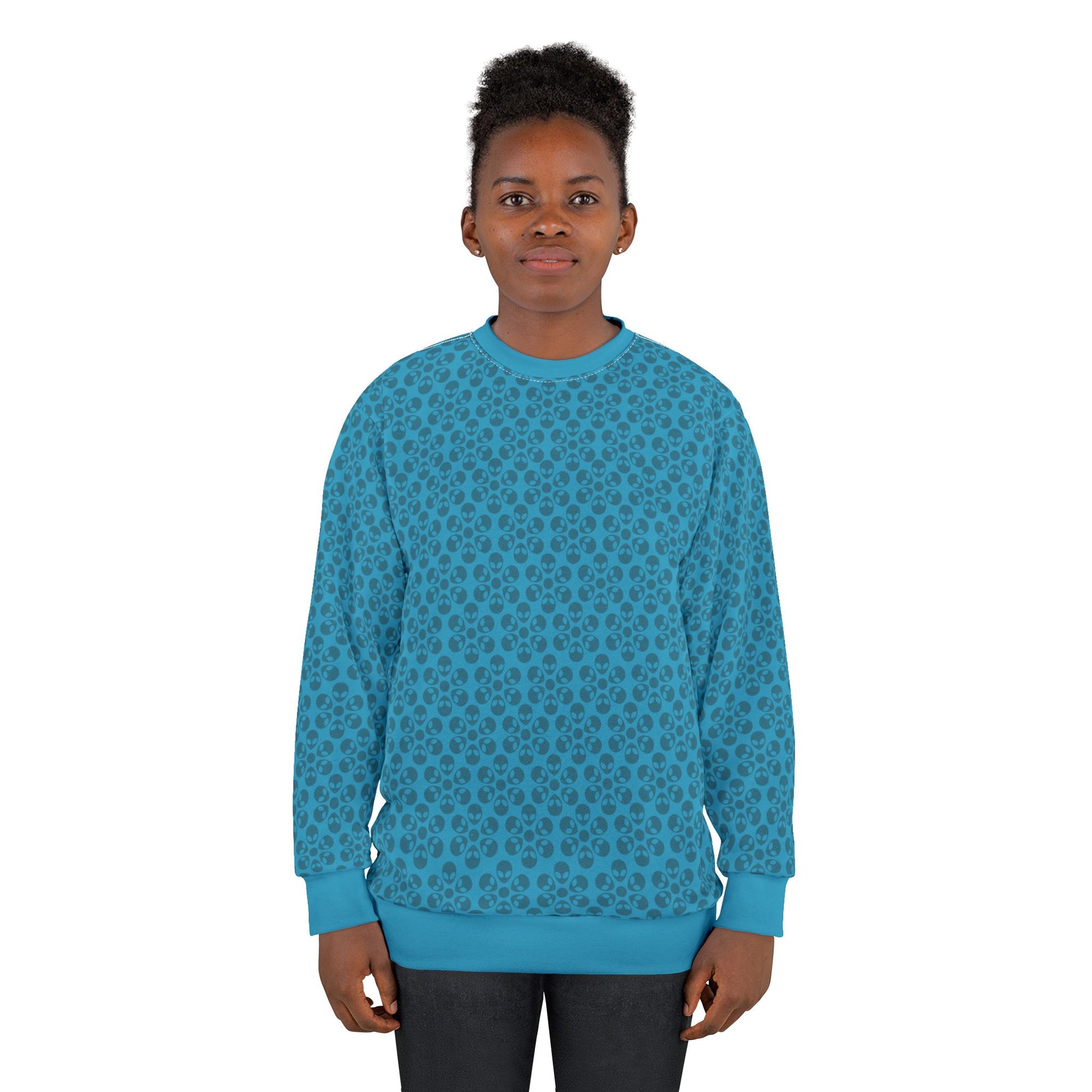Floral Pattern Unisex Sweatshirt Cozy Gift for Her Trendy Floral Everyday Wear Perfect for Fall Unique Comfortable Lounge Wear Alien Flowers Turquoise
