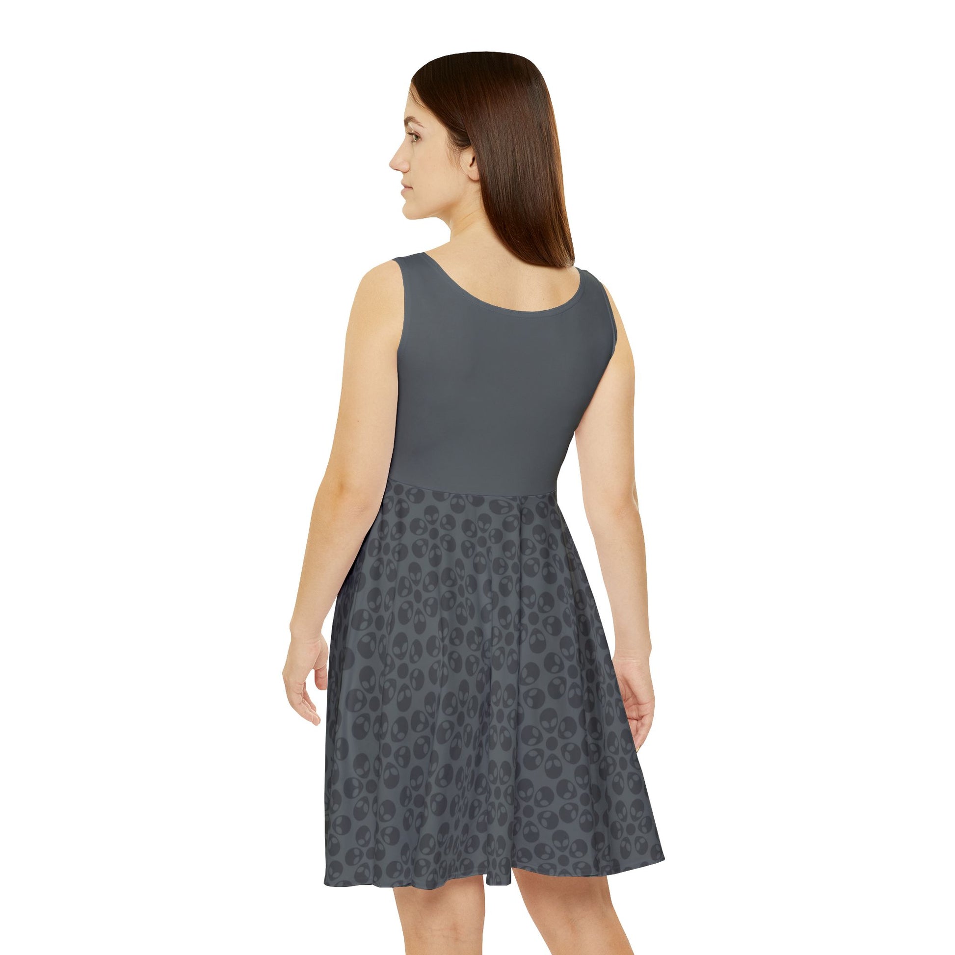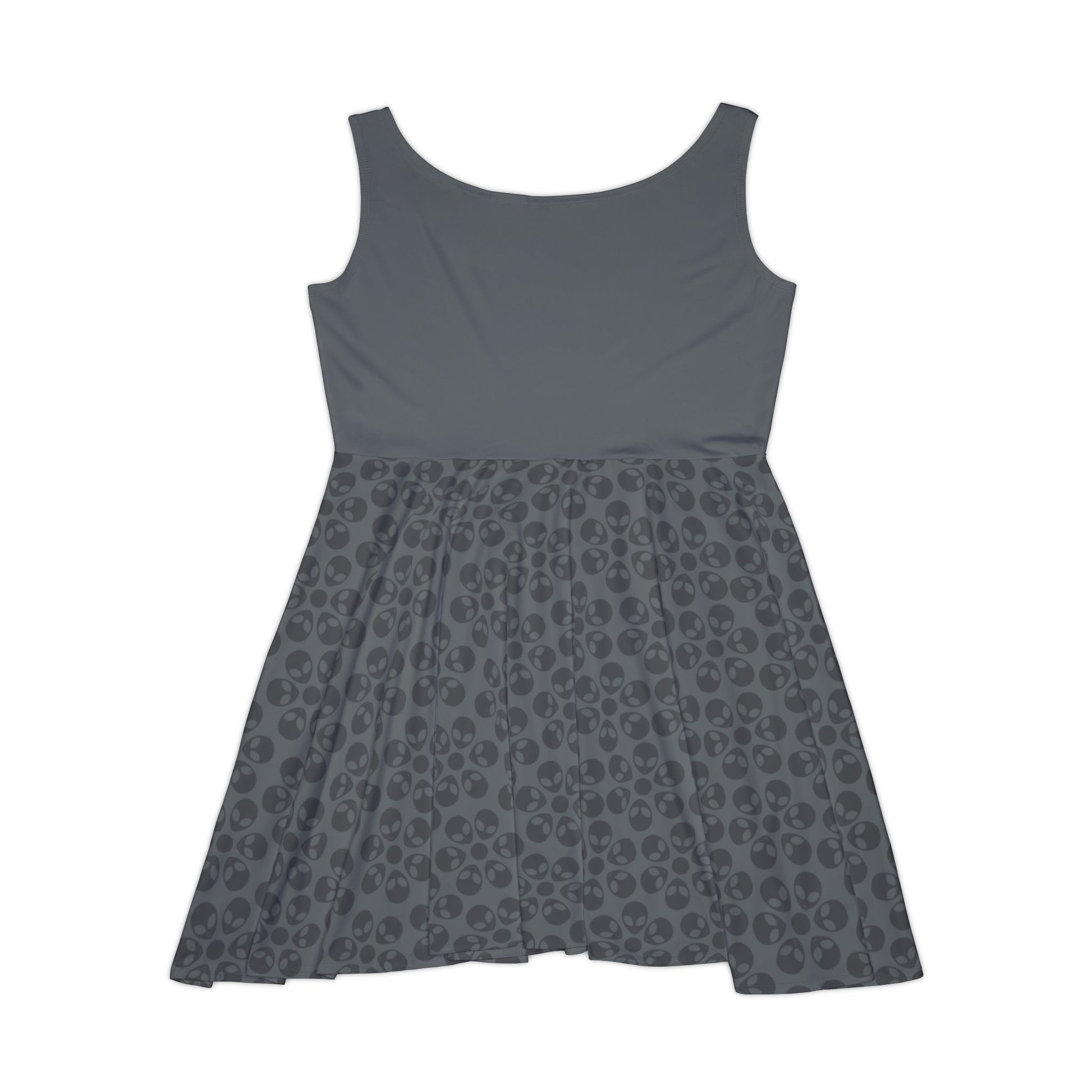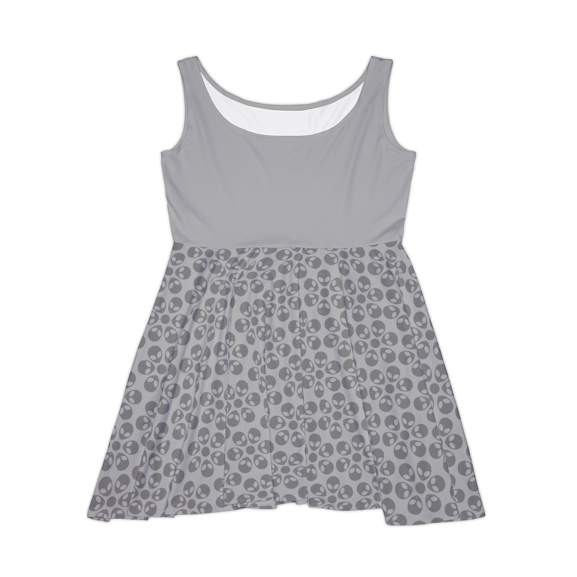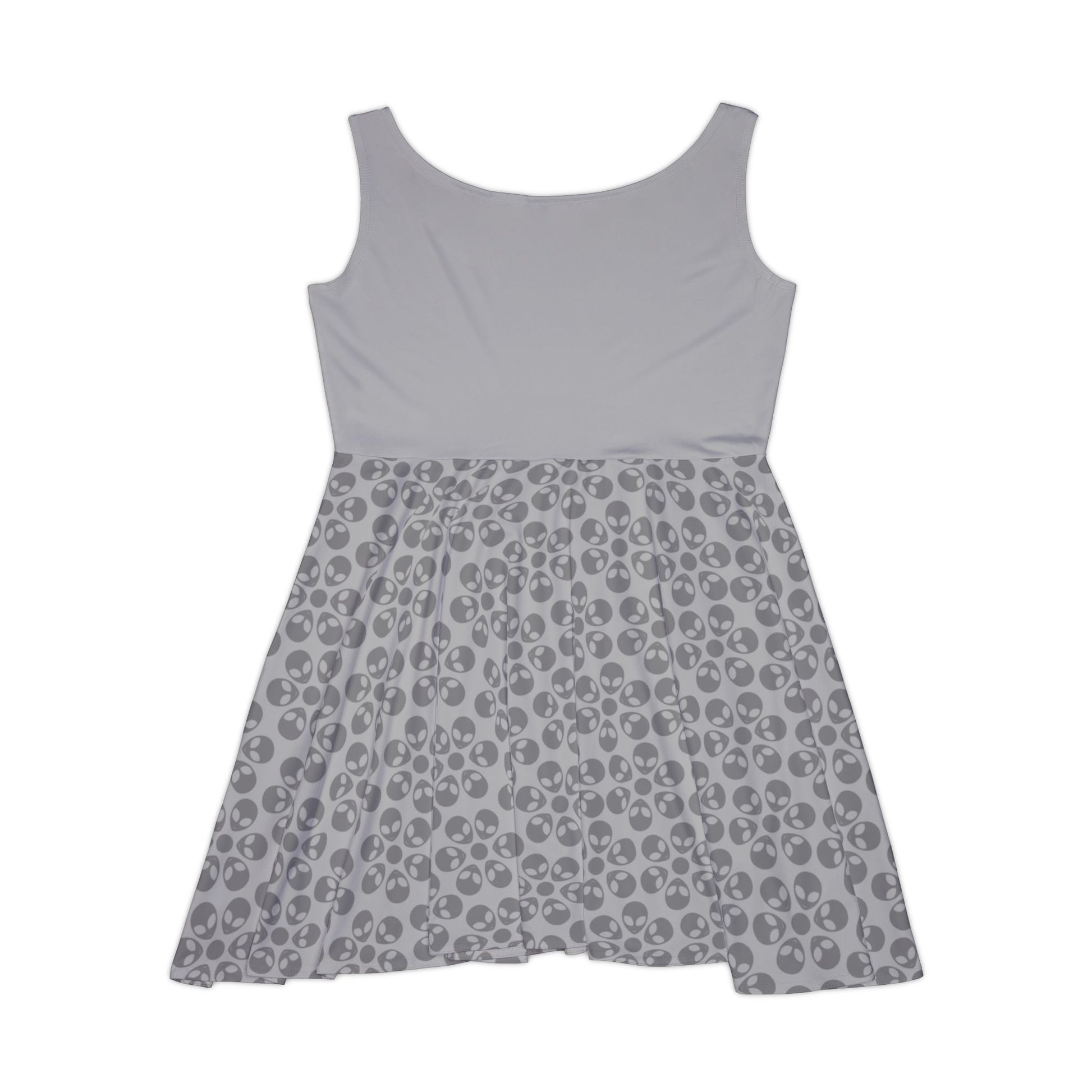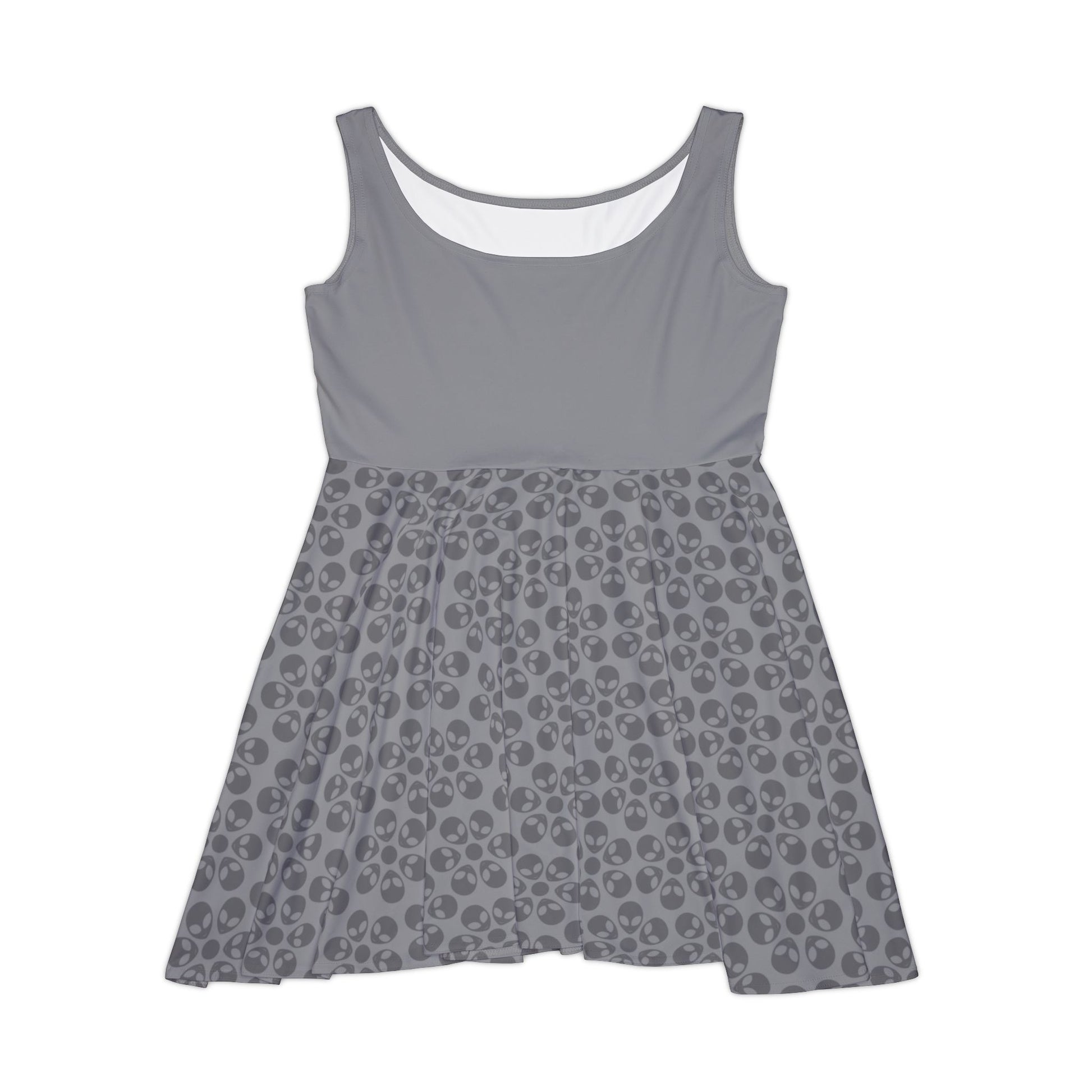 Floral Print Womens Skater Dress Spring Summer Outfit Casual Dress Boho Dress Wedding Guest Dress Trendy Womens Apparel Alien Flowers Light Grey