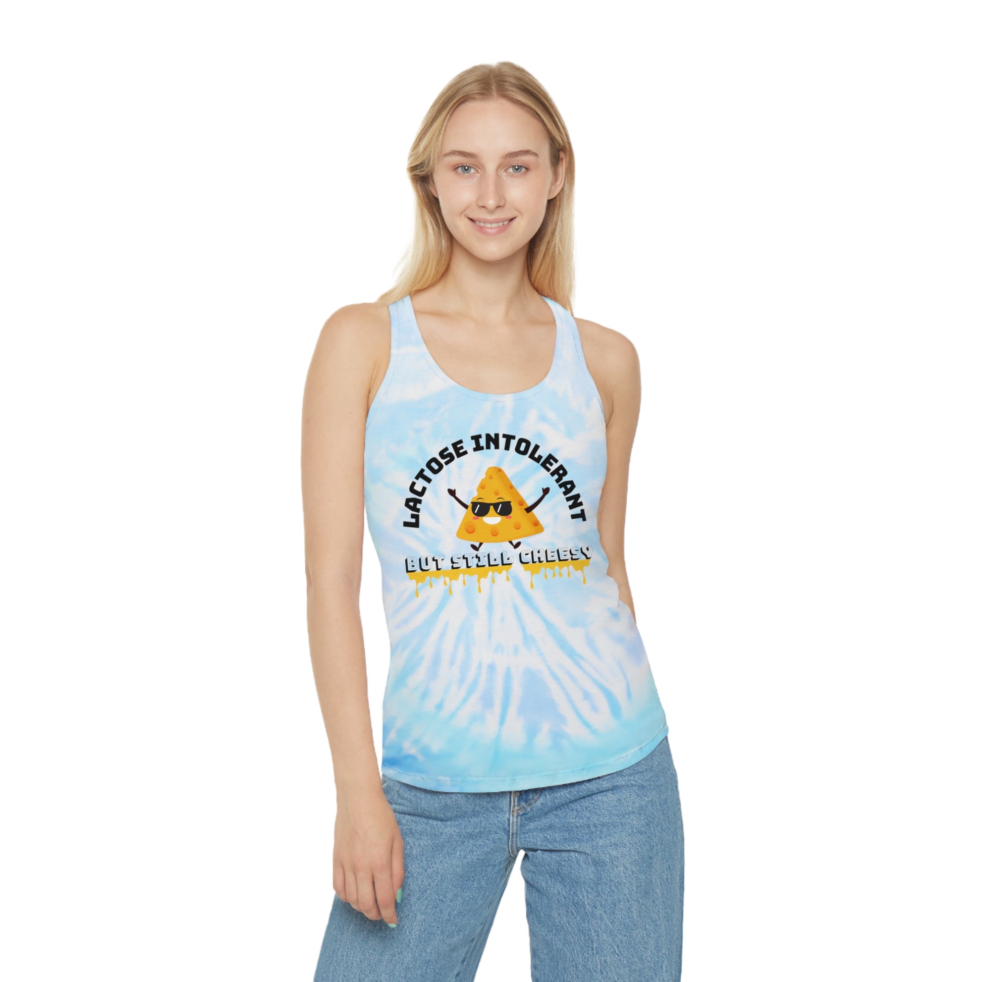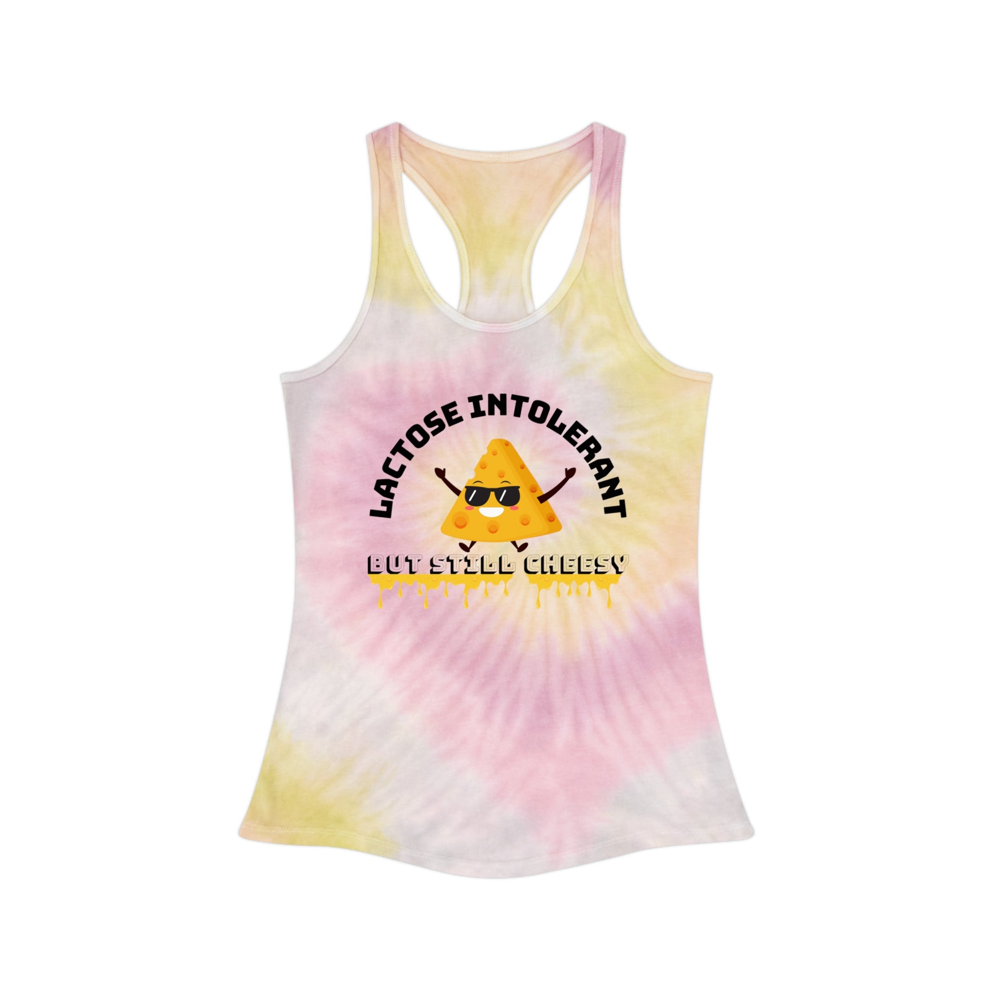 Funny Tie Dye Racerback Tank Top, Unique Gift for Lactose Intolerant Friends, Summer Vibes, Funny Tee for Parties or Workouts, [...]
