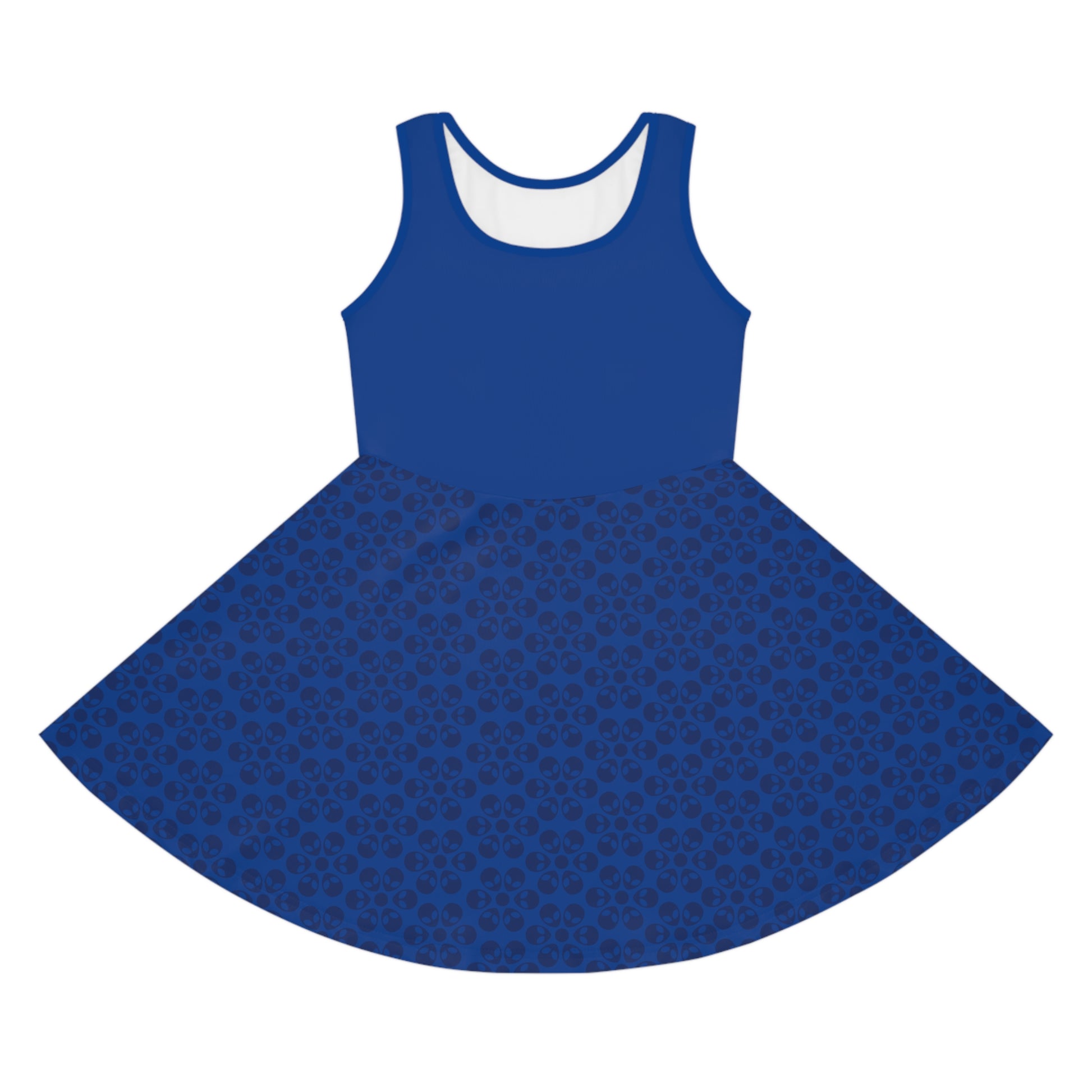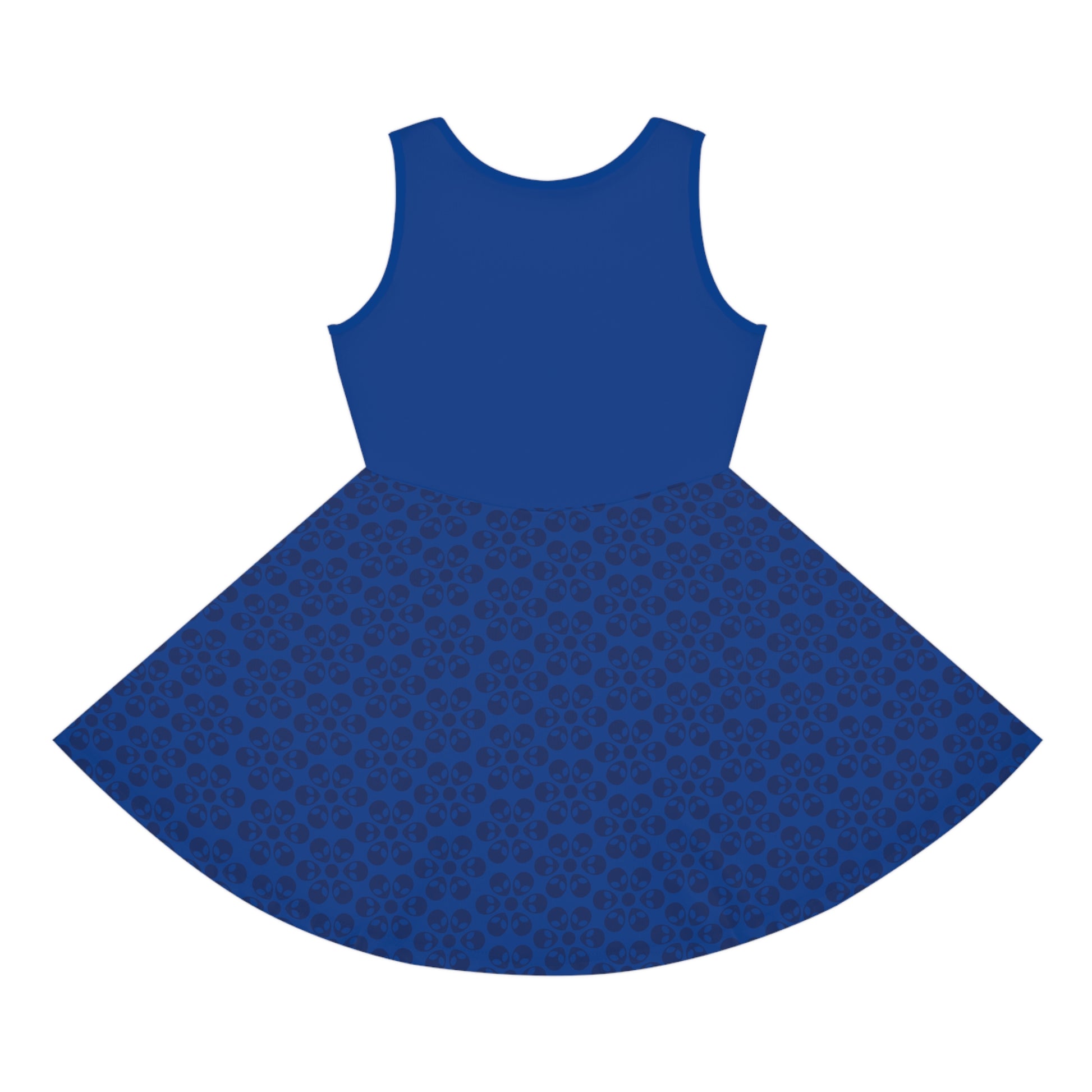 Girls Floral Sleeveless Sundress Cute Summer Dress Kids Fashion Birthday Outfit Playful Floral Pattern Spring Dress Alien Flowers Dark Blue