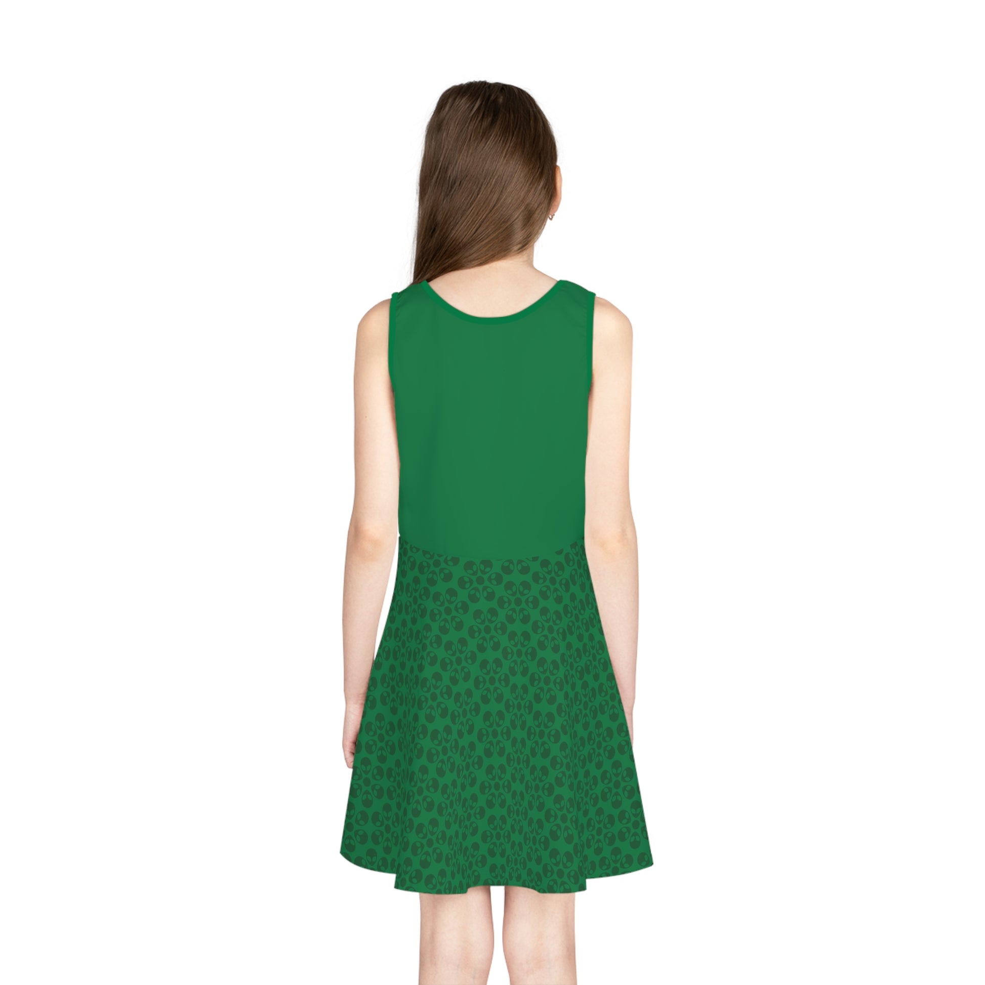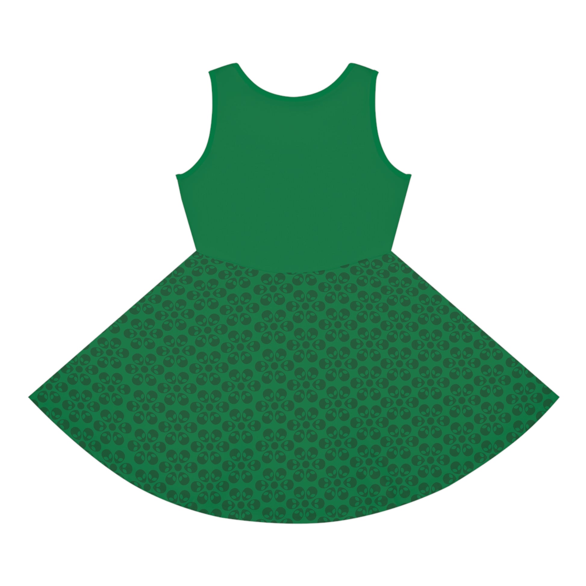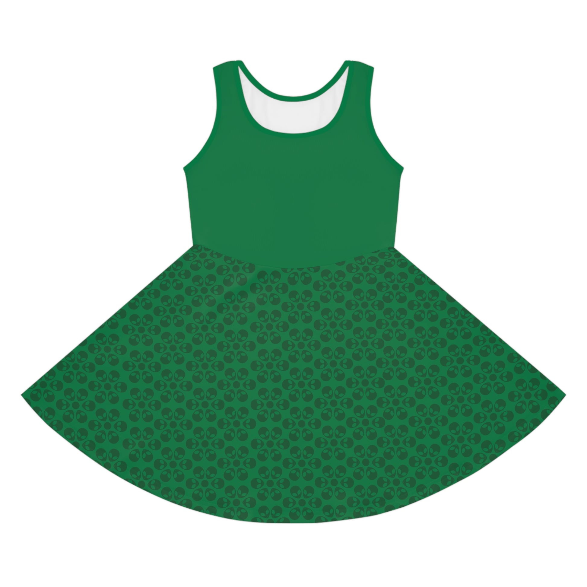 Girls Floral Sleeveless Sundress Cute Summer Dress Kids Fashion Birthday Outfit Playful Floral Pattern Spring Dress Alien Flowers Dark Green