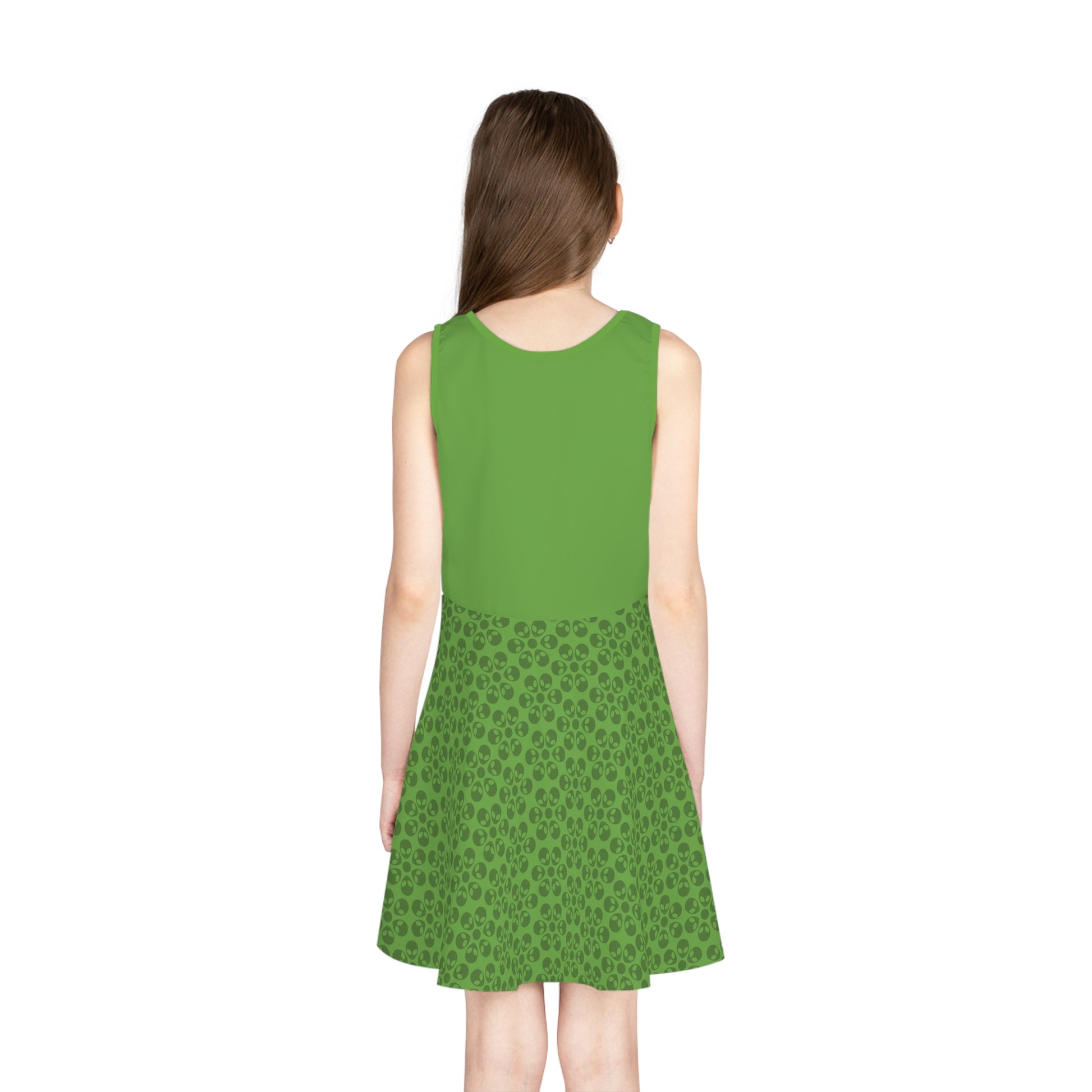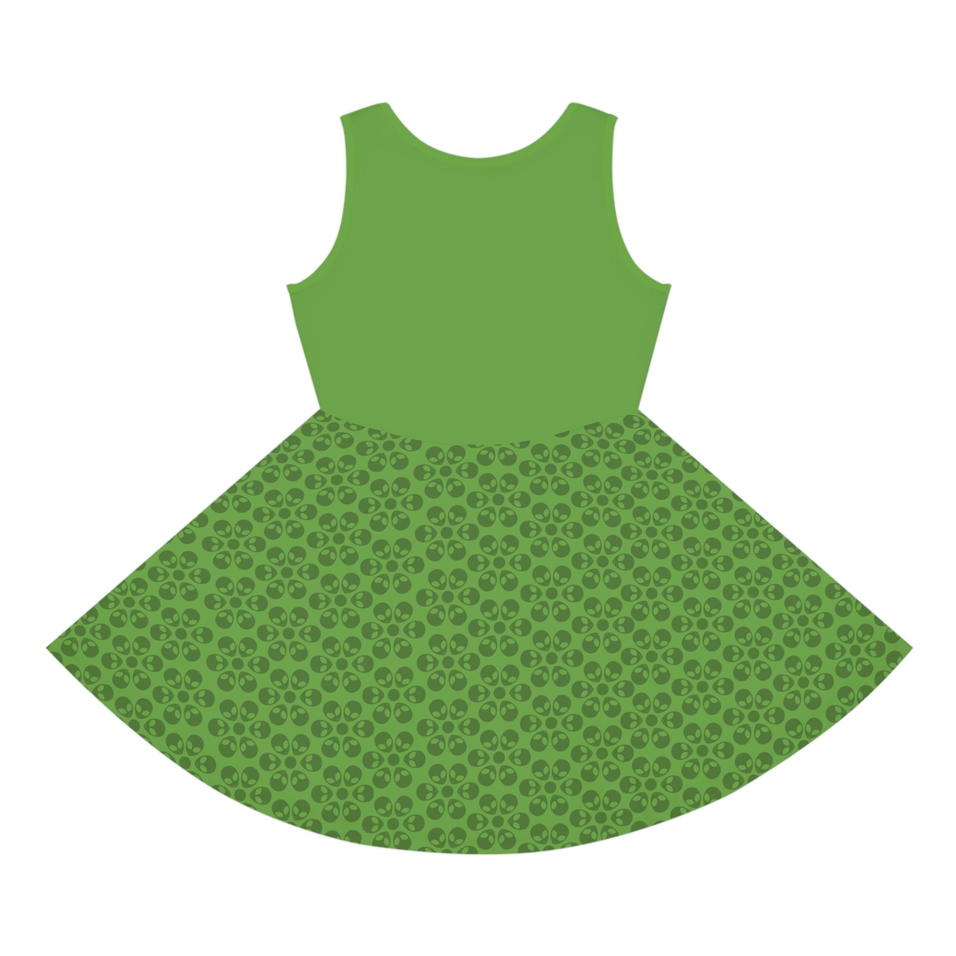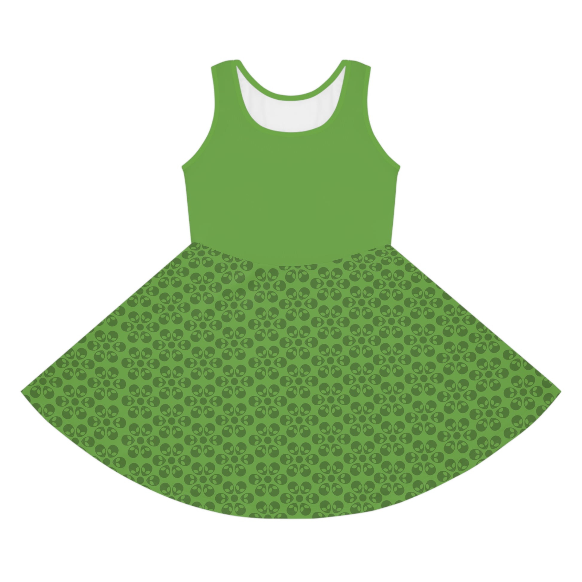 Girls Floral Sleeveless Sundress Cute Summer Dress Kids Fashion Birthday Outfit Playful Floral Pattern Spring Dress Alien Flowers Green