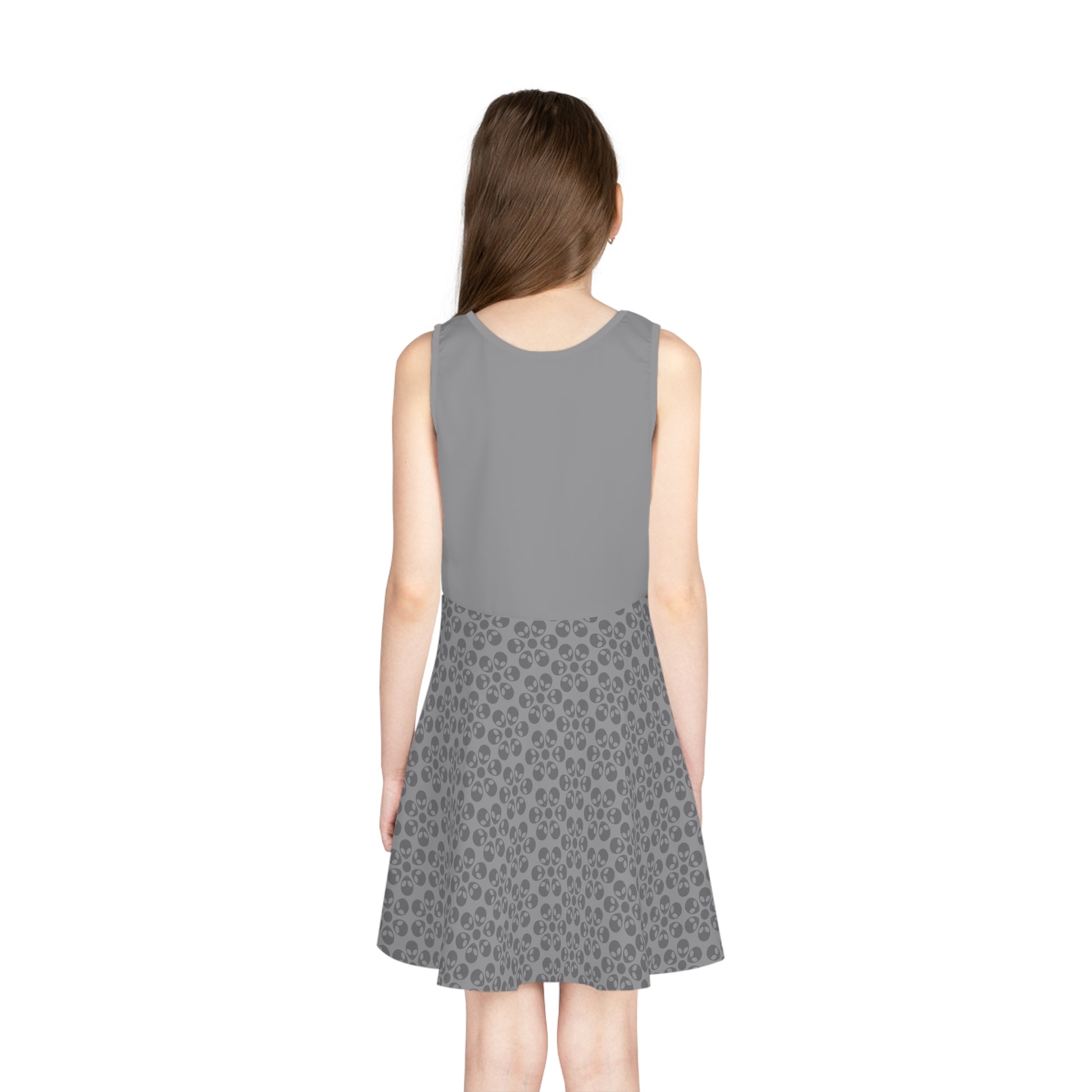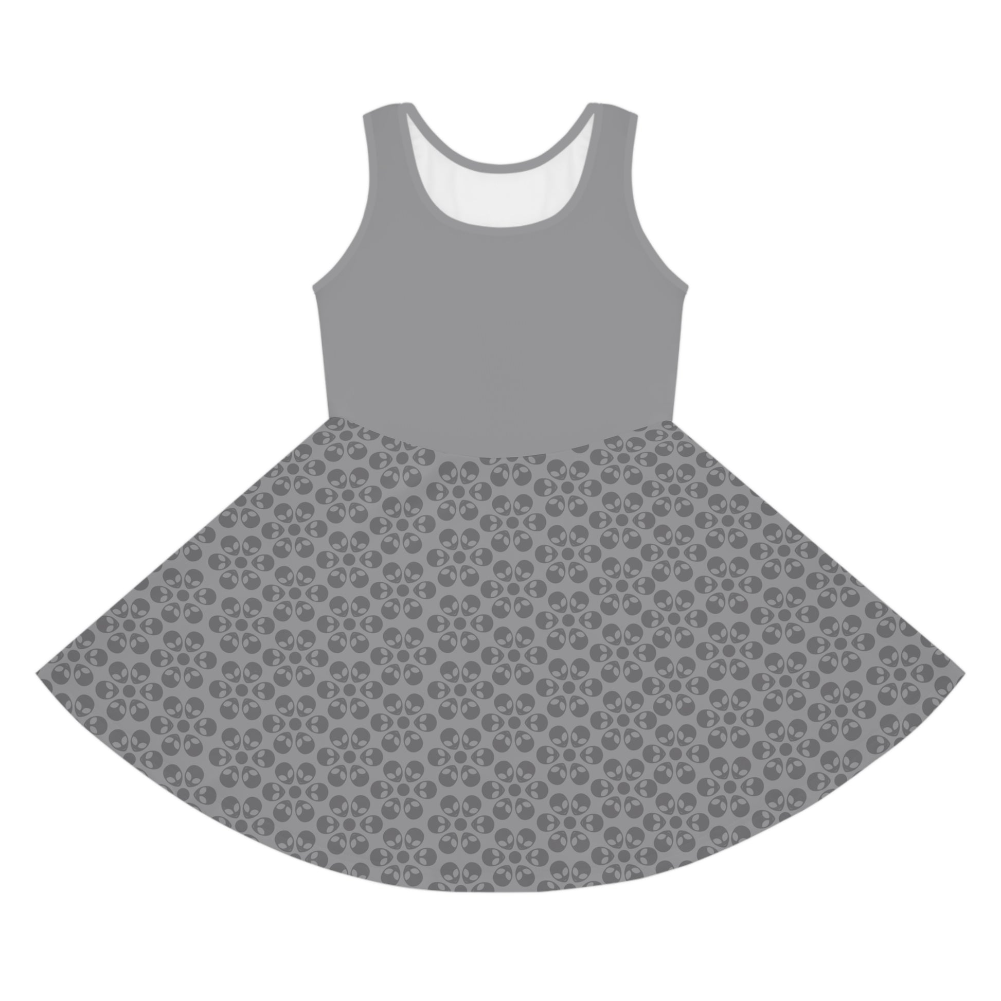 Girls Floral Sleeveless Sundress Cute Summer Dress Kids Fashion Birthday Outfit Playful Floral Pattern Spring Dress Alien Flowers Grey