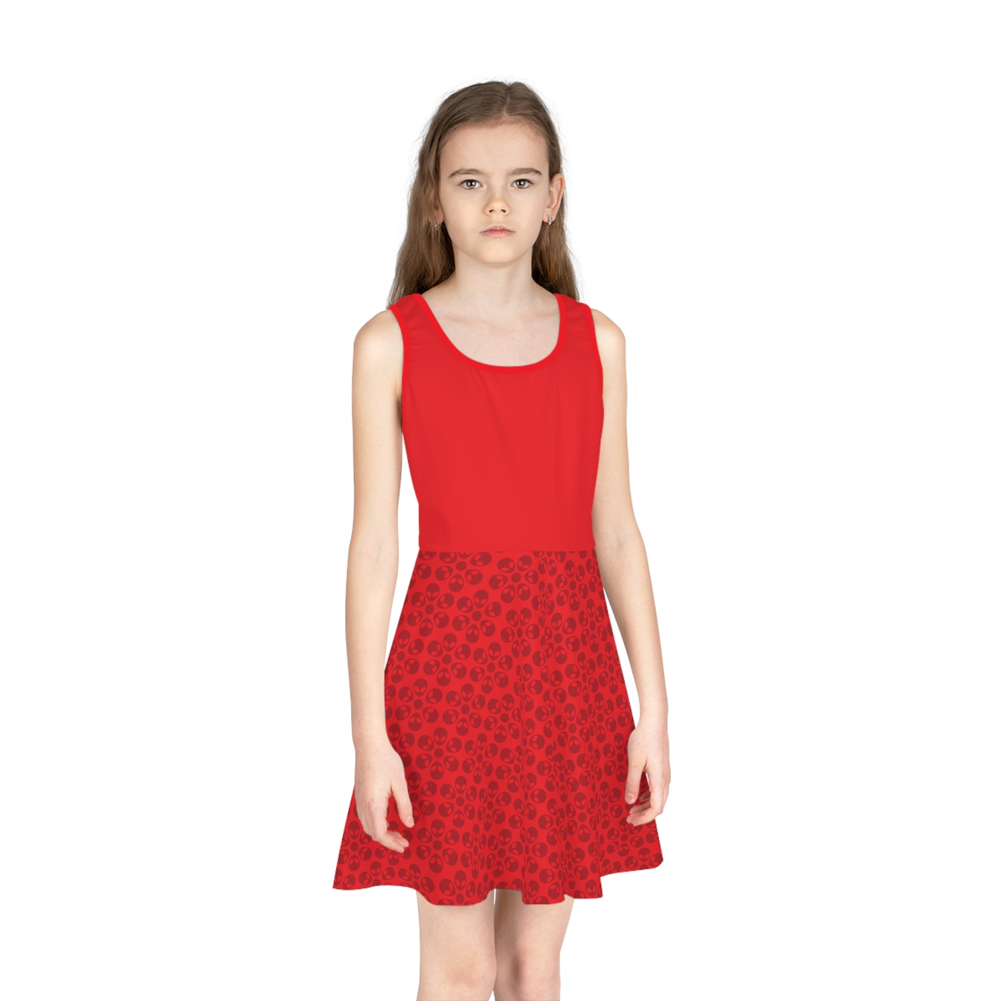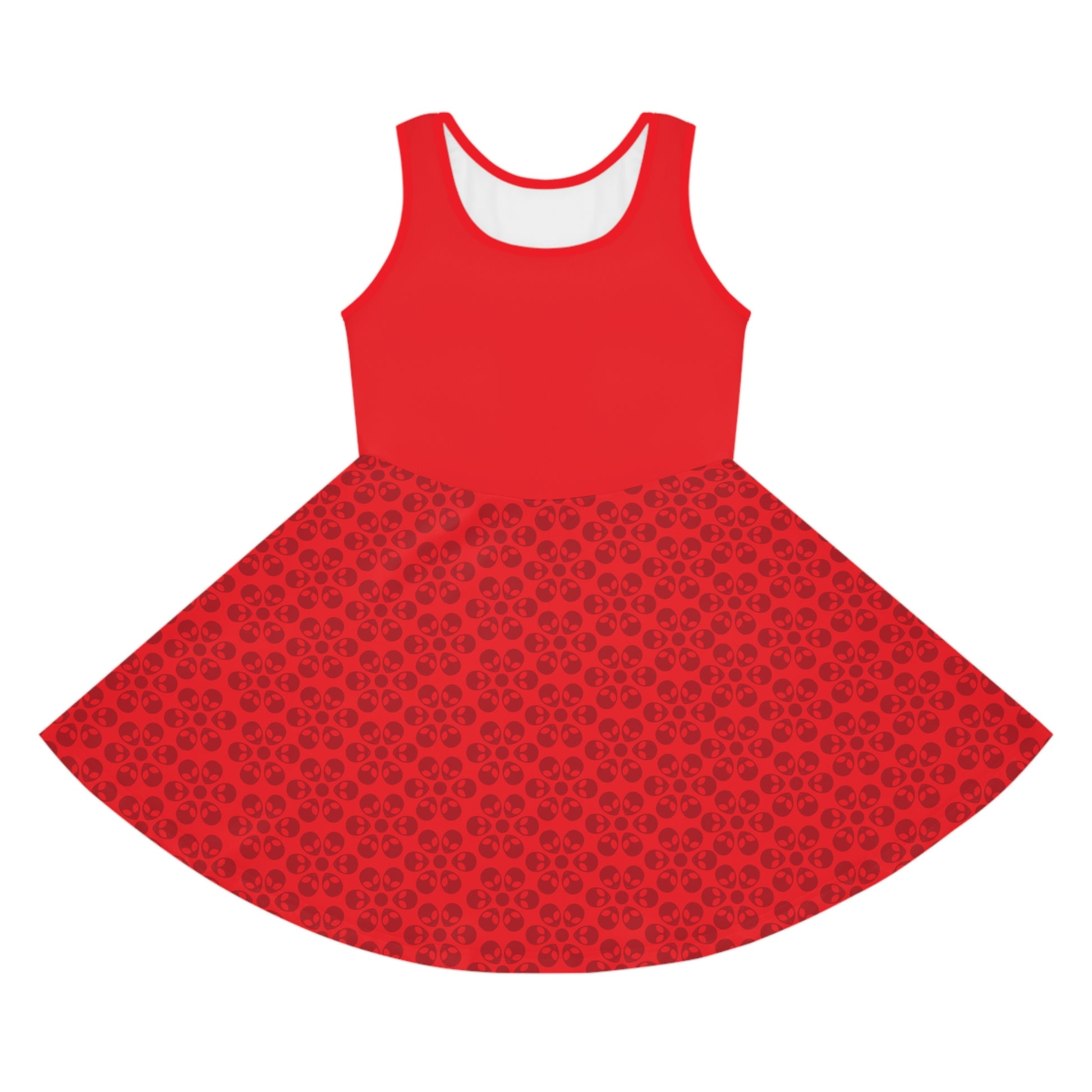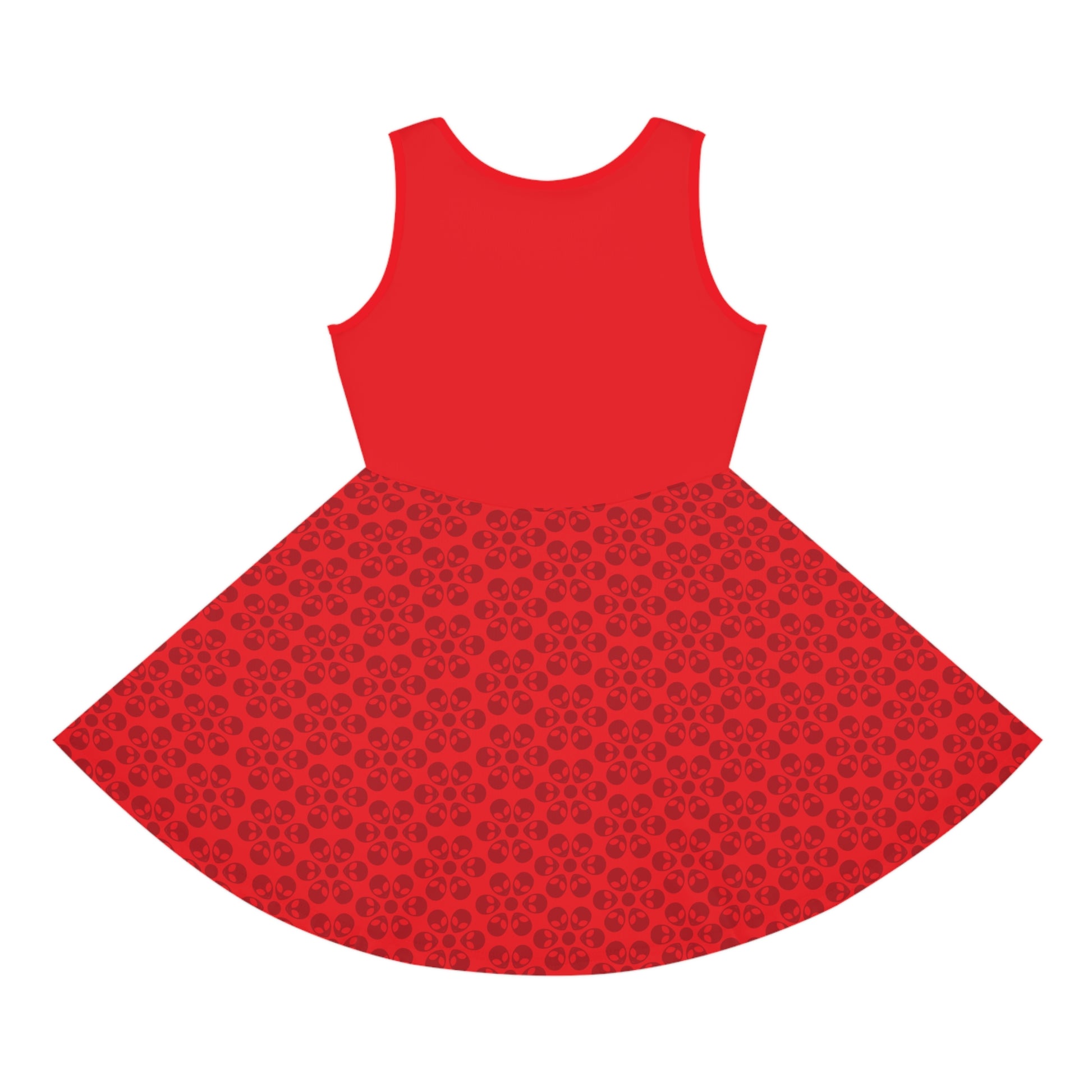 Girls Floral Sleeveless Sundress Cute Summer Dress Kids Fashion Birthday Outfit Playful Floral Pattern Spring Dress Alien Flowers Red