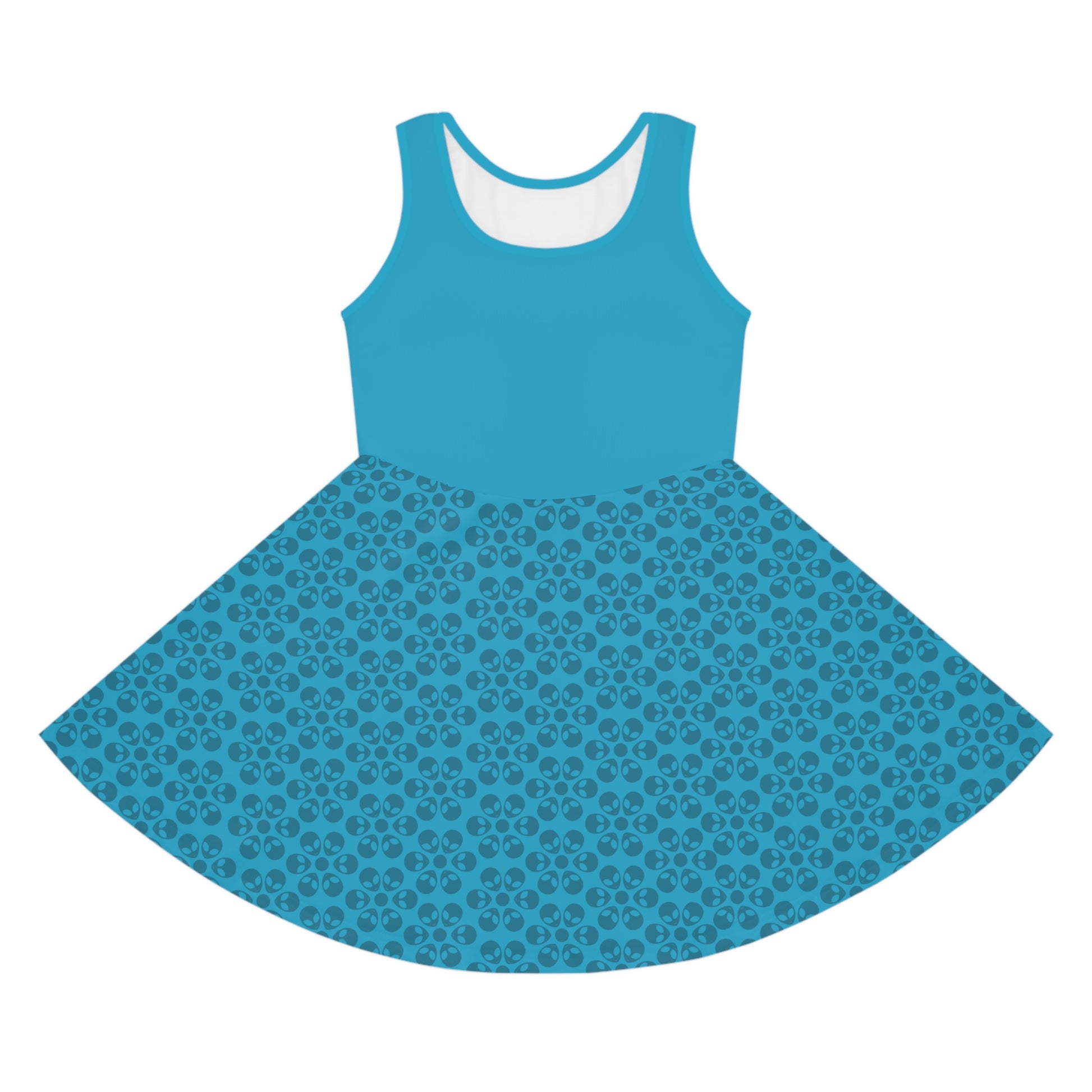 Girls Floral Sleeveless Sundress Cute Summer Dress Kids Fashion Birthday Outfit Playful Floral Pattern Spring Dress Alien Flowers Turquoise