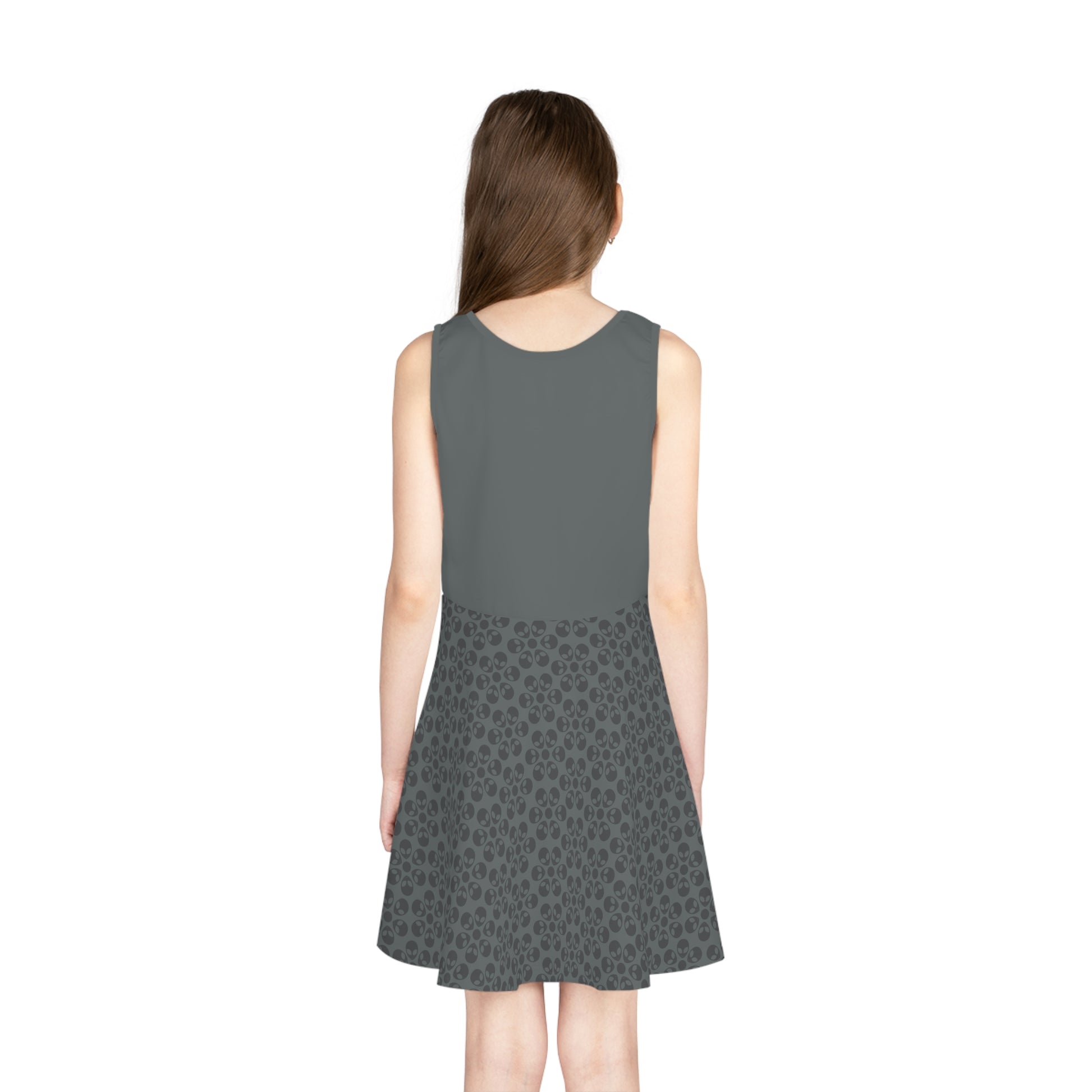 Girls Floral Sleeveless Sundress Cute Summer Dress Kids Fashion Birthday Outfit Playful Floral Pattern Spring Dress Alien Flowers Dark Grey