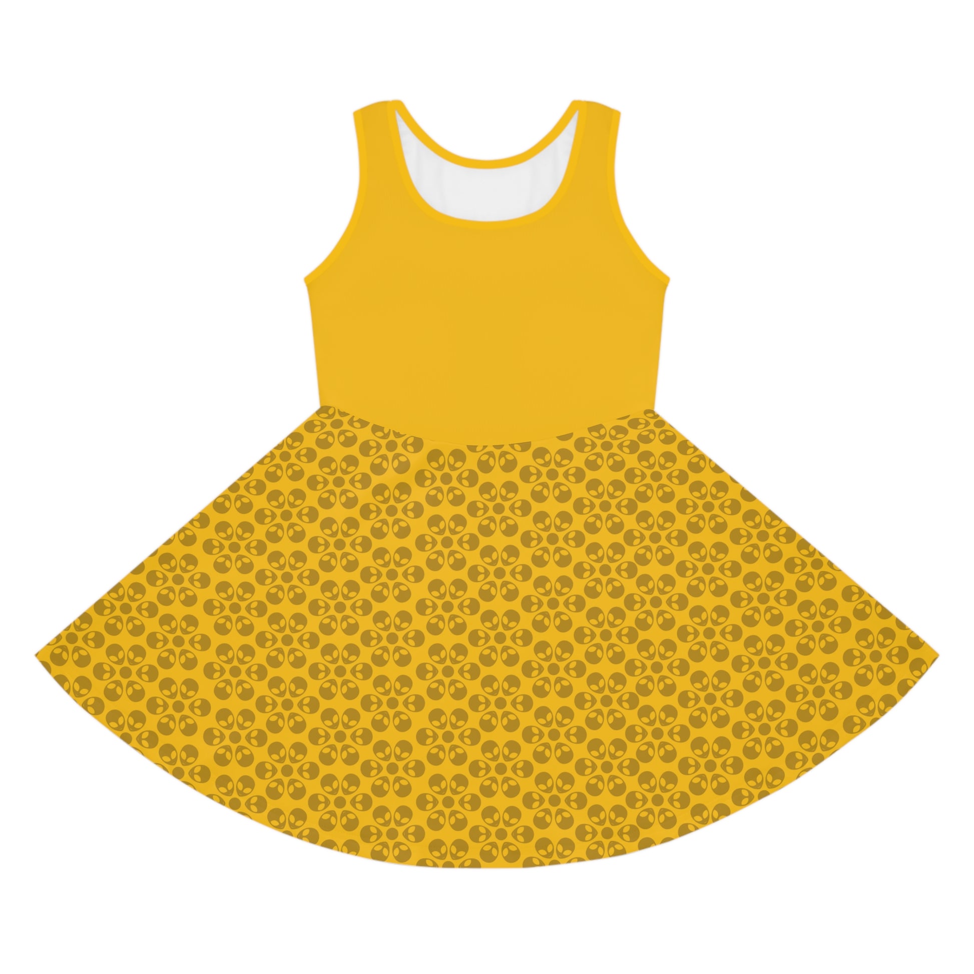 Girls Floral Sleeveless Sundress Cute Summer Dress Kids Fashion Birthday Outfit Playful Floral Pattern Spring Dress Alien Flowers Yellow