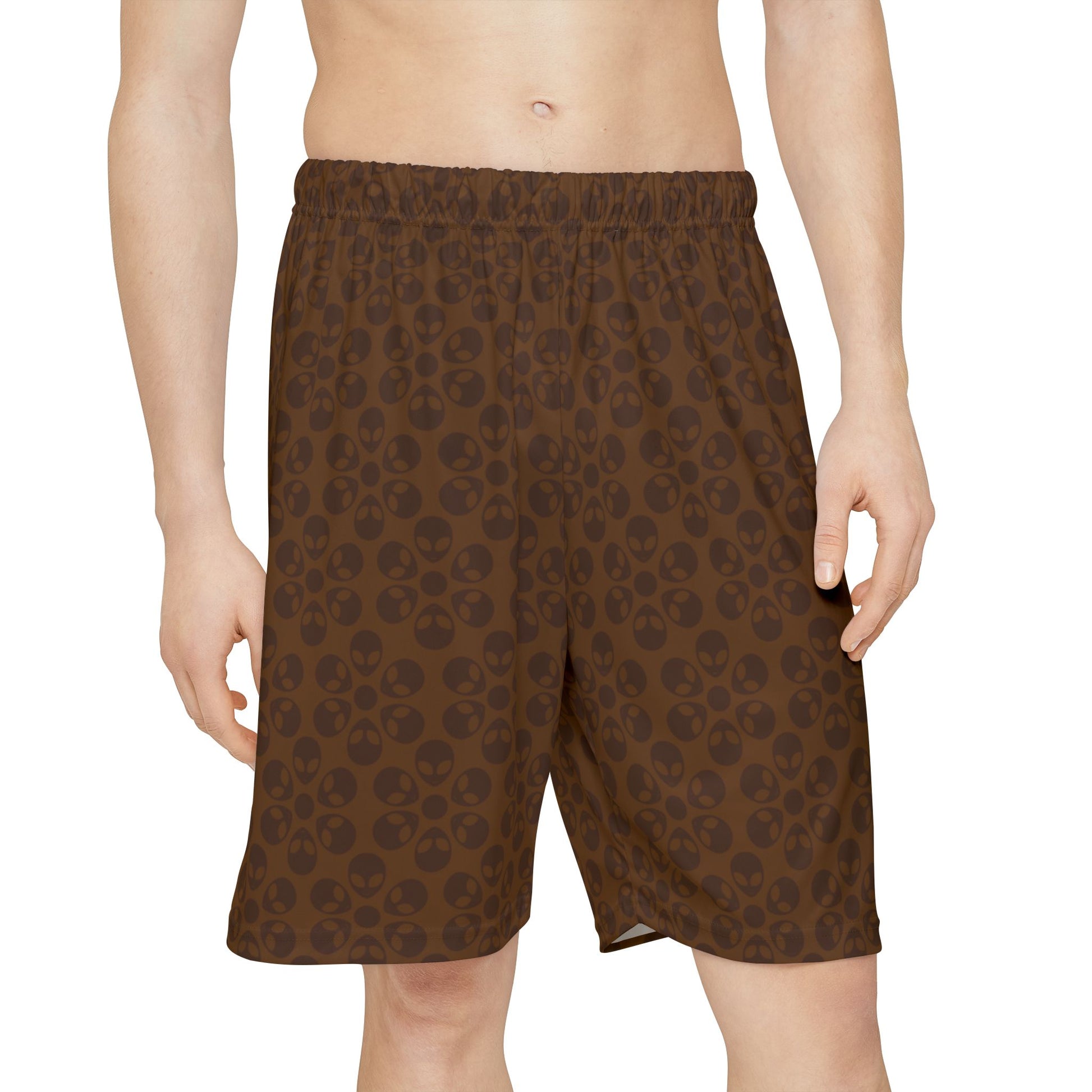 Men’s Skull Pattern Sports Shorts Casual Athletic Wear Summer Beach Shorts Workout Gear Fitness Shorts Gift for Athletes Alien Flowers Brown