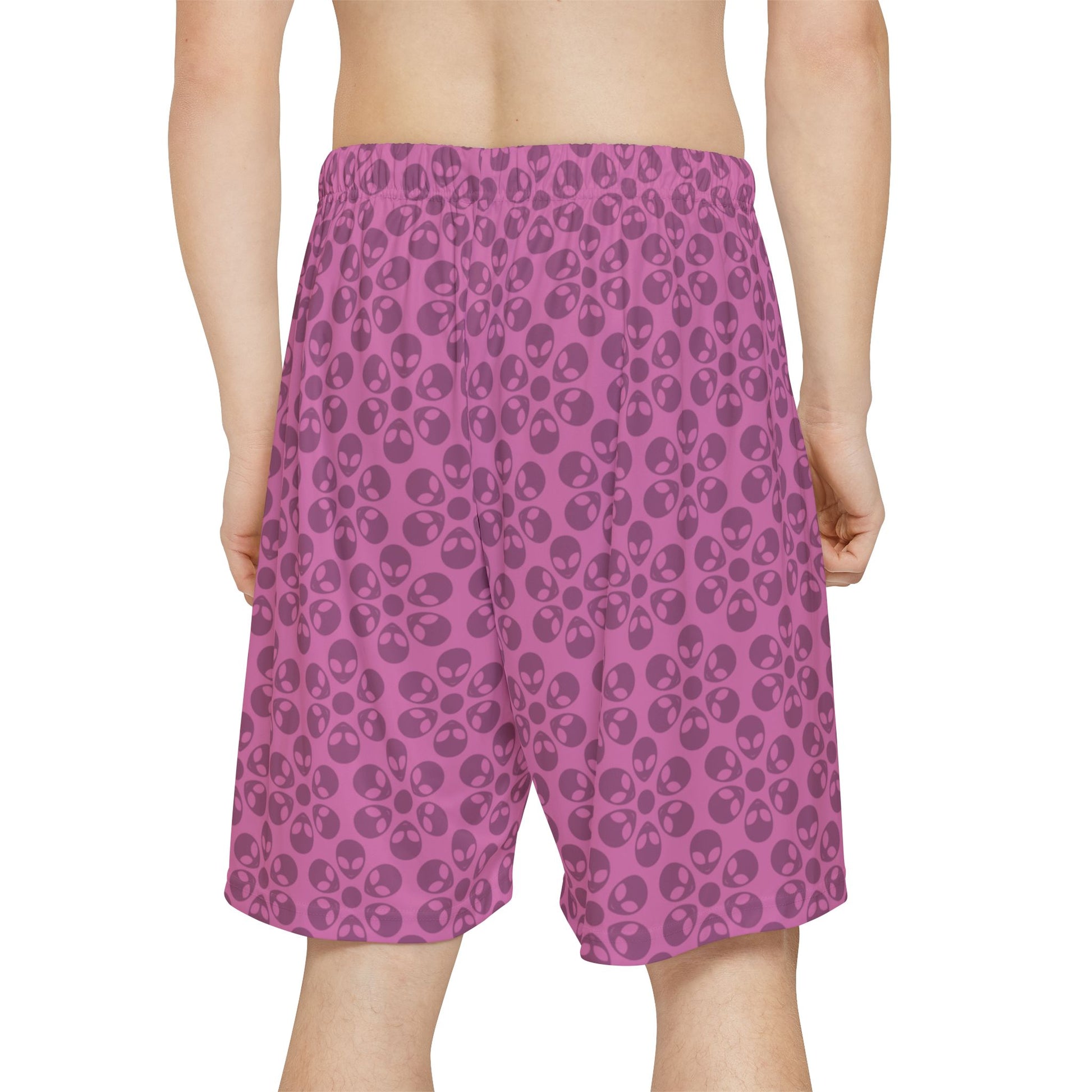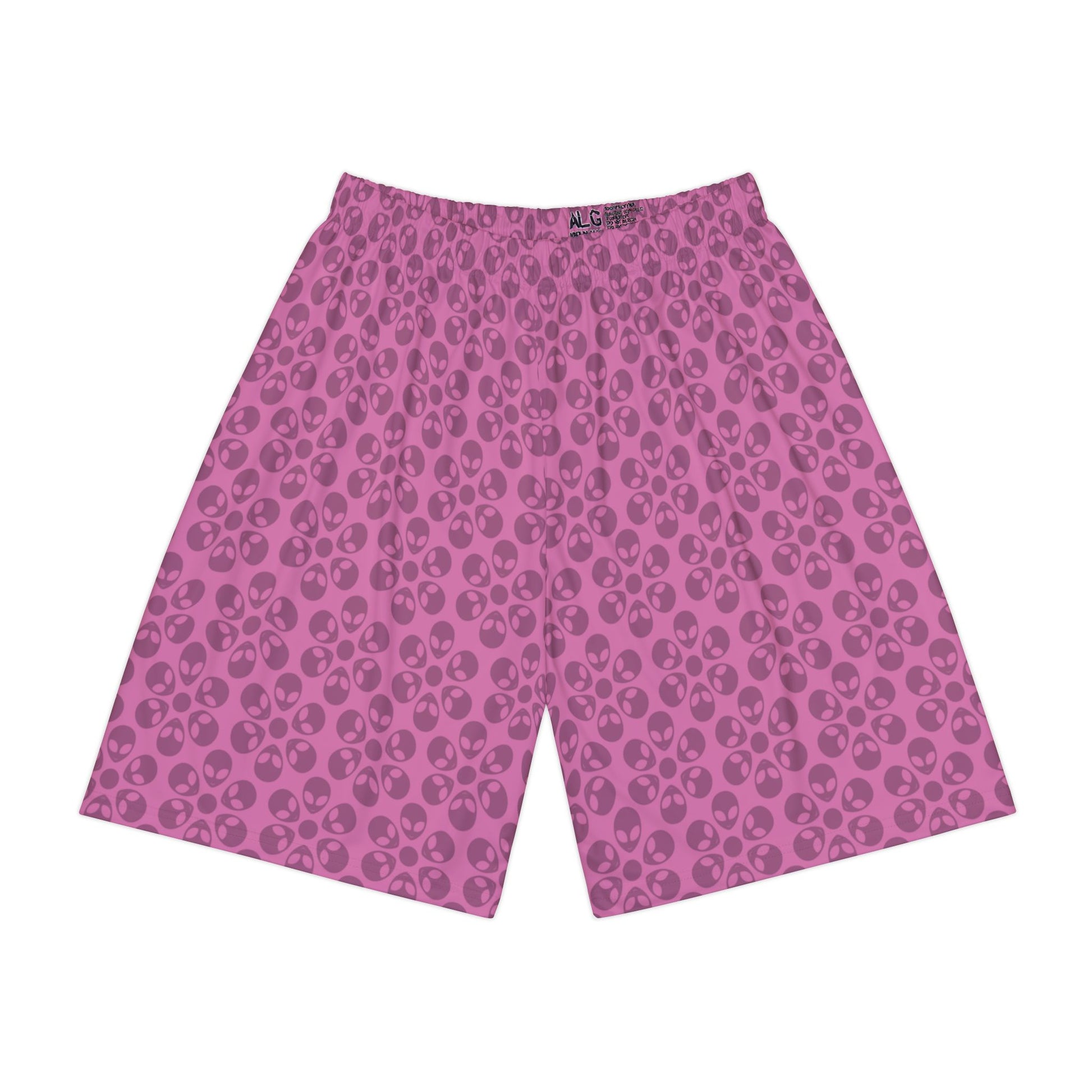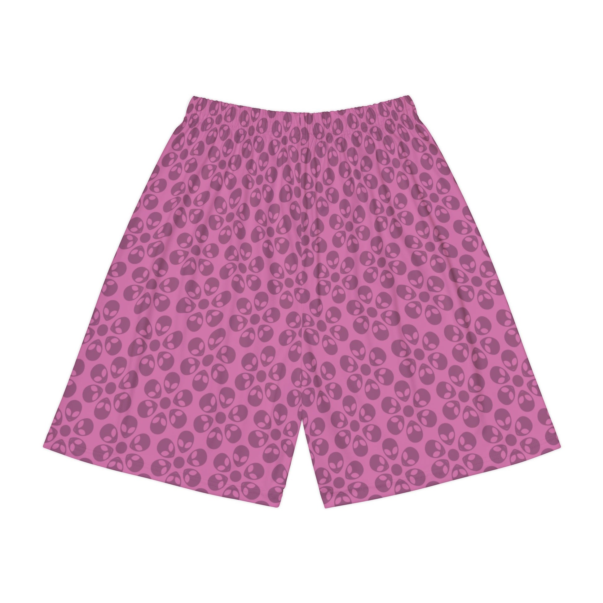 Men’s Skull Pattern Sports Shorts Casual Athletic Wear Summer Beach Shorts Workout Gear Fitness Shorts Gift for Athletes Alien Flowers Light Pink