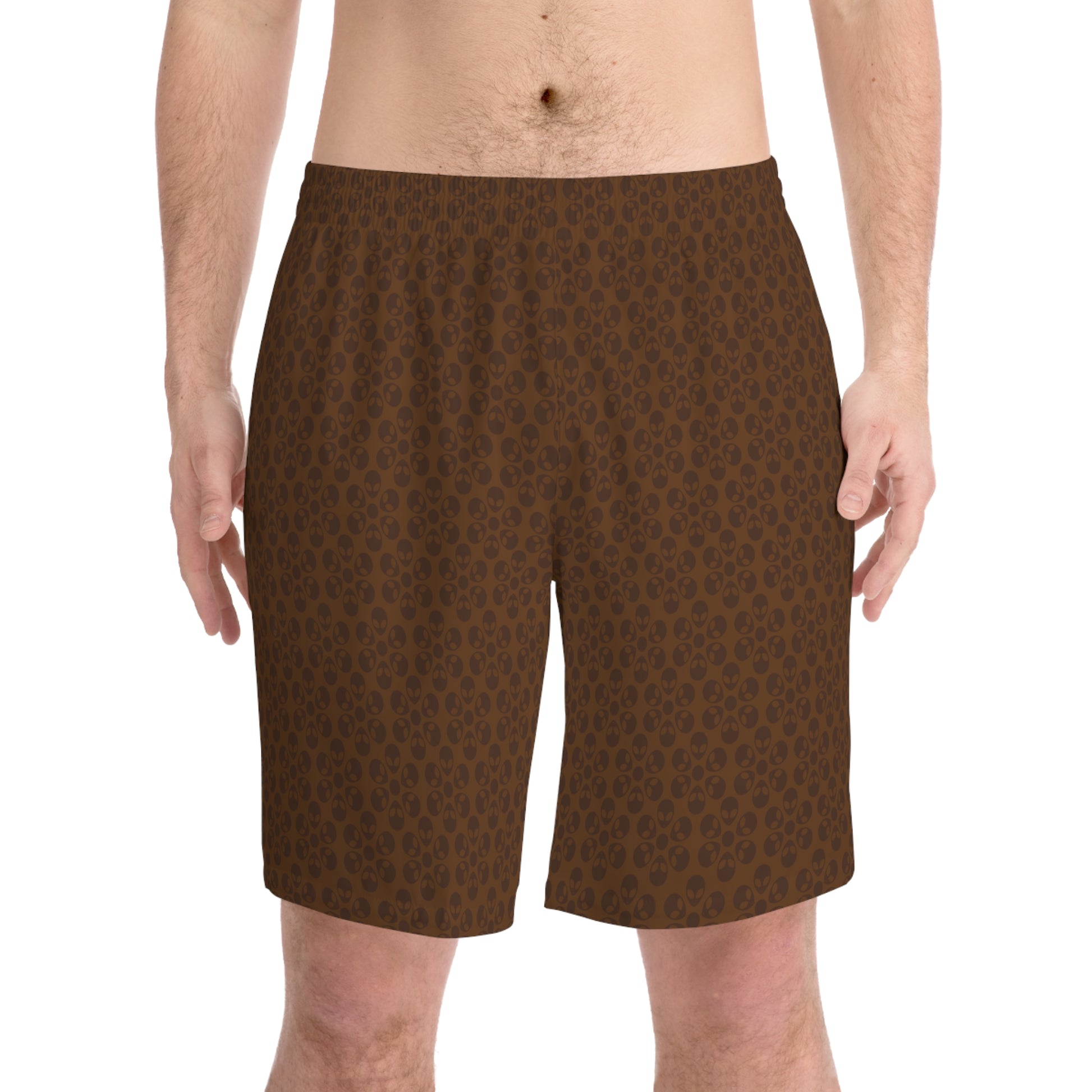 Mens Elastic Beach Shorts Alien Flowers Brown