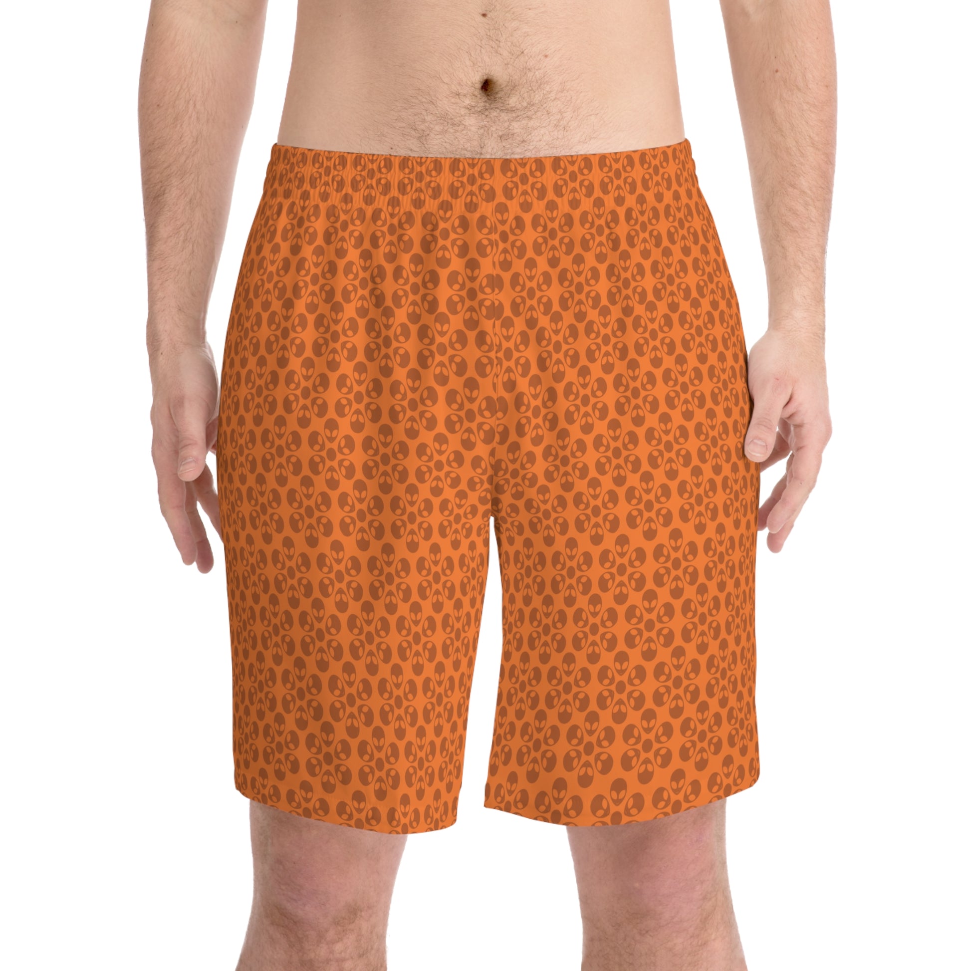 Mens Elastic Beach Shorts Alien Flowers Crusta