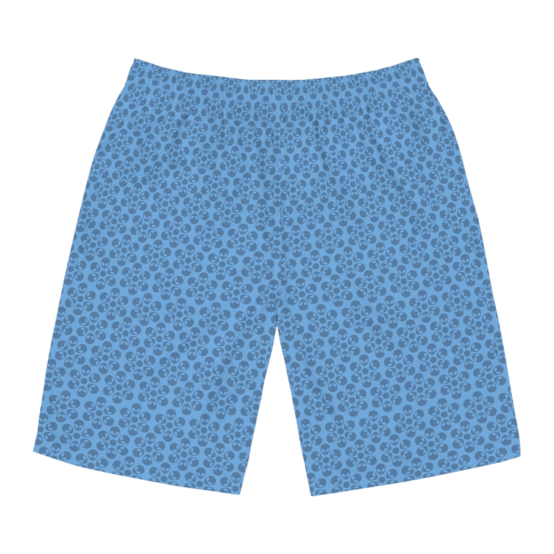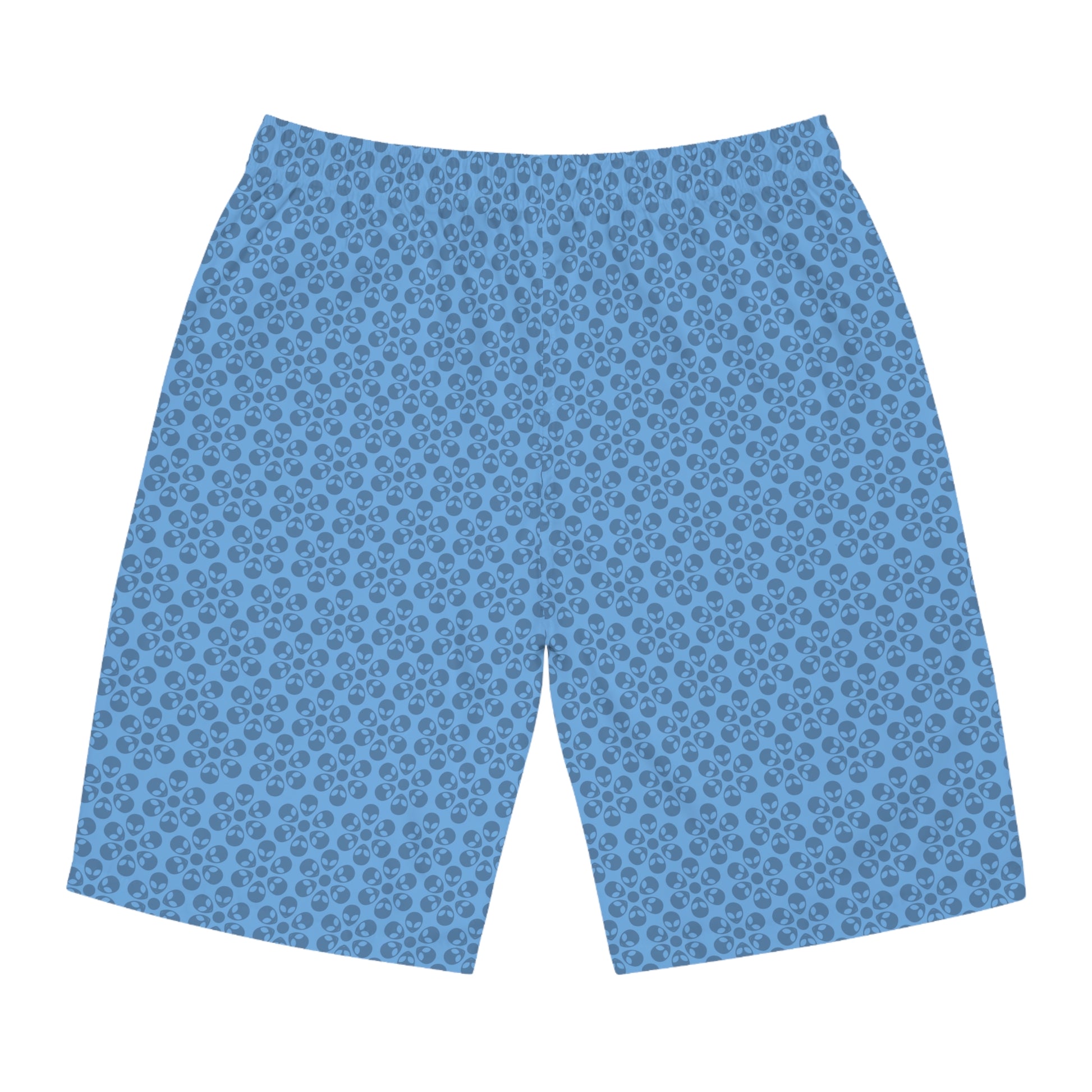 Mens Floral Print Board Shorts Summer Swimwear Beach Attire Vacation Ready Casual Everyday Shorts Alien Flowers Light Blue