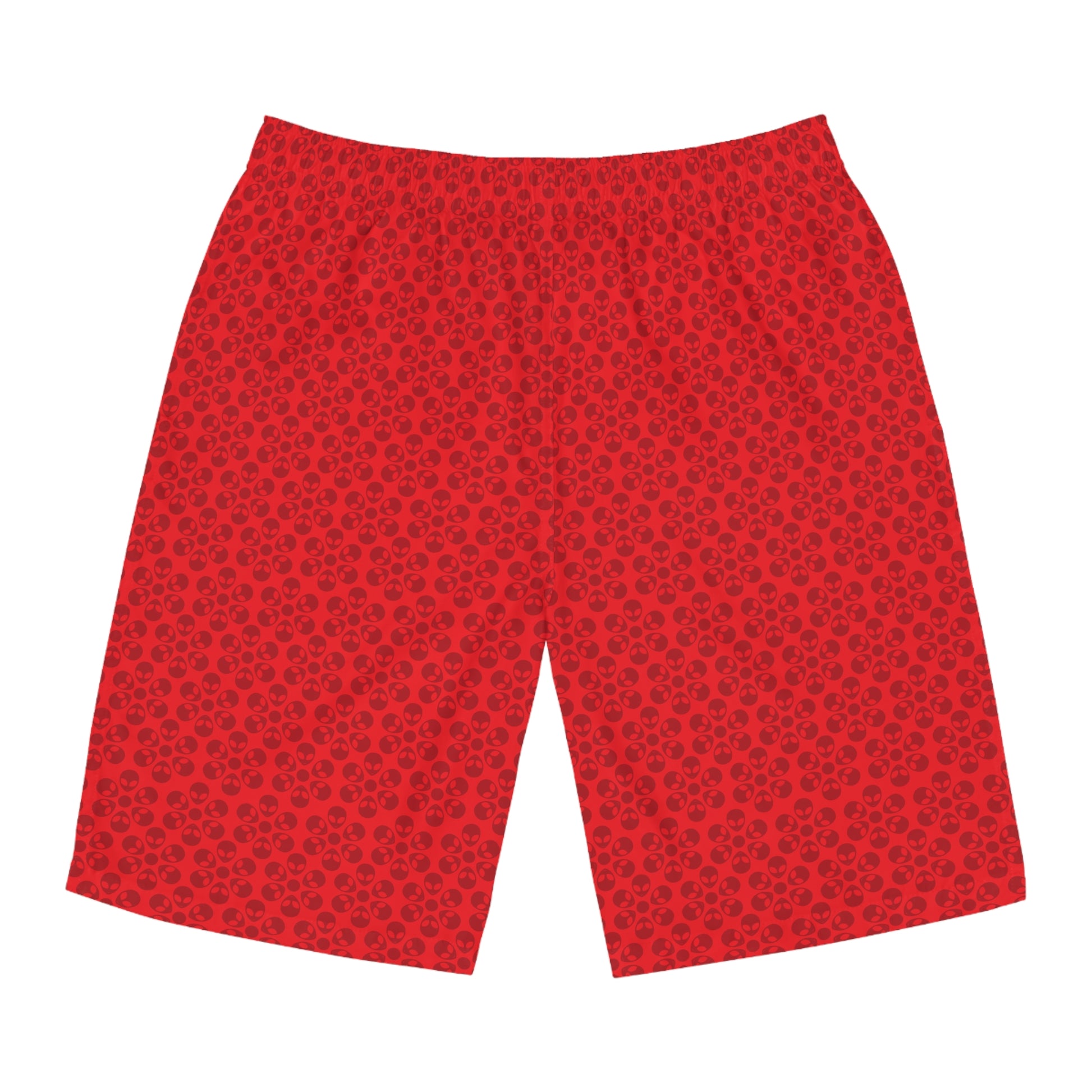Mens Floral Print Board Shorts Summer Swimwear Beach Attire Vacation Ready Casual Everyday Shorts Alien Flowers Red
