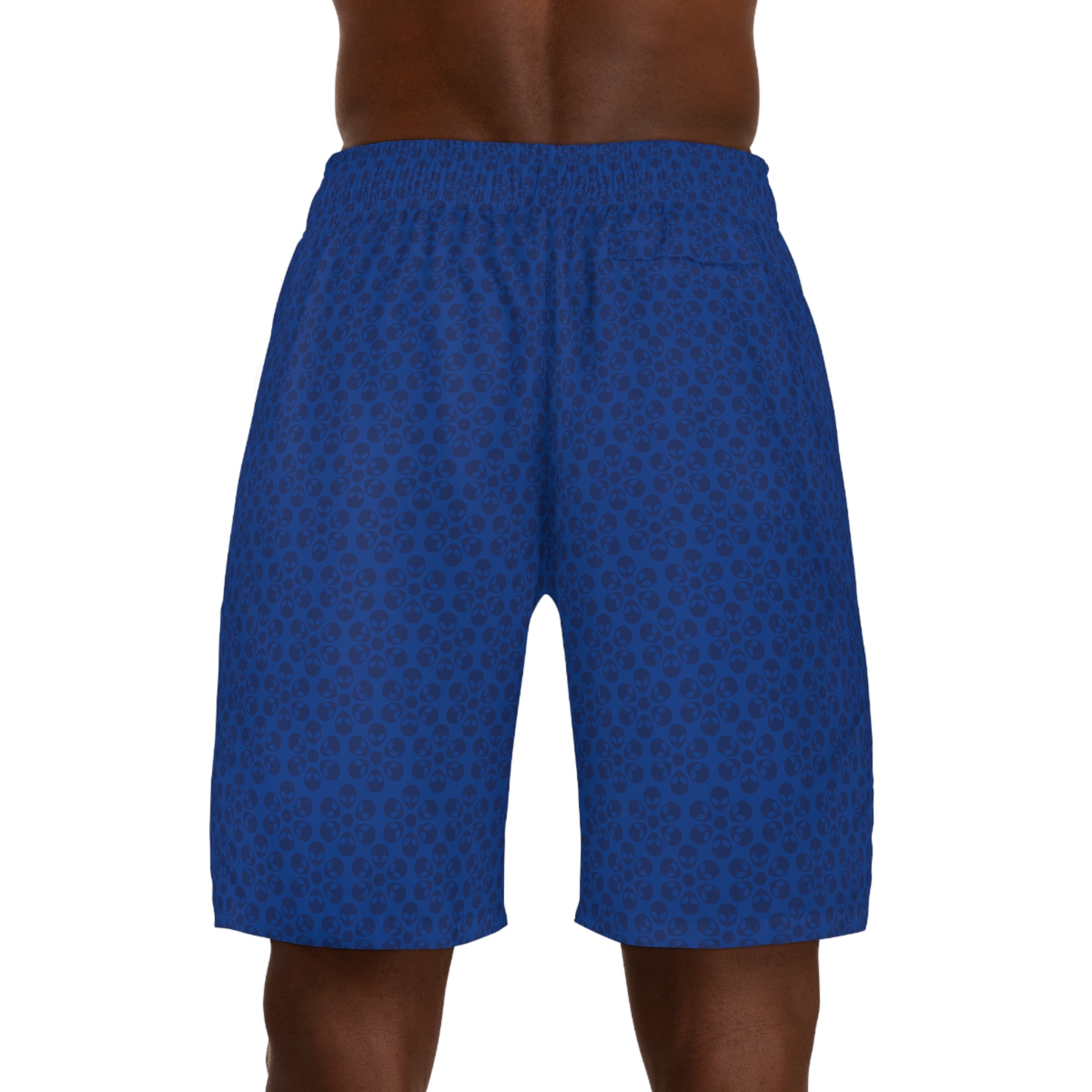 Mens Jogger Shorts Alien Flowers Dark Blue