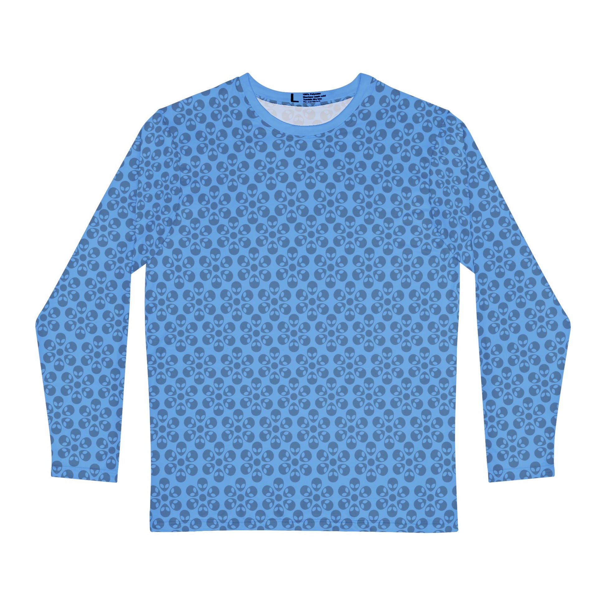 Mens Long Sleeve Floral Pattern Shirt Trendy Casual Wear Gift for Him Spring Fashion Everyday Comfort Unique Style Alien Flowers Light Blue