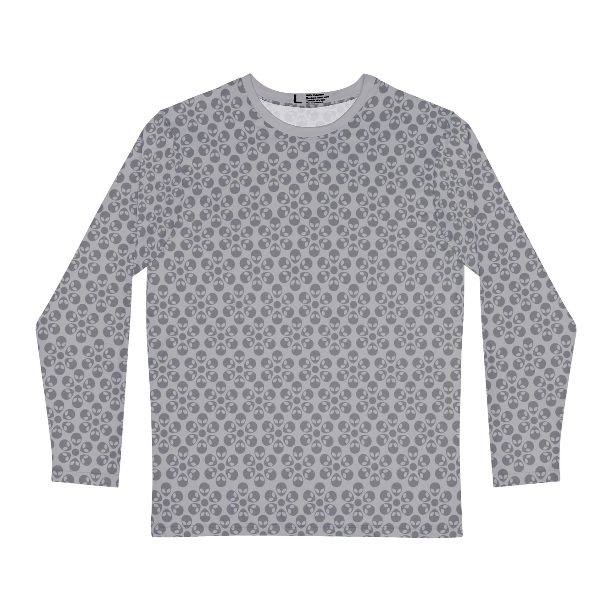 Mens Long Sleeve Floral Pattern Shirt Trendy Casual Wear Gift for Him Spring Fashion Everyday Comfort Unique Style Alien Flowers Light Grey