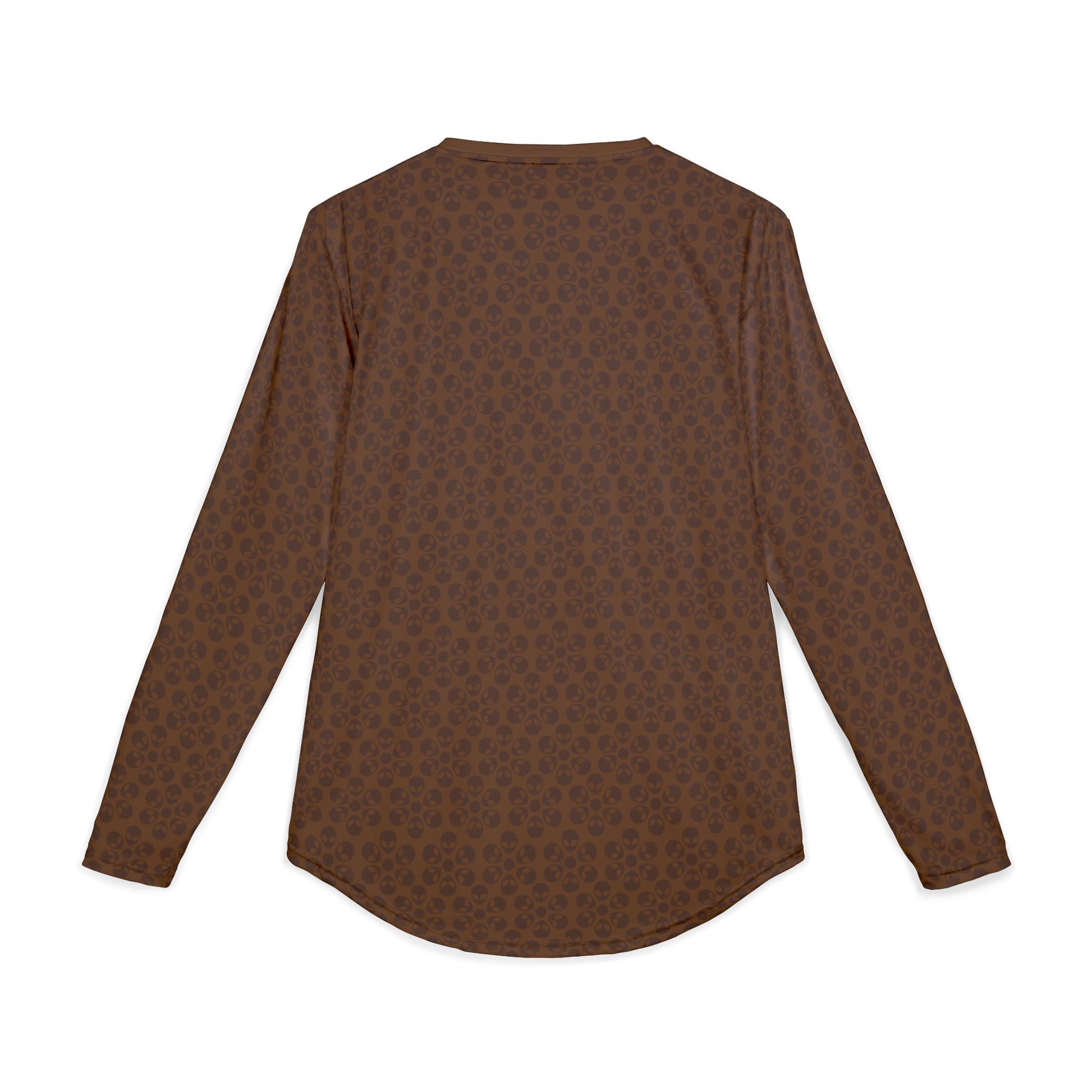 Mens UV Protection Long Sleeve Shirt Alien Flowers Brown