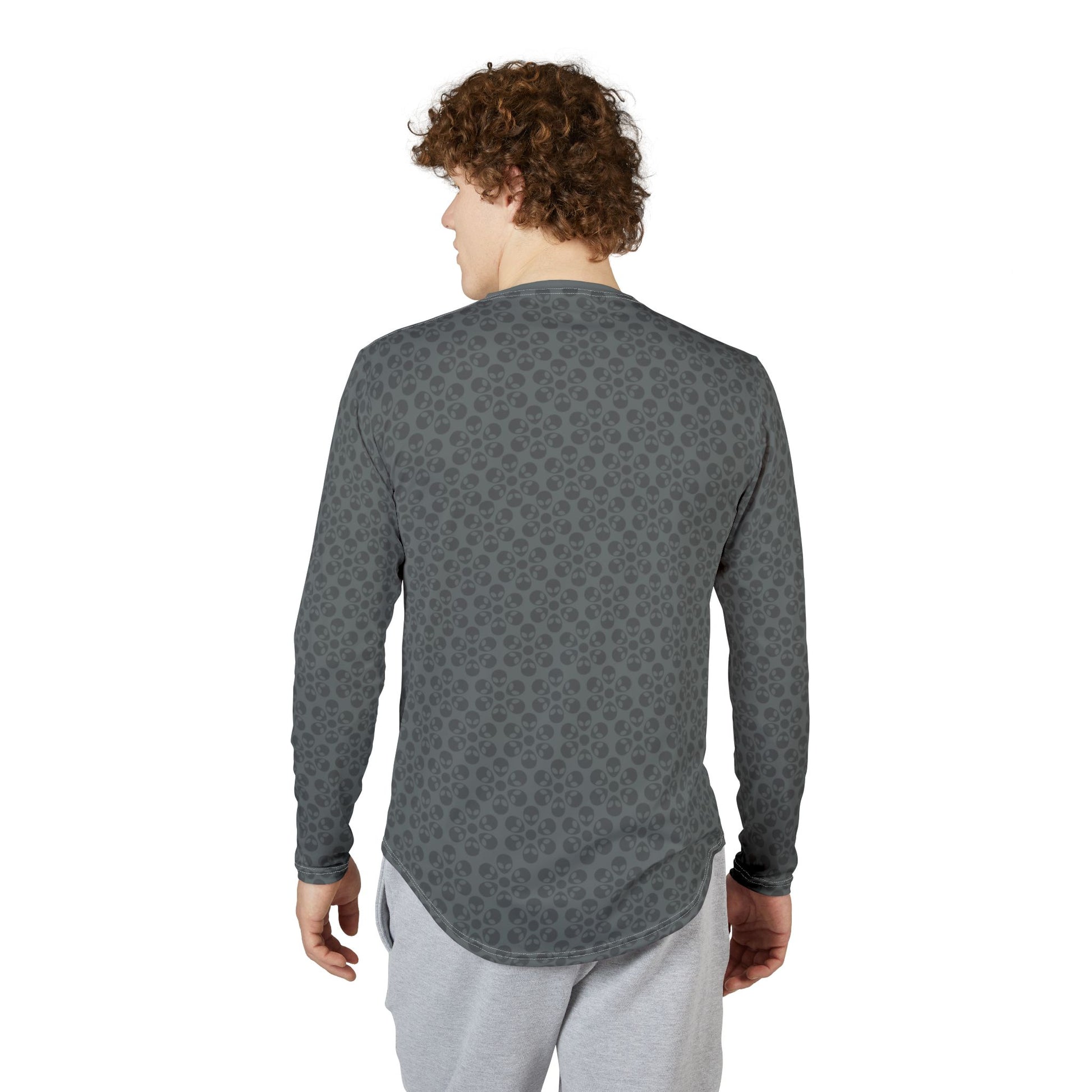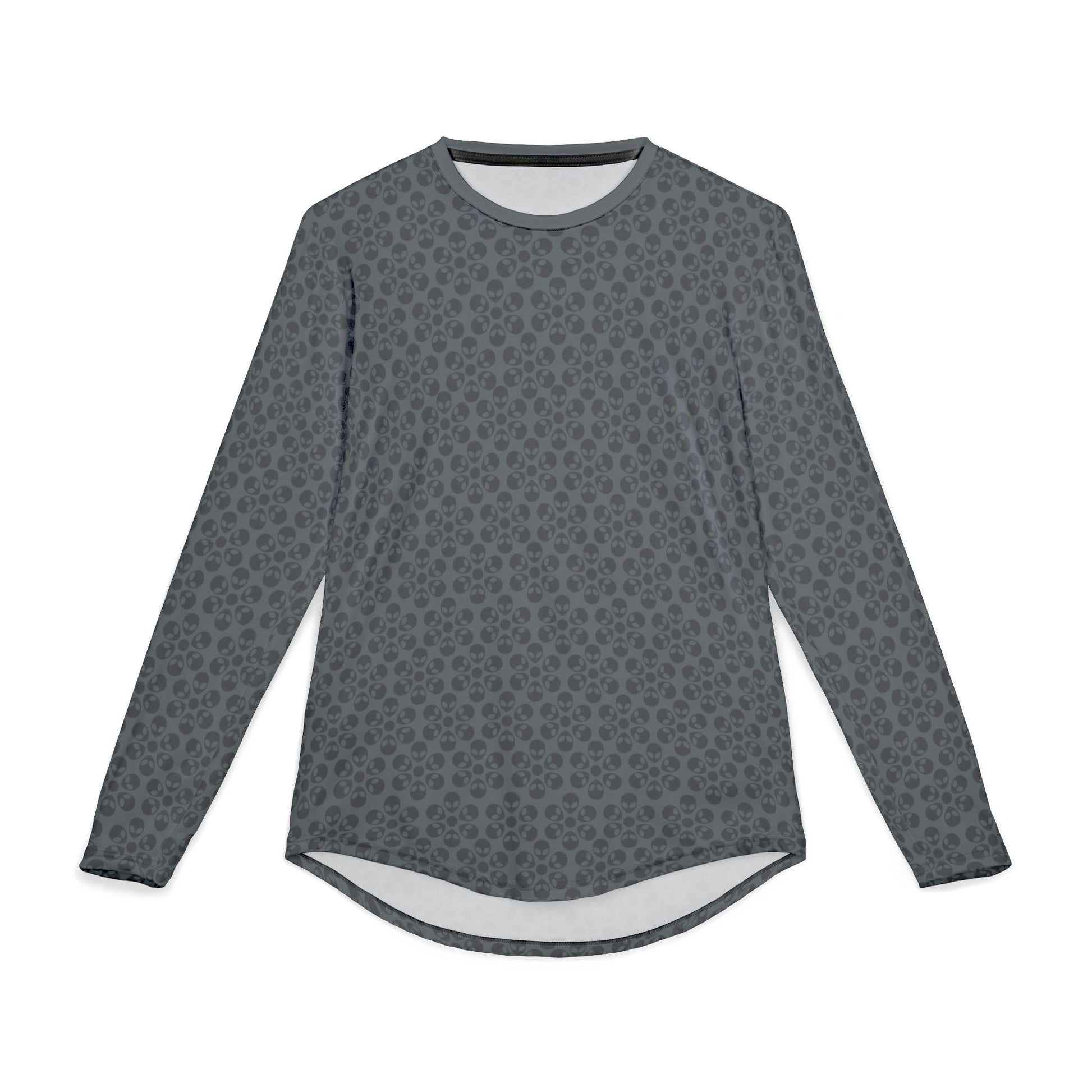 Mens UV Protection Long Sleeve Shirt Alien Flowers Dark Grey