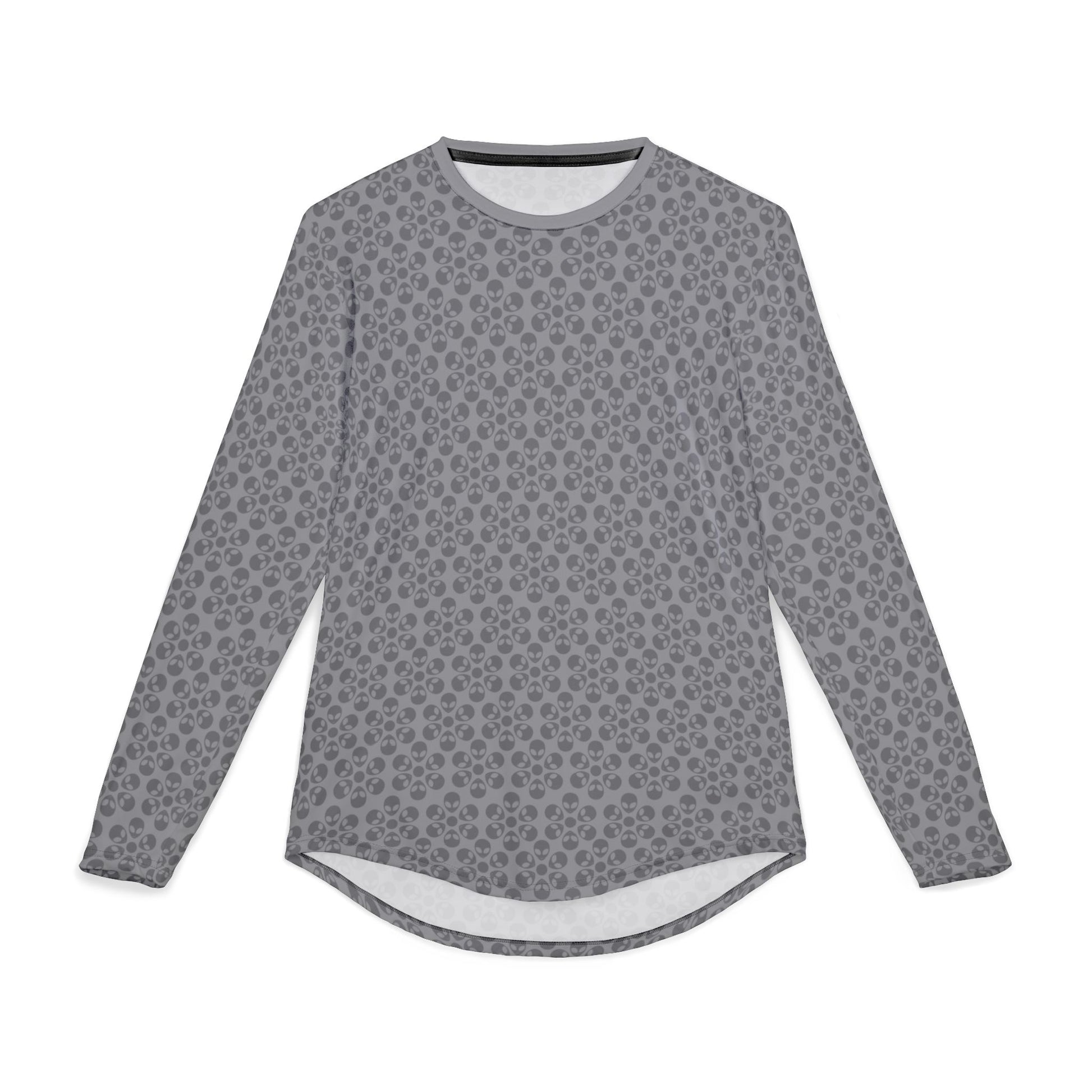 Mens UV Protection Long Sleeve Shirt Alien Flowers Grey