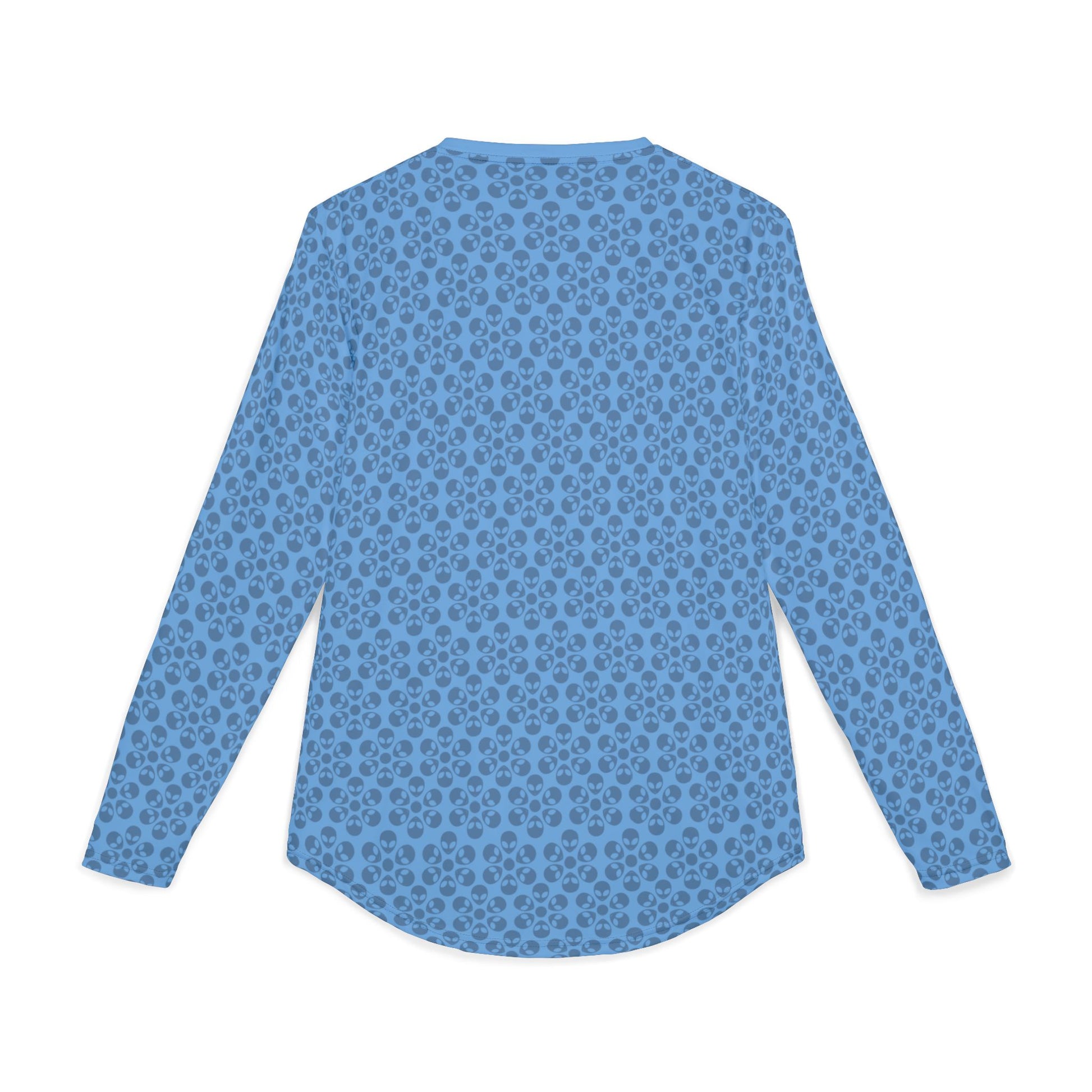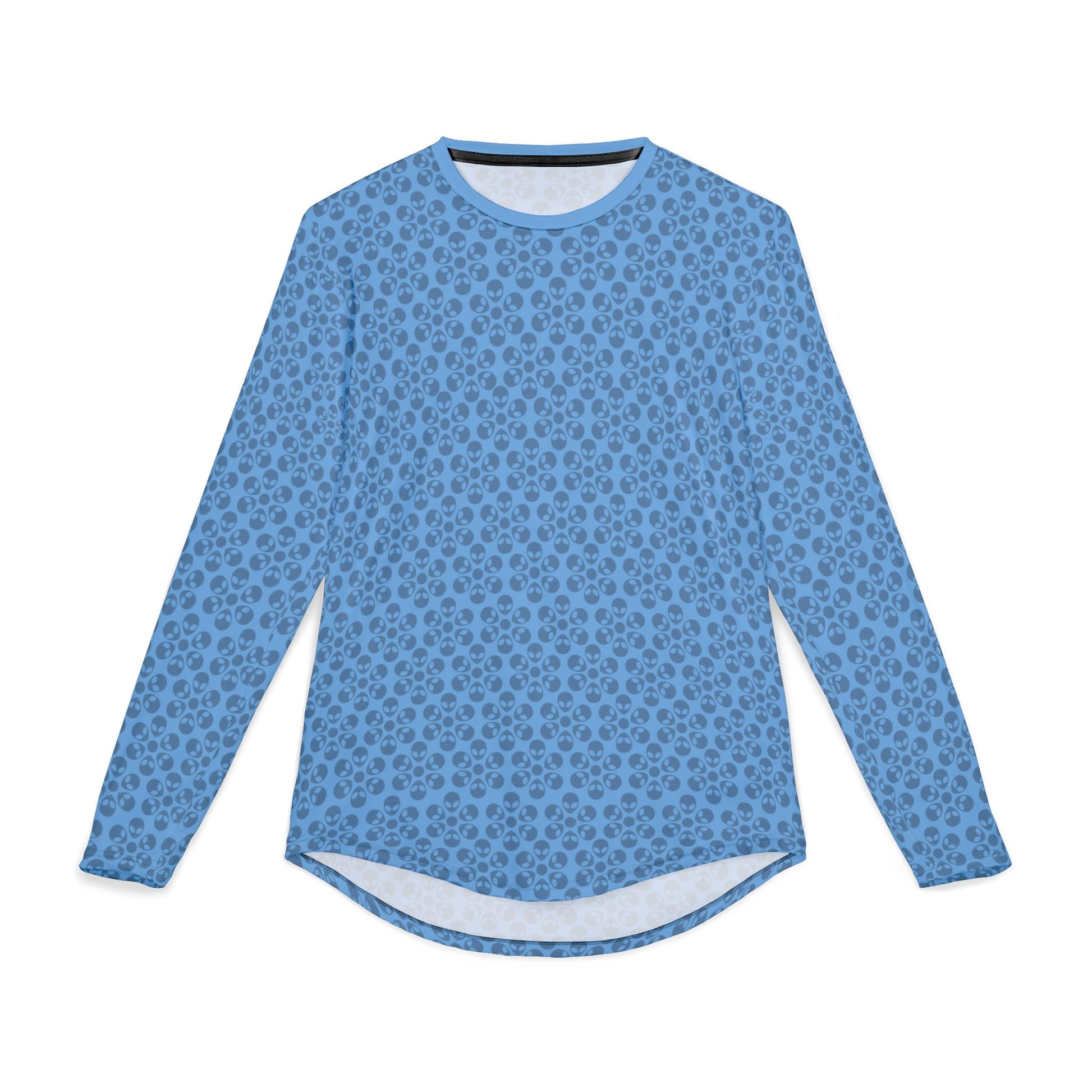 Mens UV Protection Long Sleeve Shirt Alien Flowers Light Blue
