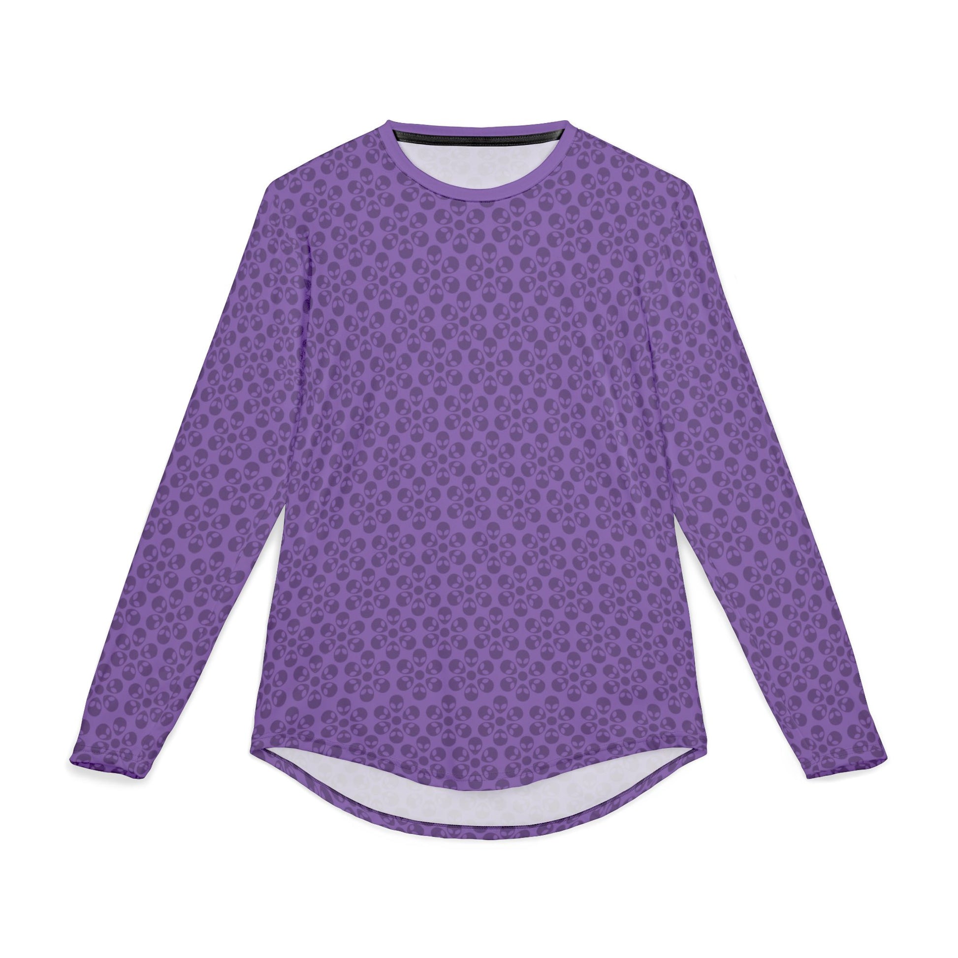 Mens UV Protection Long Sleeve Shirt Alien Flowers Light Purple