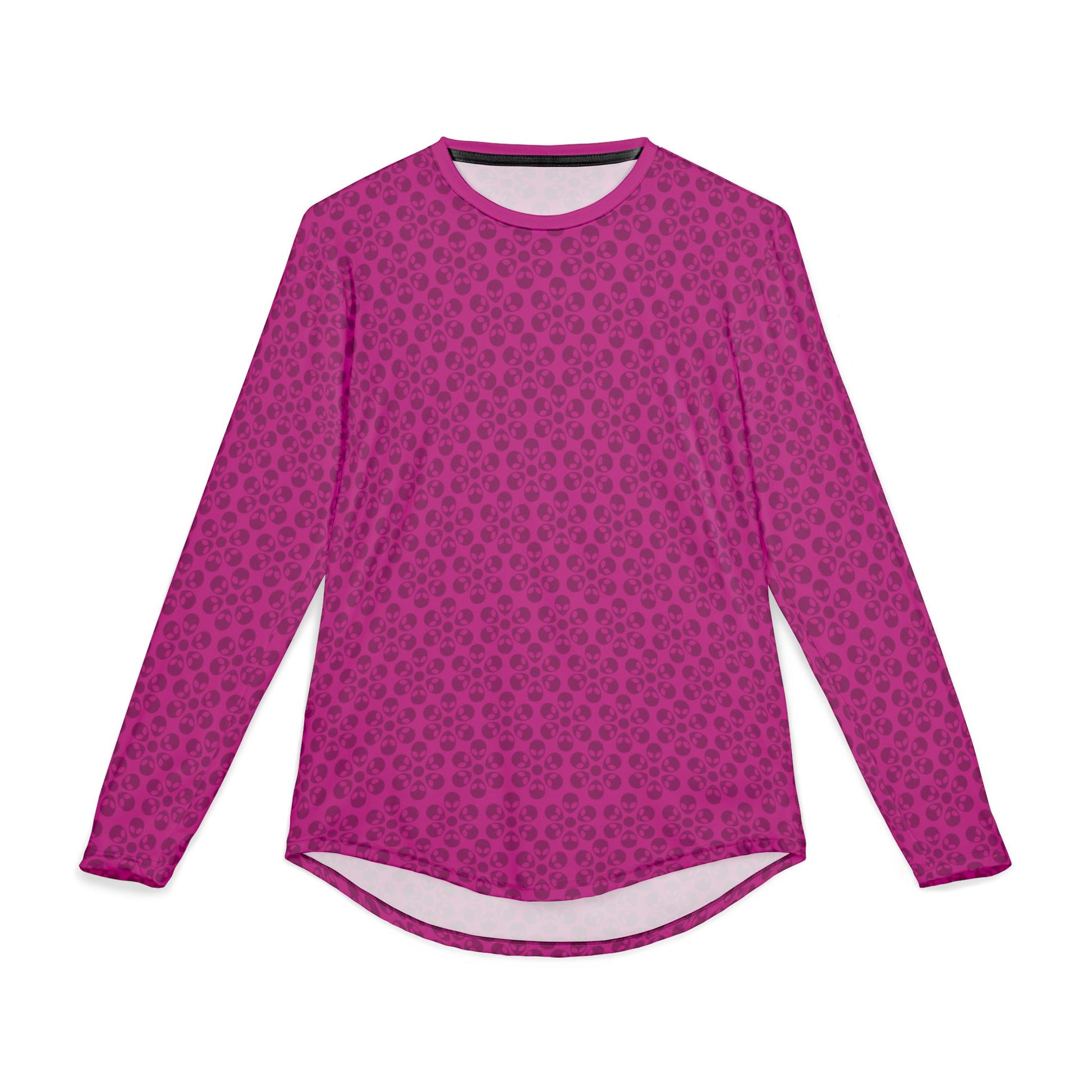 Mens UV Protection Long Sleeve Shirt Alien Flowers Pink