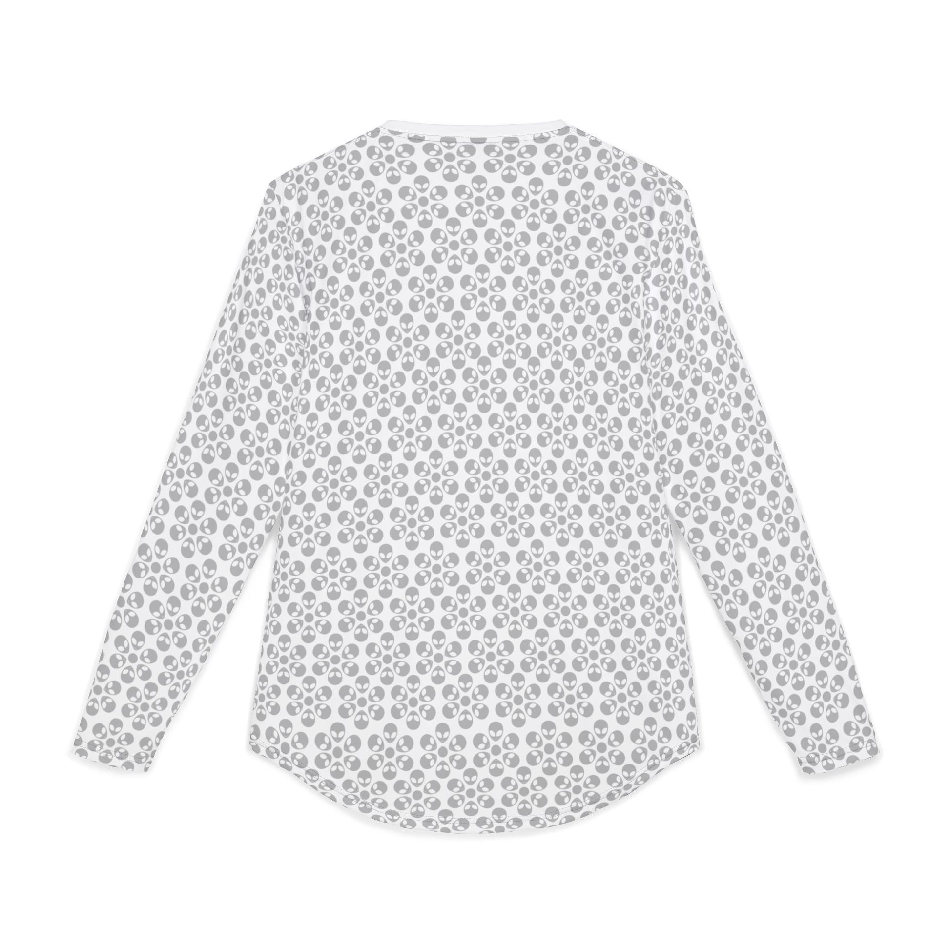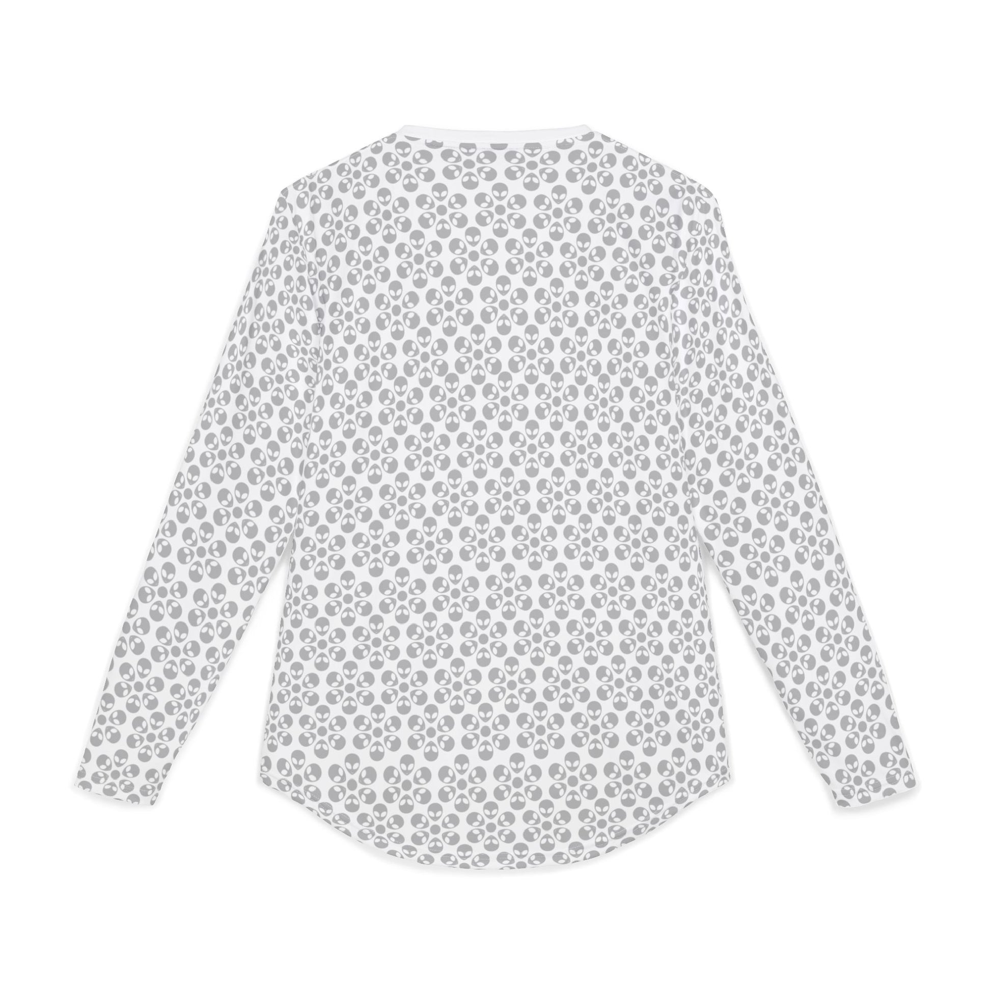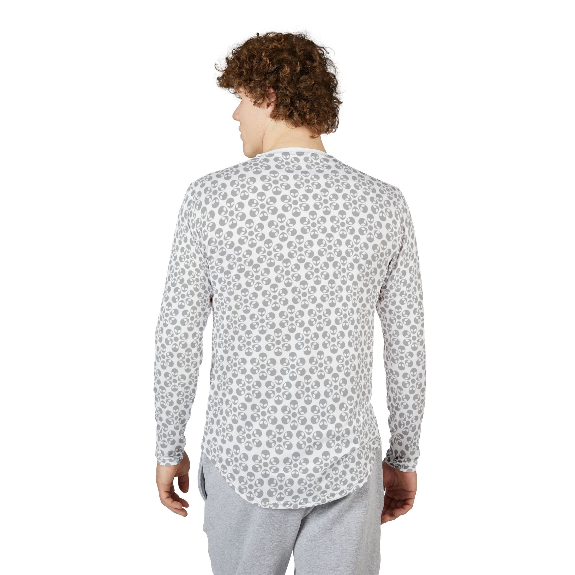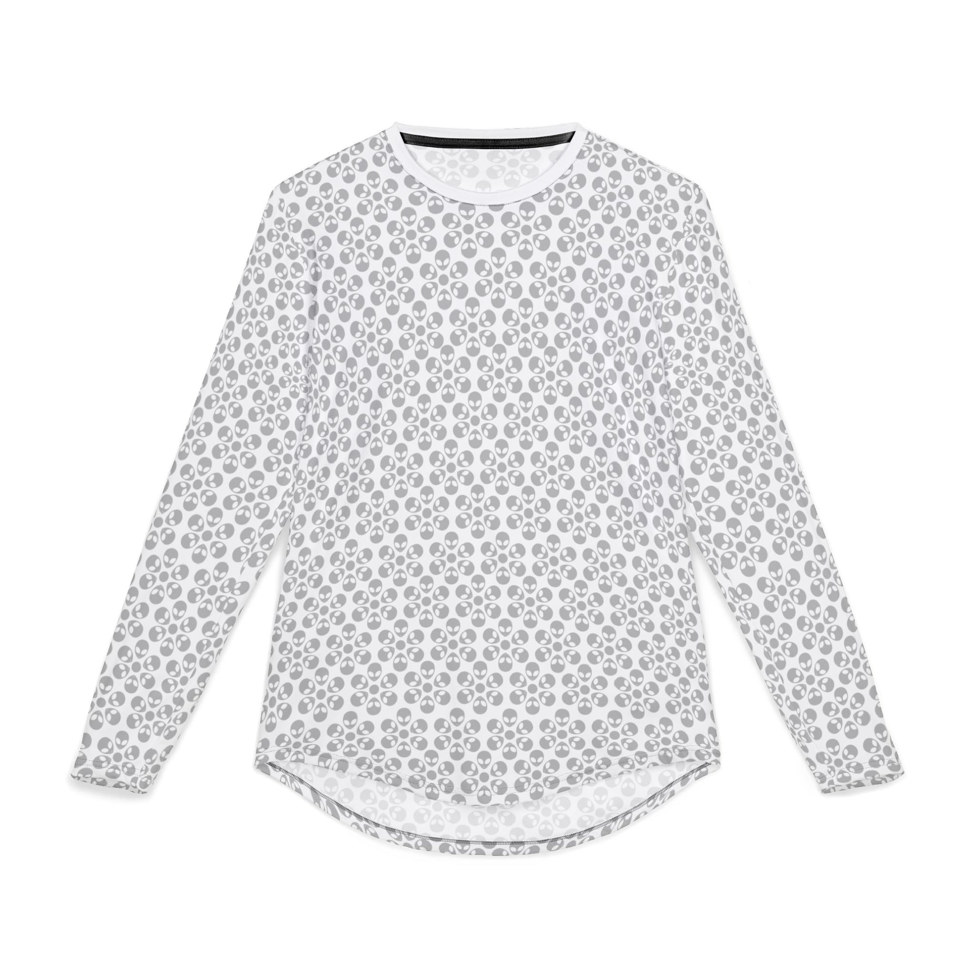 Mens UV Protection Long Sleeve Shirt Alien Flowers White