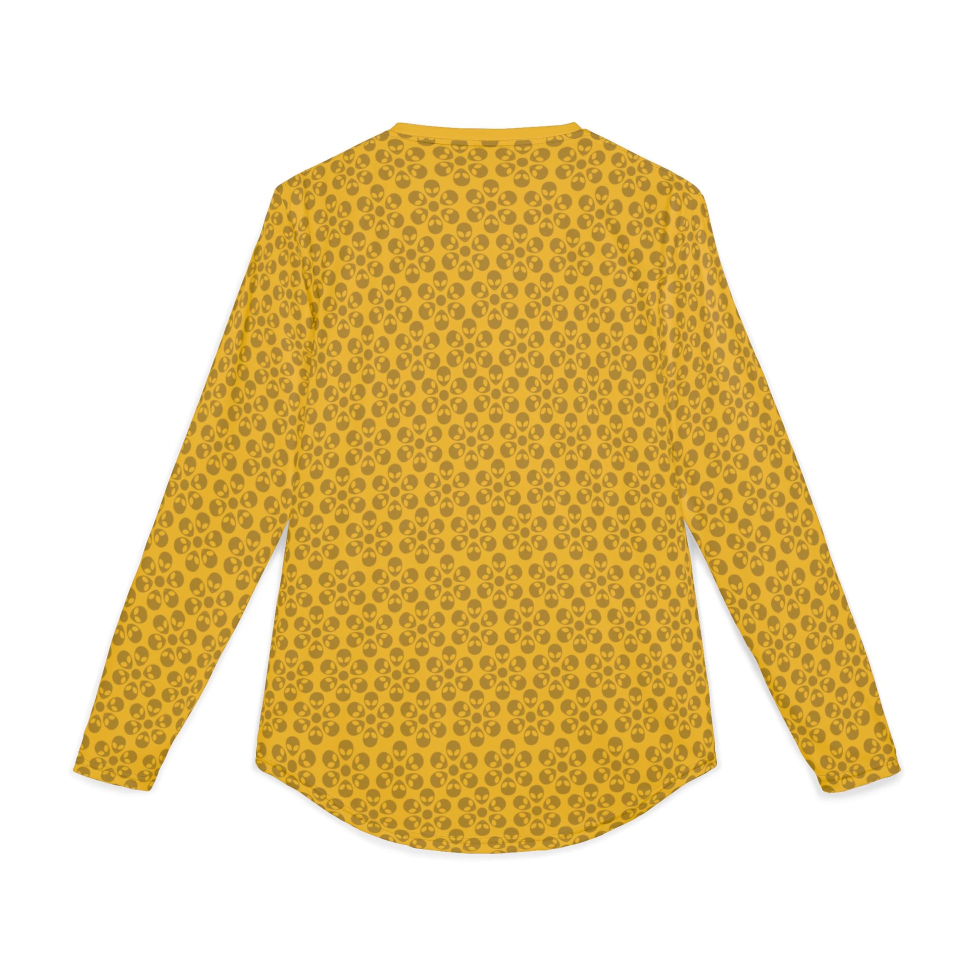 Mens UV Protection Long Sleeve Shirt Alien Flowers Yellow