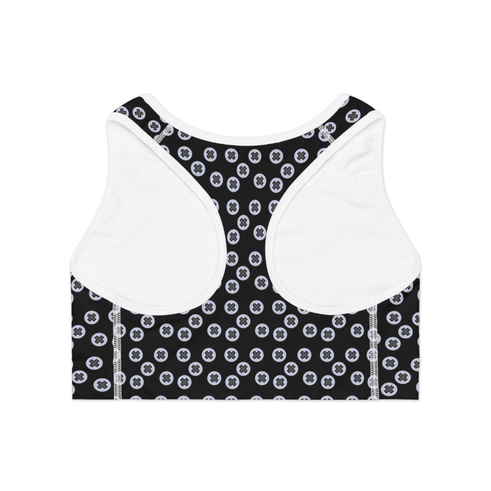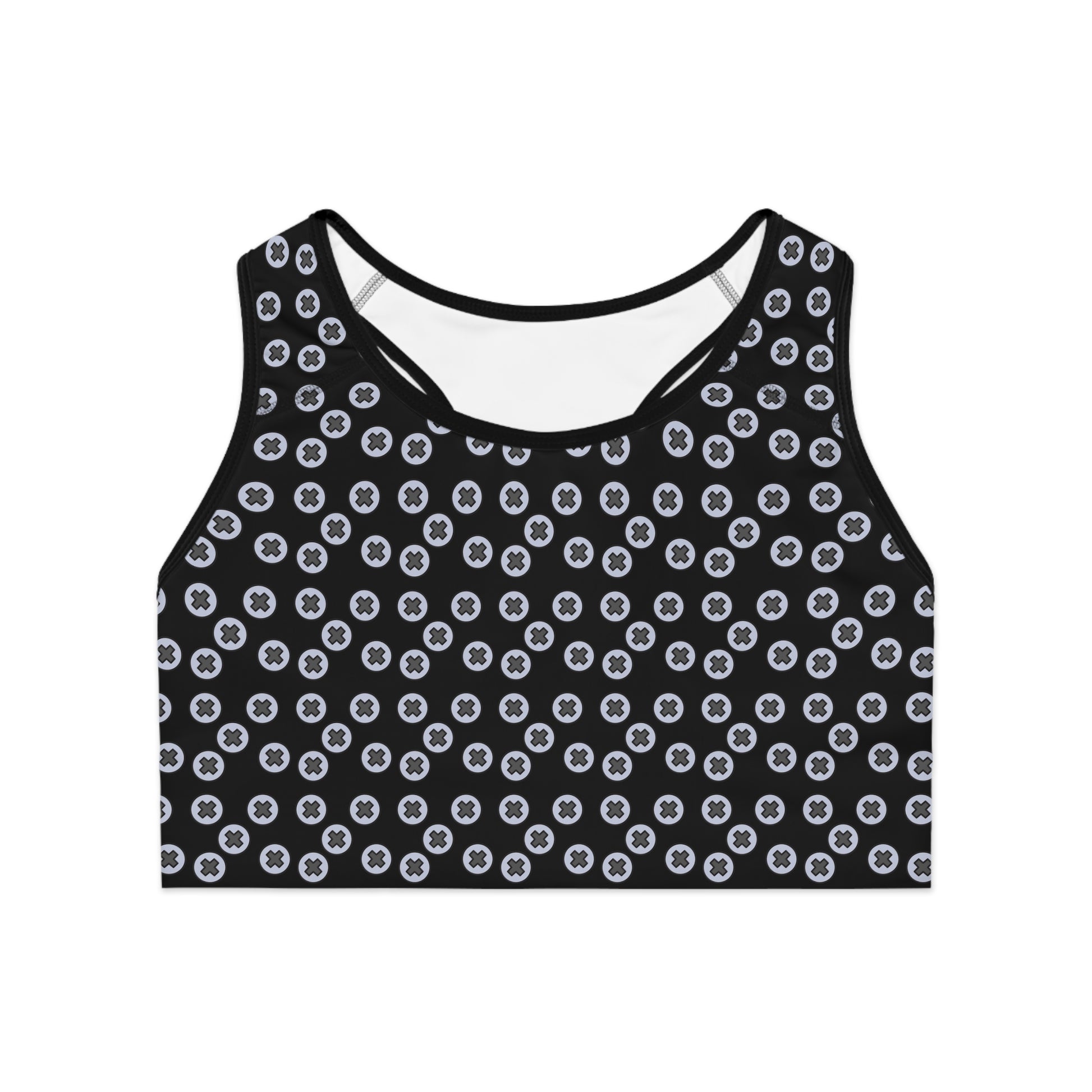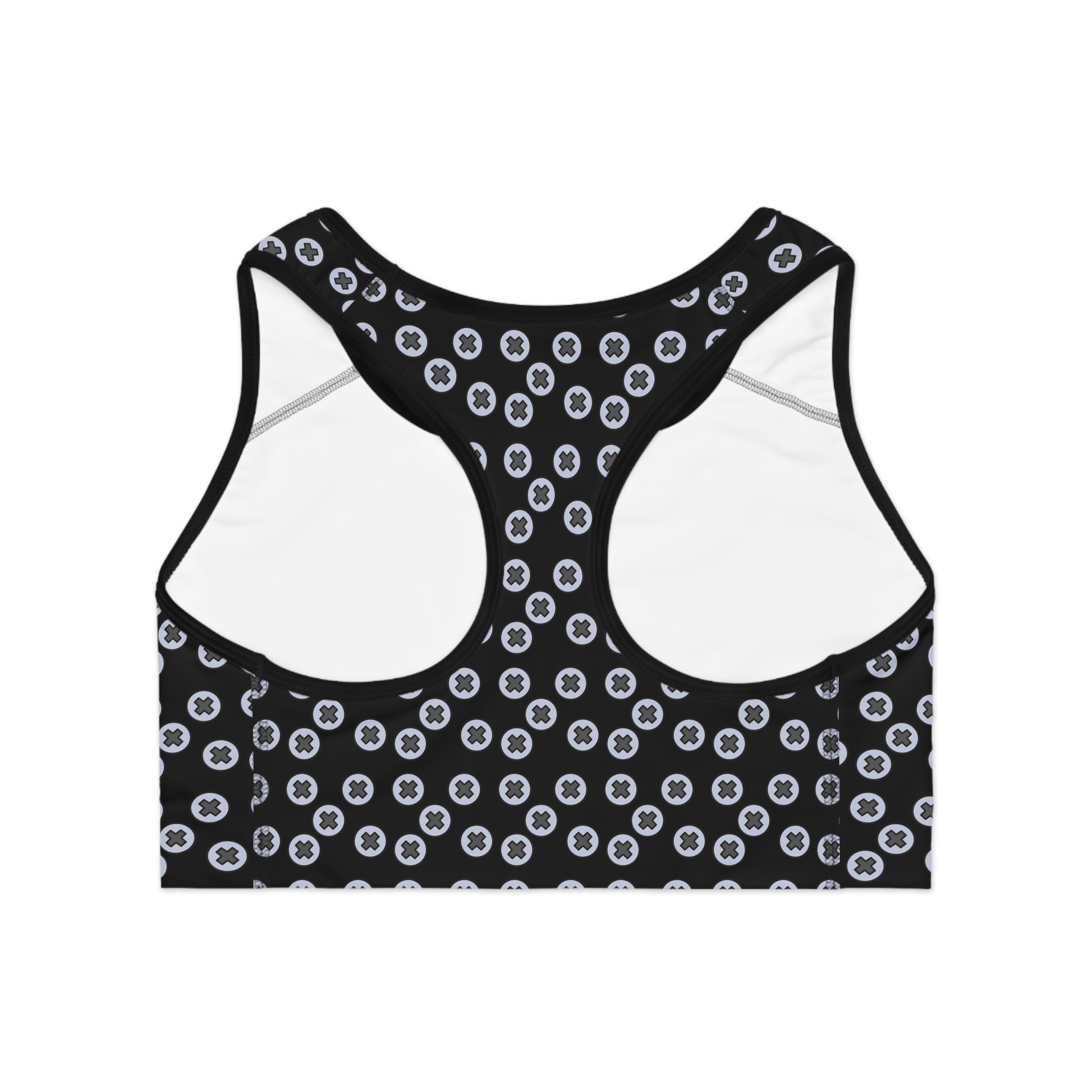 Patterned Sports Bra - Stylish Activewear for Fitness, Gym or Yoga- Screwed - Black