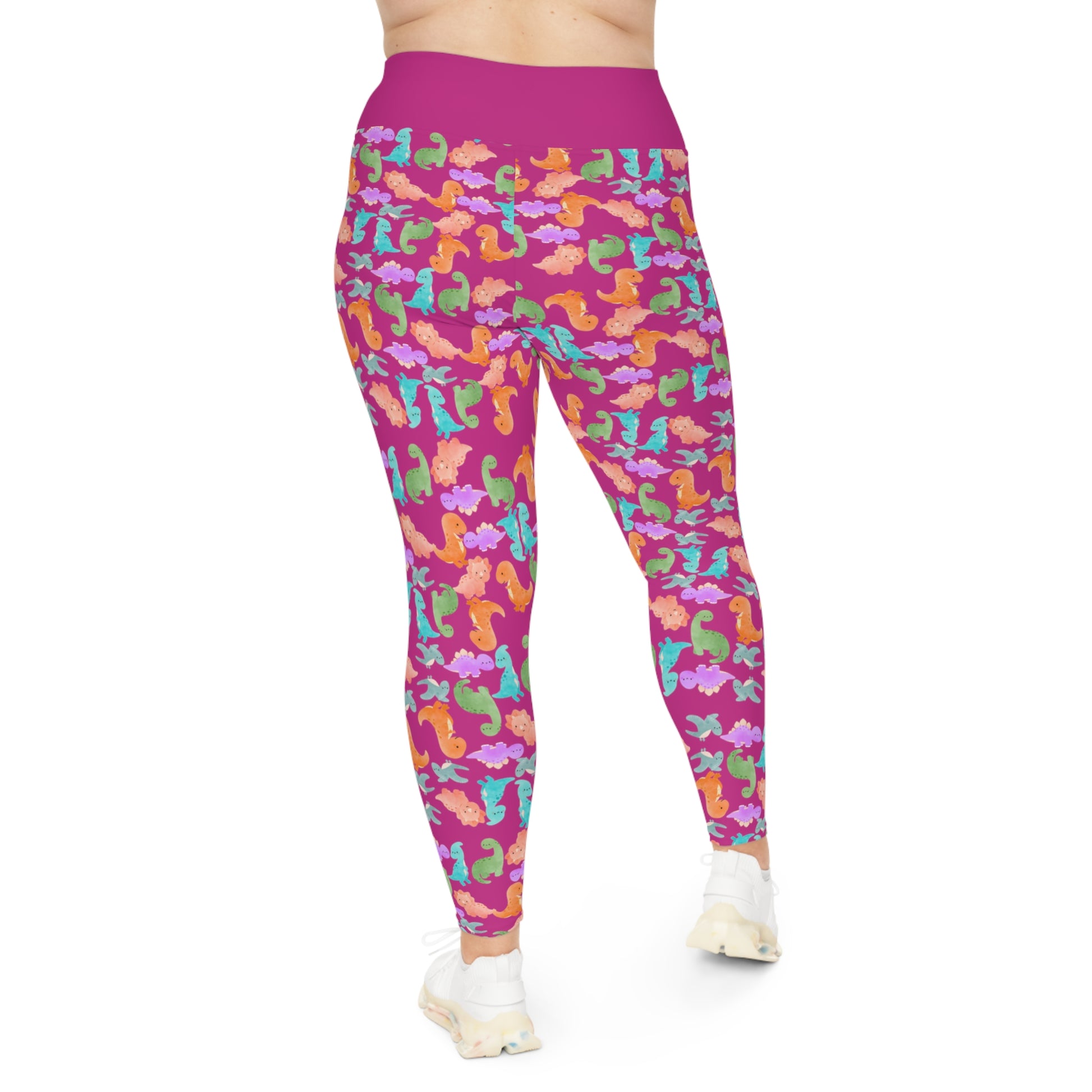 Plus Size Leggings Rainbow Dinos Pink