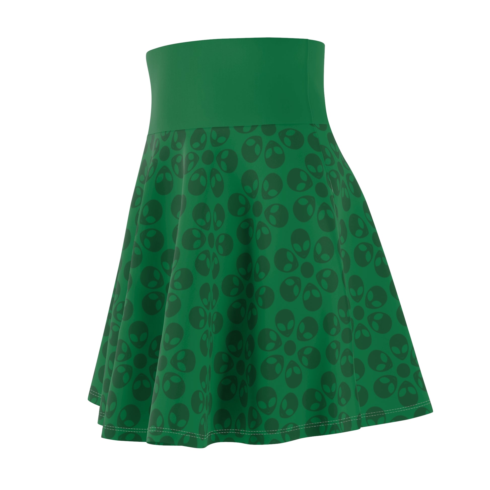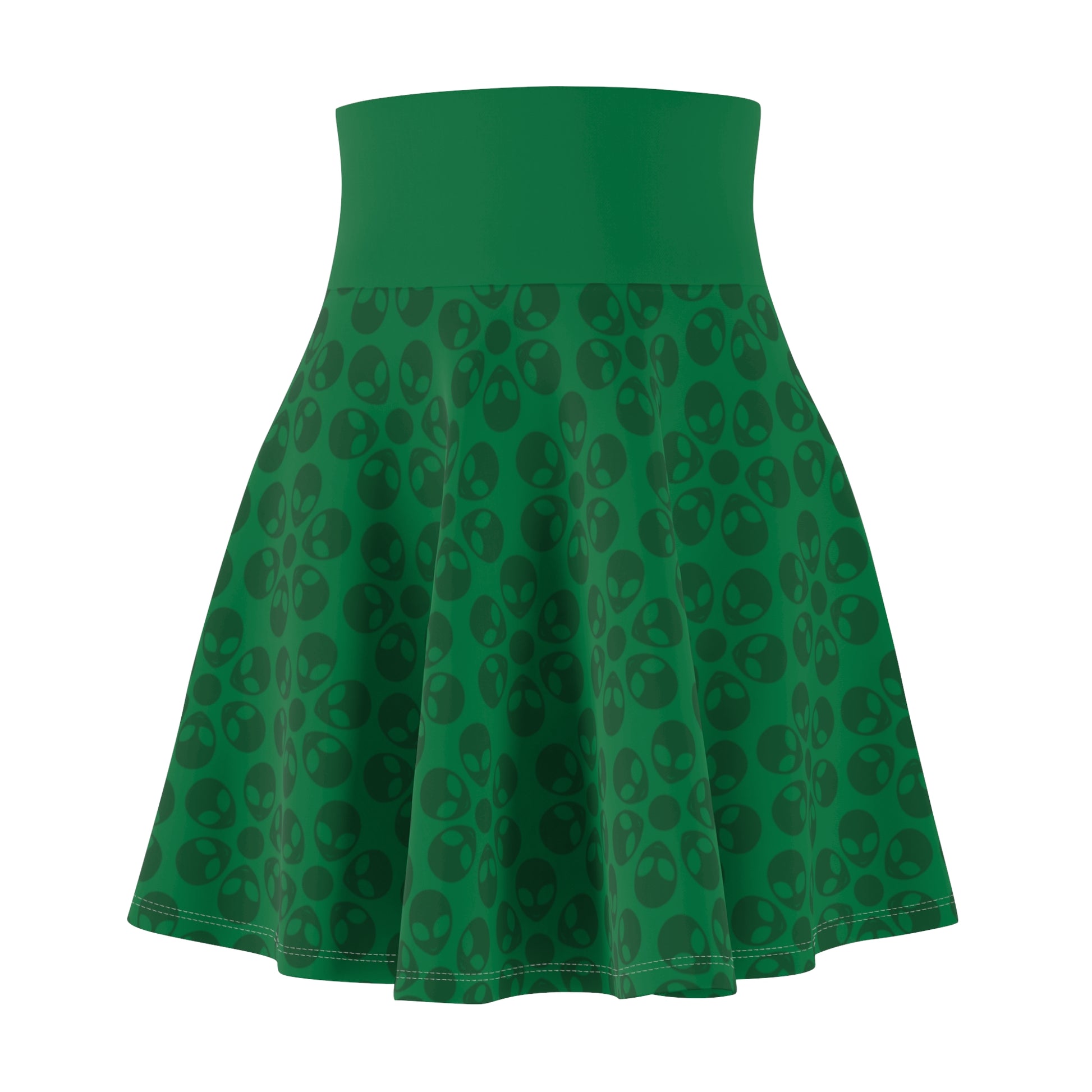 Skull Pattern Womens Skater Skirt Cute AOP Skirt Gothic Summer Wear Festival Outfit Alternative Fashion Alien Flowers Dark Green