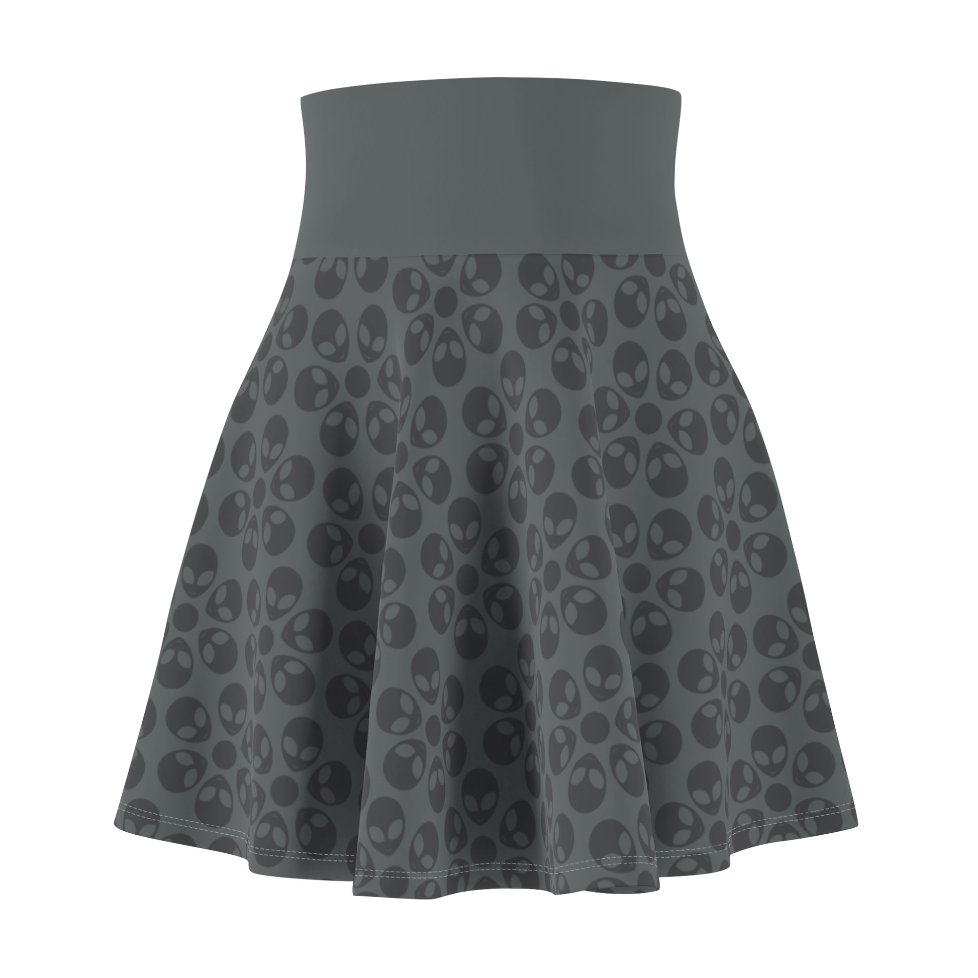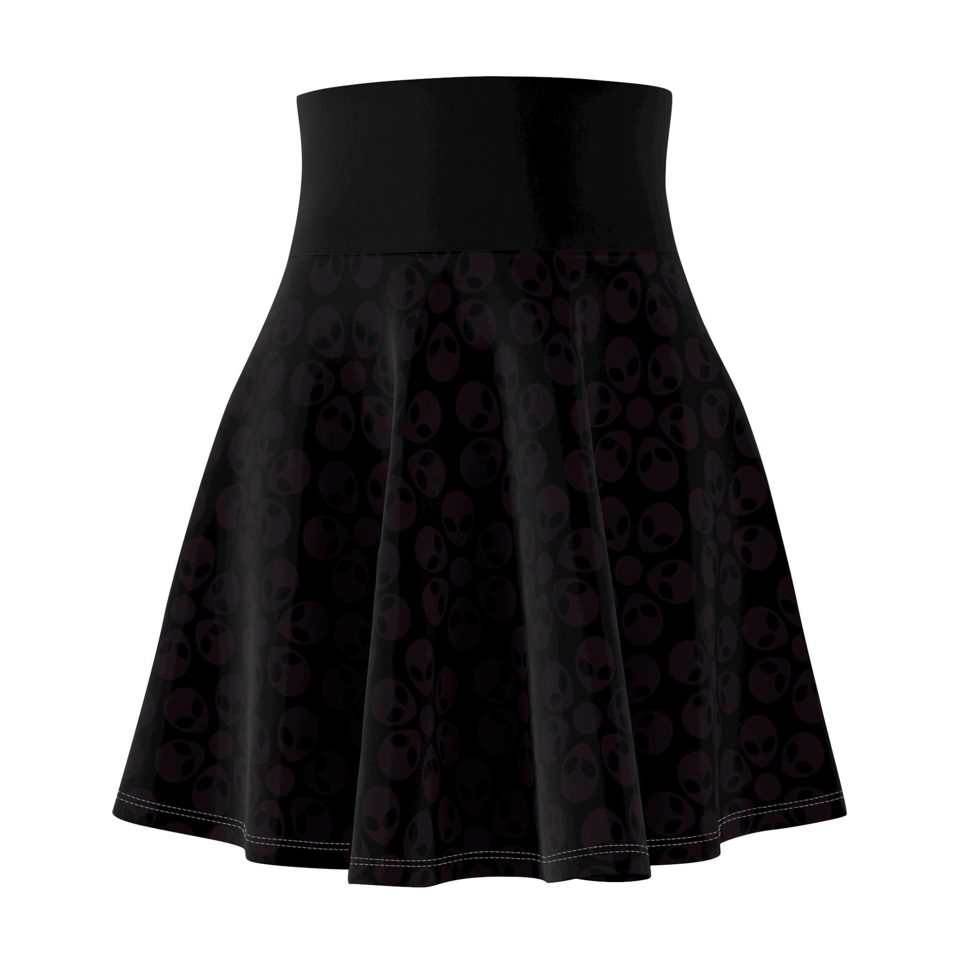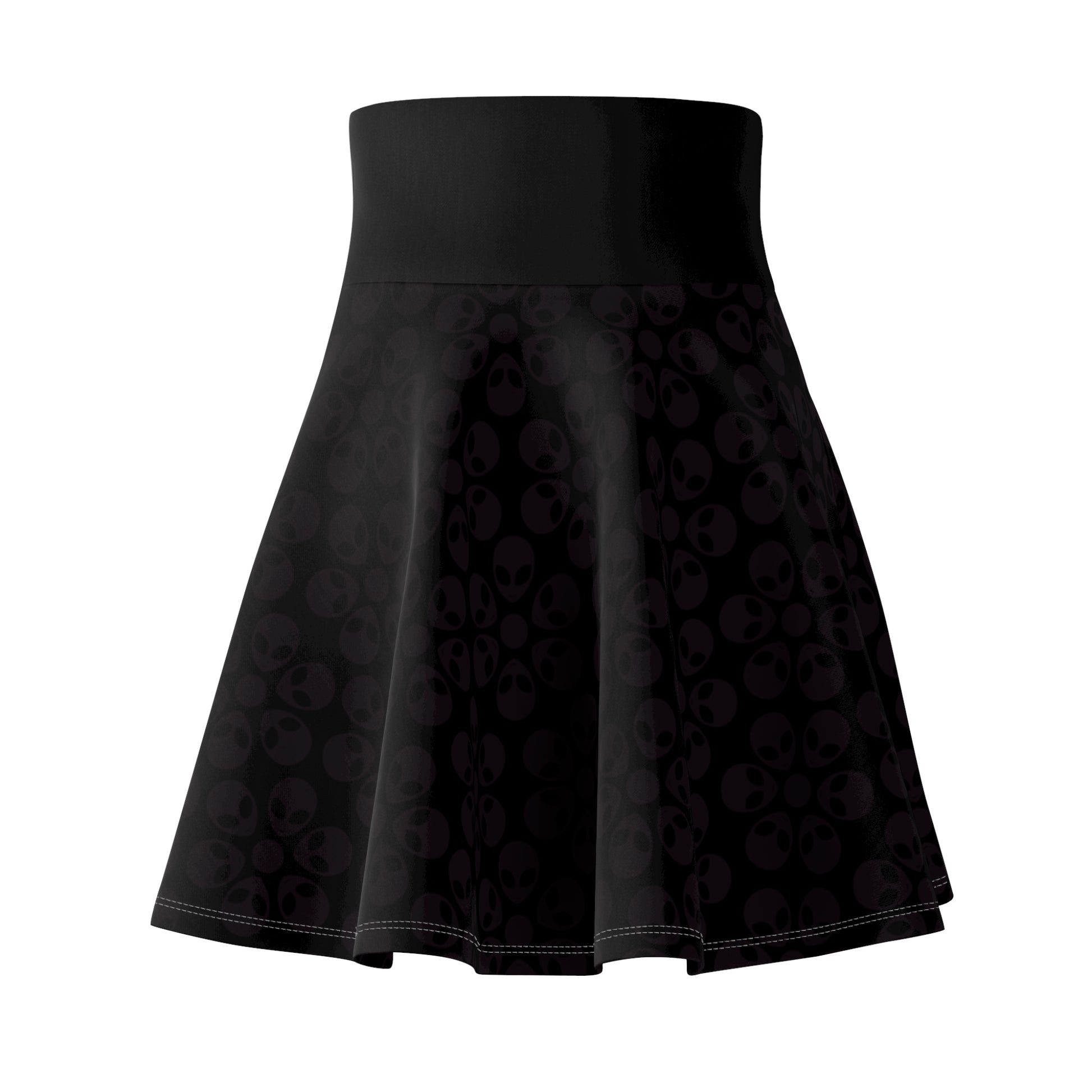Skull Pattern Womens Skater Skirt Cute AOP Skirt Gothic Summer Wear Festival Outfit Alternative Fashion Alien Flowers Dark Grey