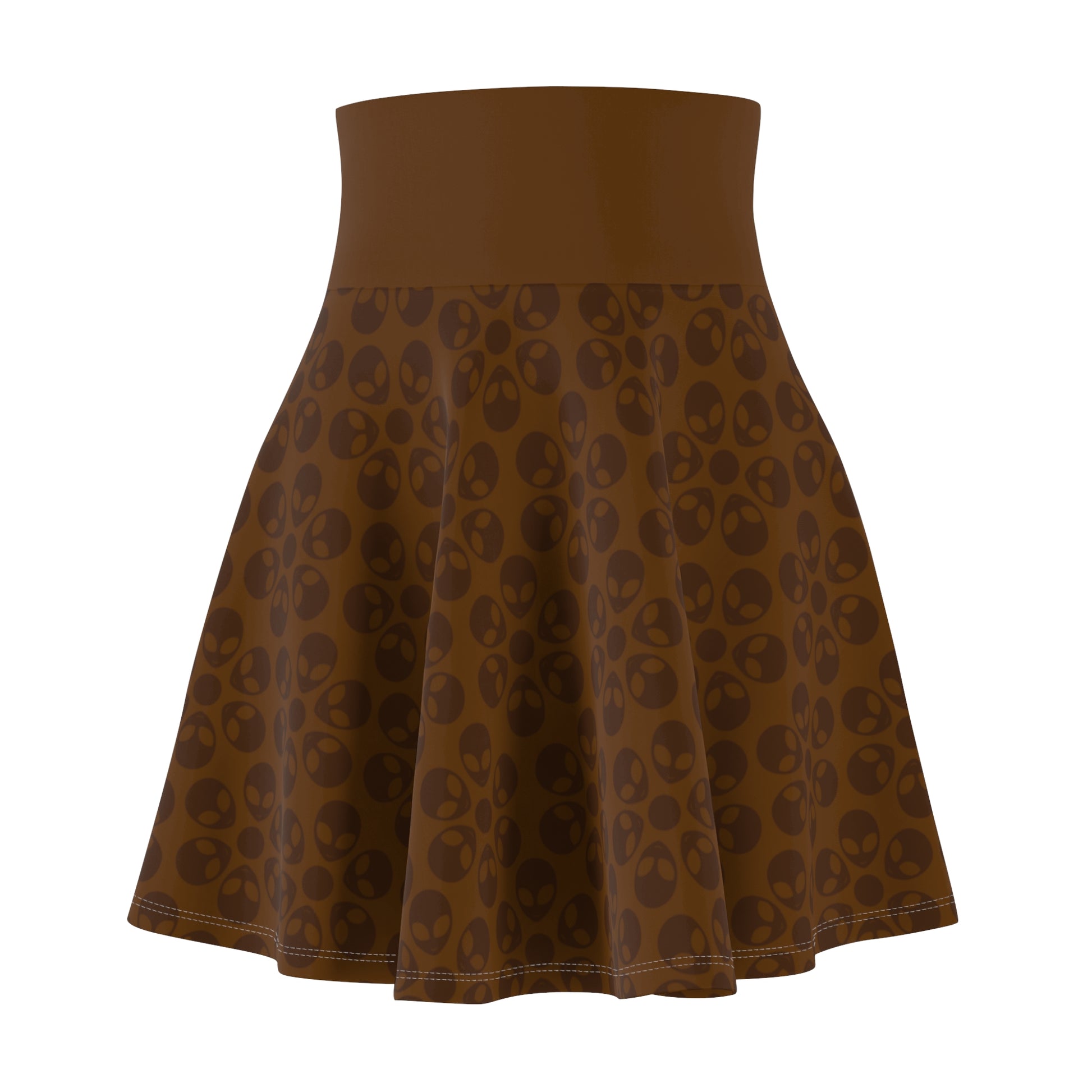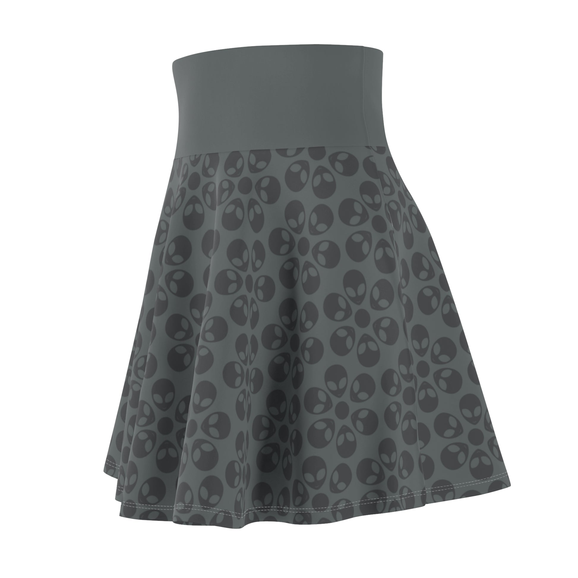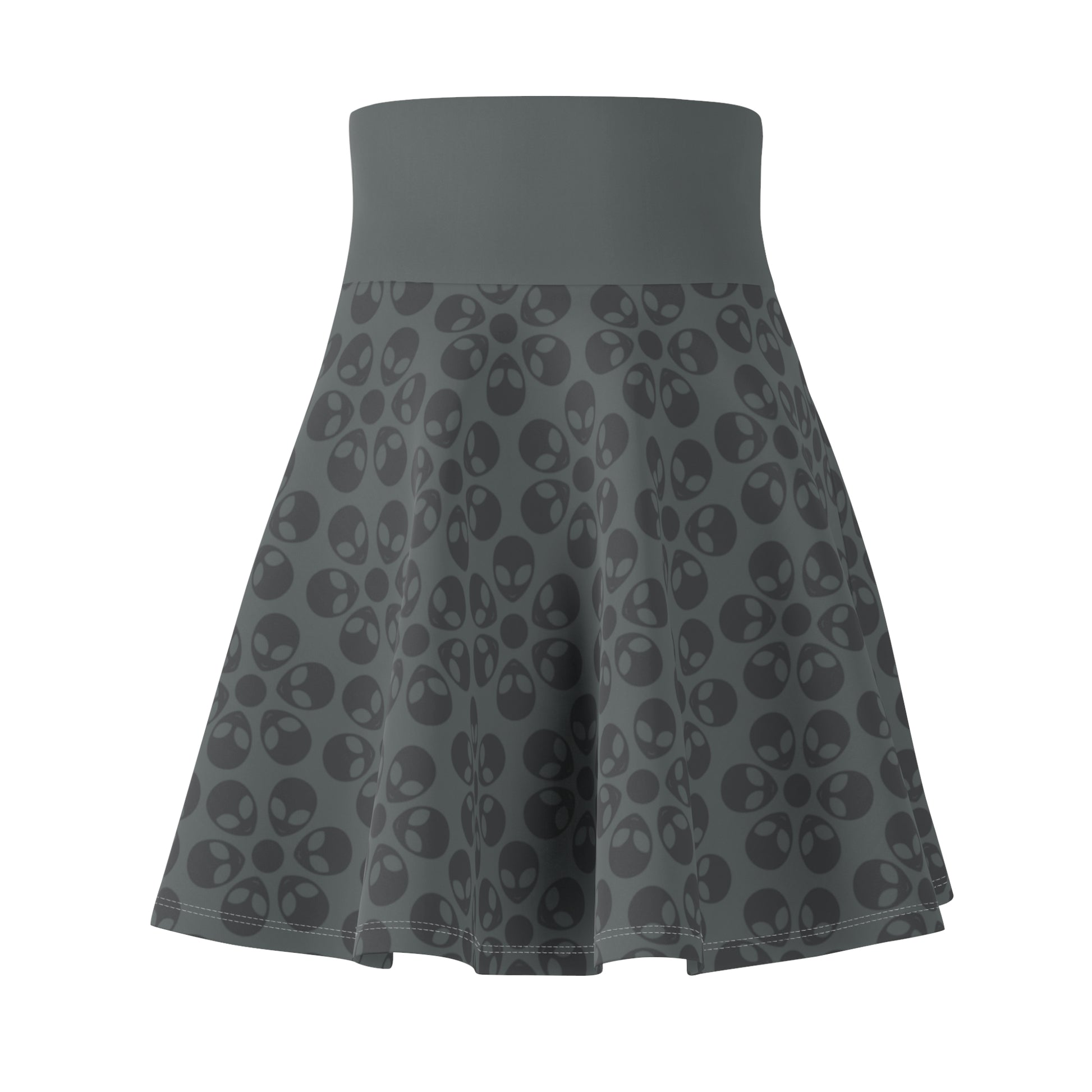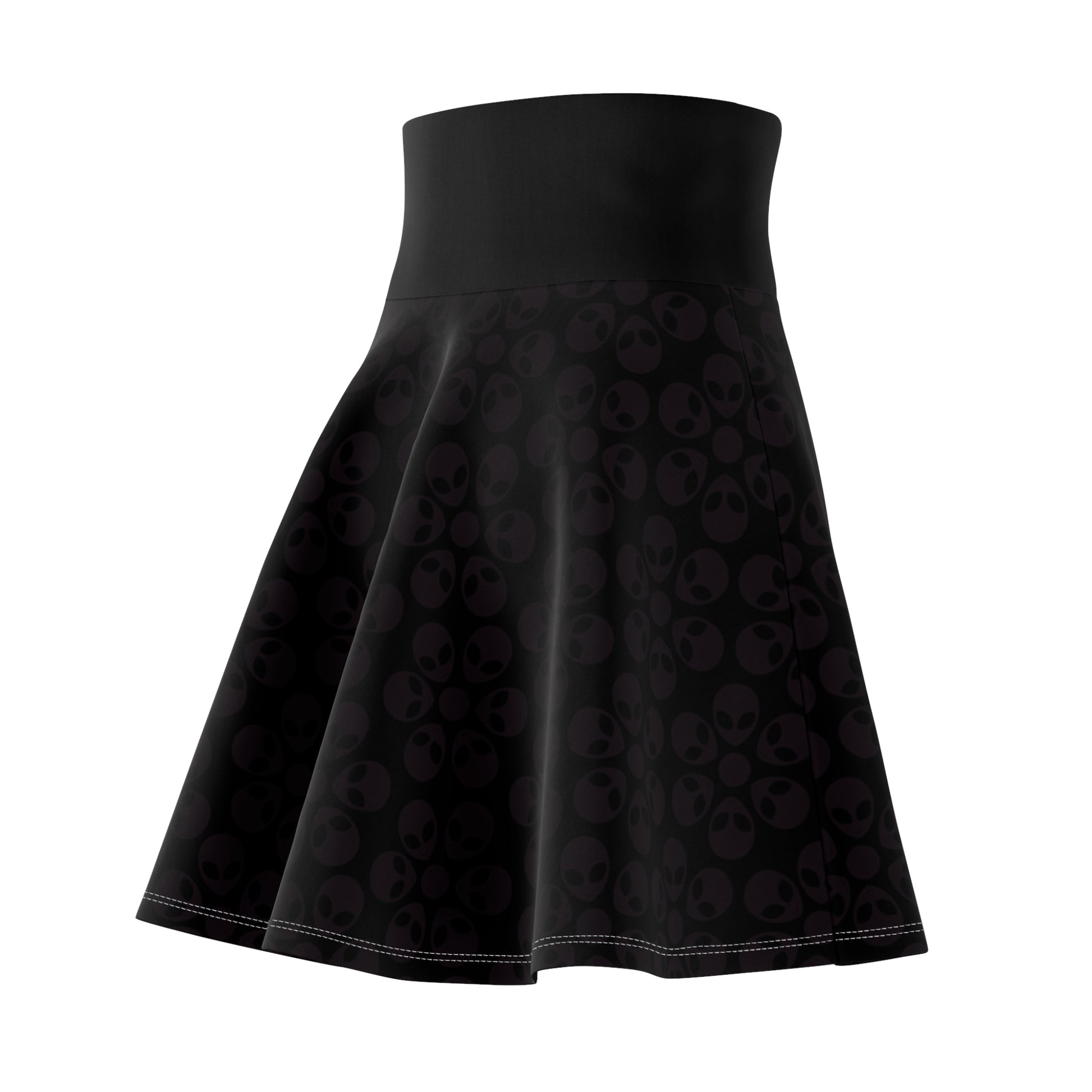 Skull Pattern Womens Skater Skirt Cute AOP Skirt Gothic Summer Wear Festival Outfit Alternative Fashion Alien Flowers Dark Grey