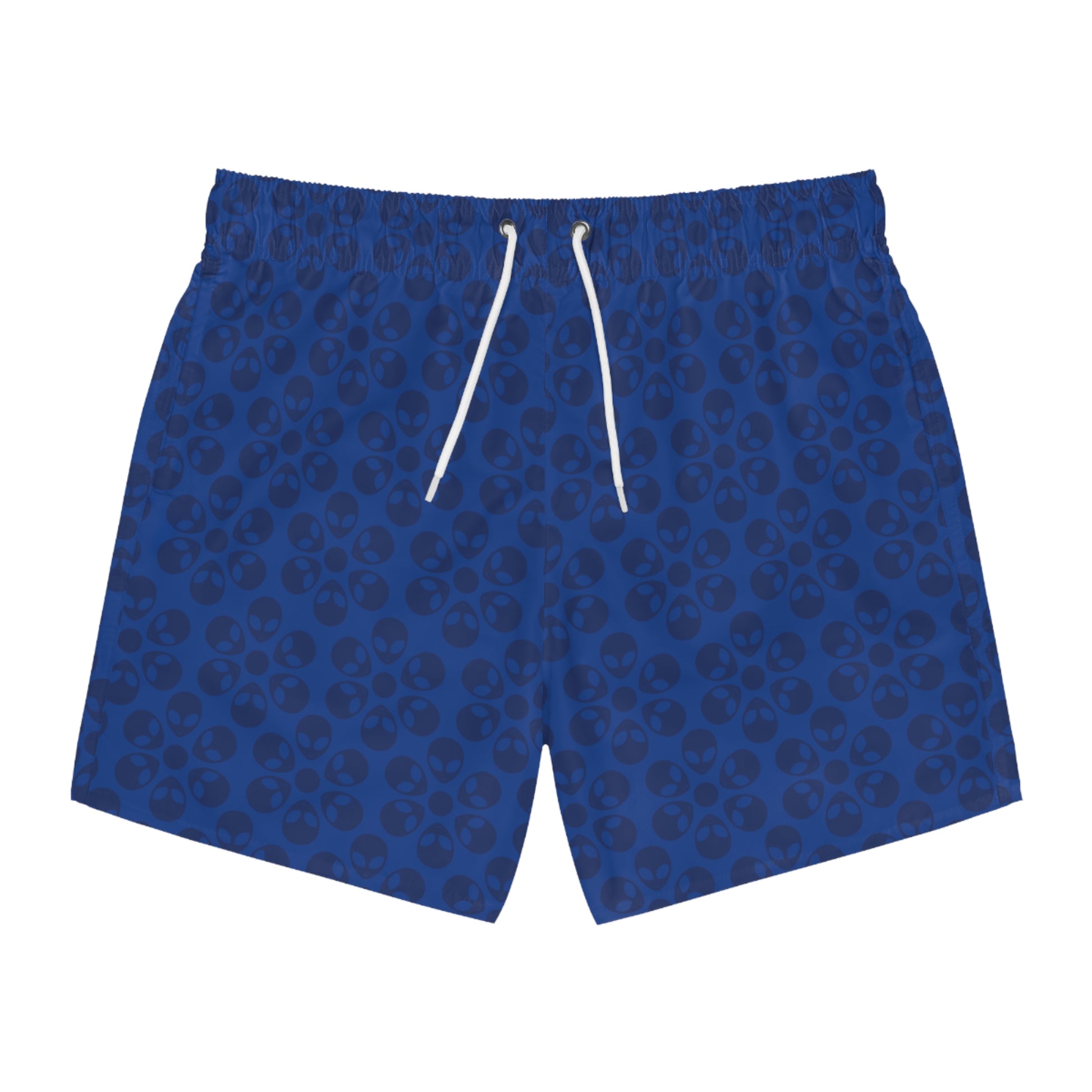 Stylish AOP Swim Trunks for Beach Days Summer Fun Pool Parties Vacation Wear Gift for Him Alien Flowers Dark Blue