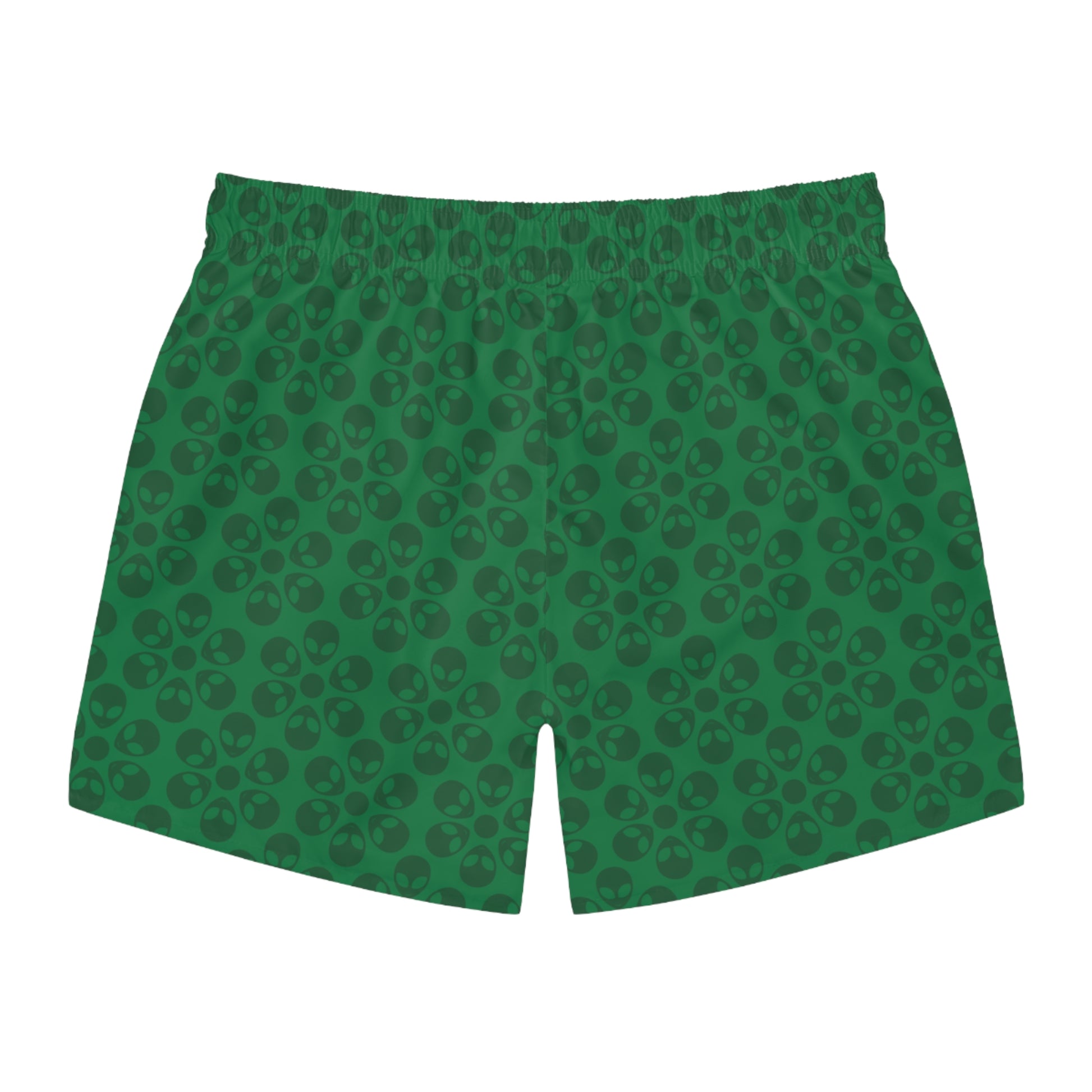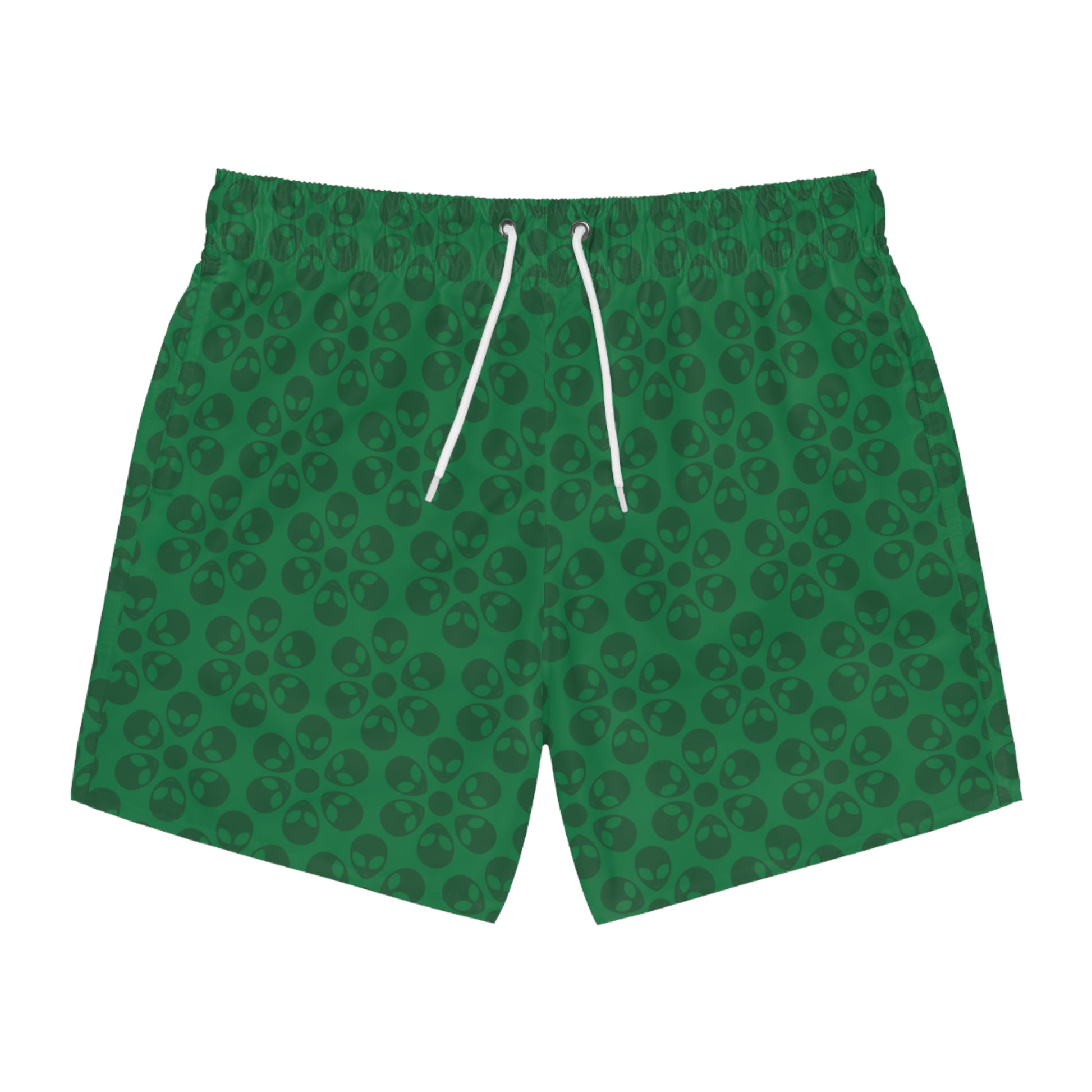 Stylish AOP Swim Trunks for Beach Days Summer Fun Pool Parties Vacation Wear Gift for Him Alien Flowers Dark Green