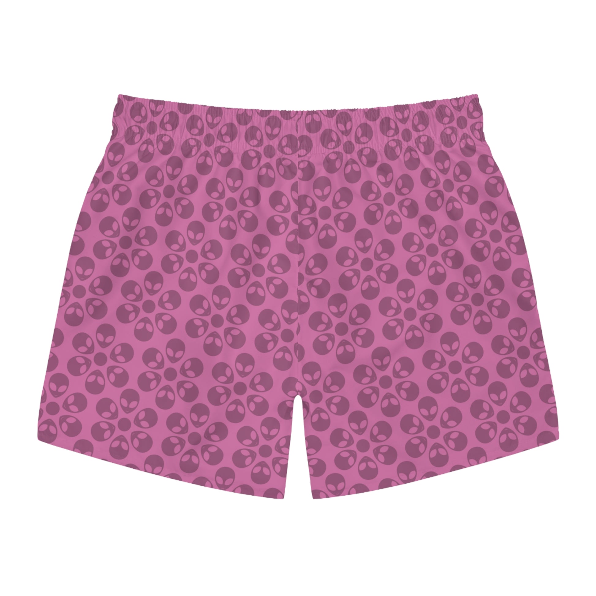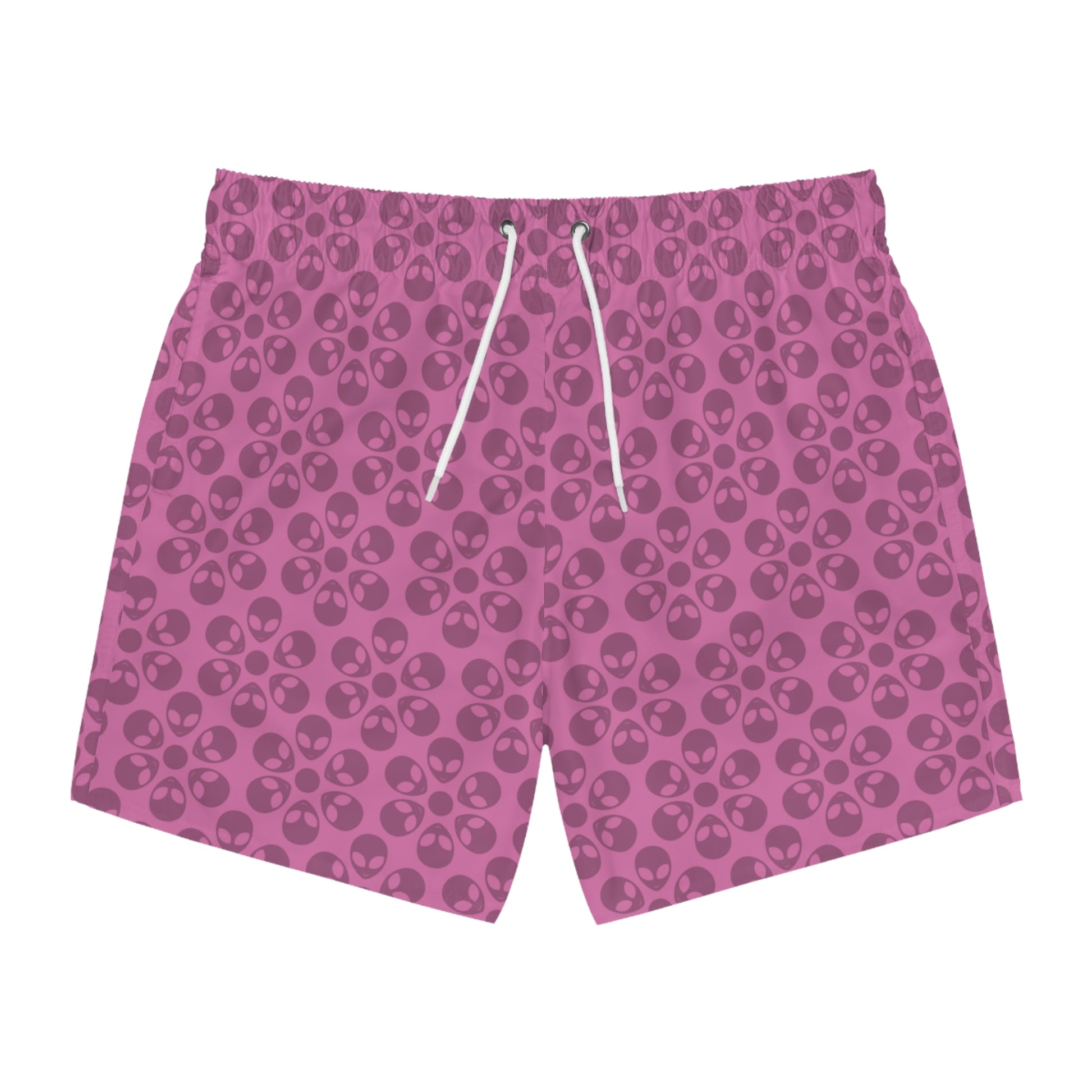 Stylish AOP Swim Trunks for Beach Days Summer Fun Pool Parties Vacation Wear Gift for Him Alien Flowers Light Pink