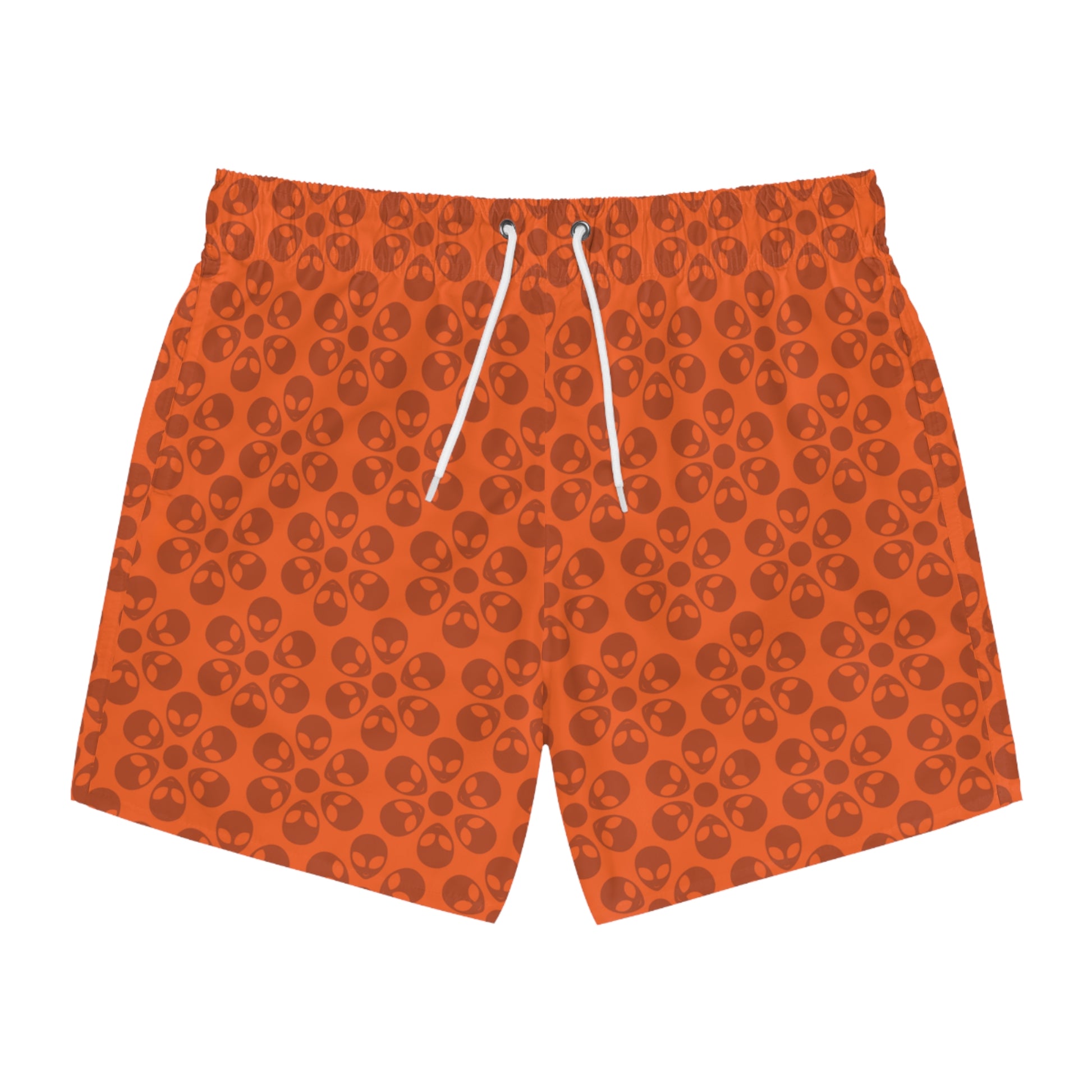 Stylish AOP Swim Trunks for Beach Days Summer Fun Pool Parties Vacation Wear Gift for Him Alien Flowers Orange