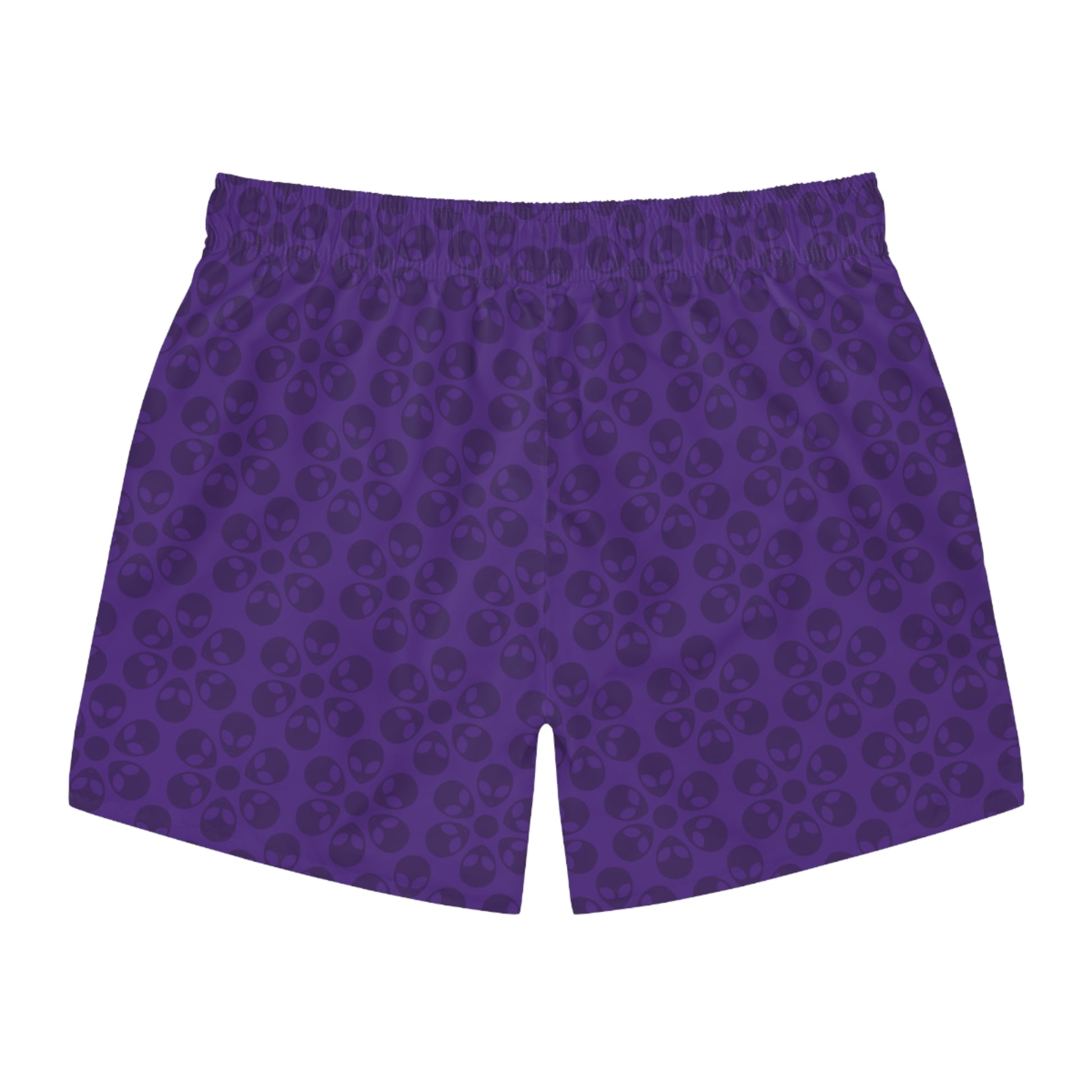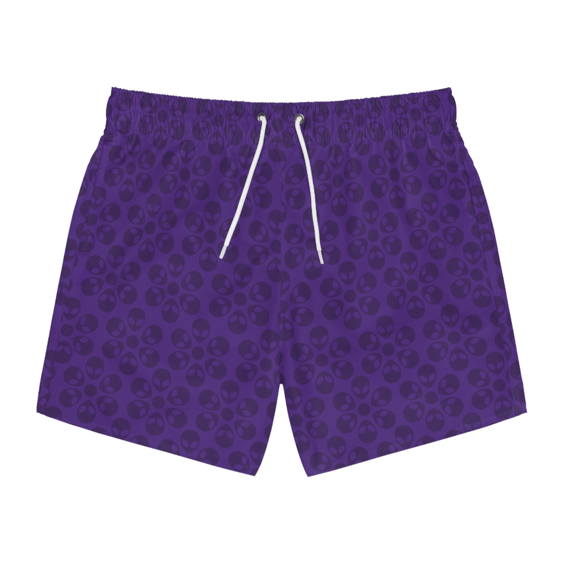 Stylish AOP Swim Trunks for Beach Days Summer Fun Pool Parties Vacation Wear Gift for Him Alien Flowers Purple